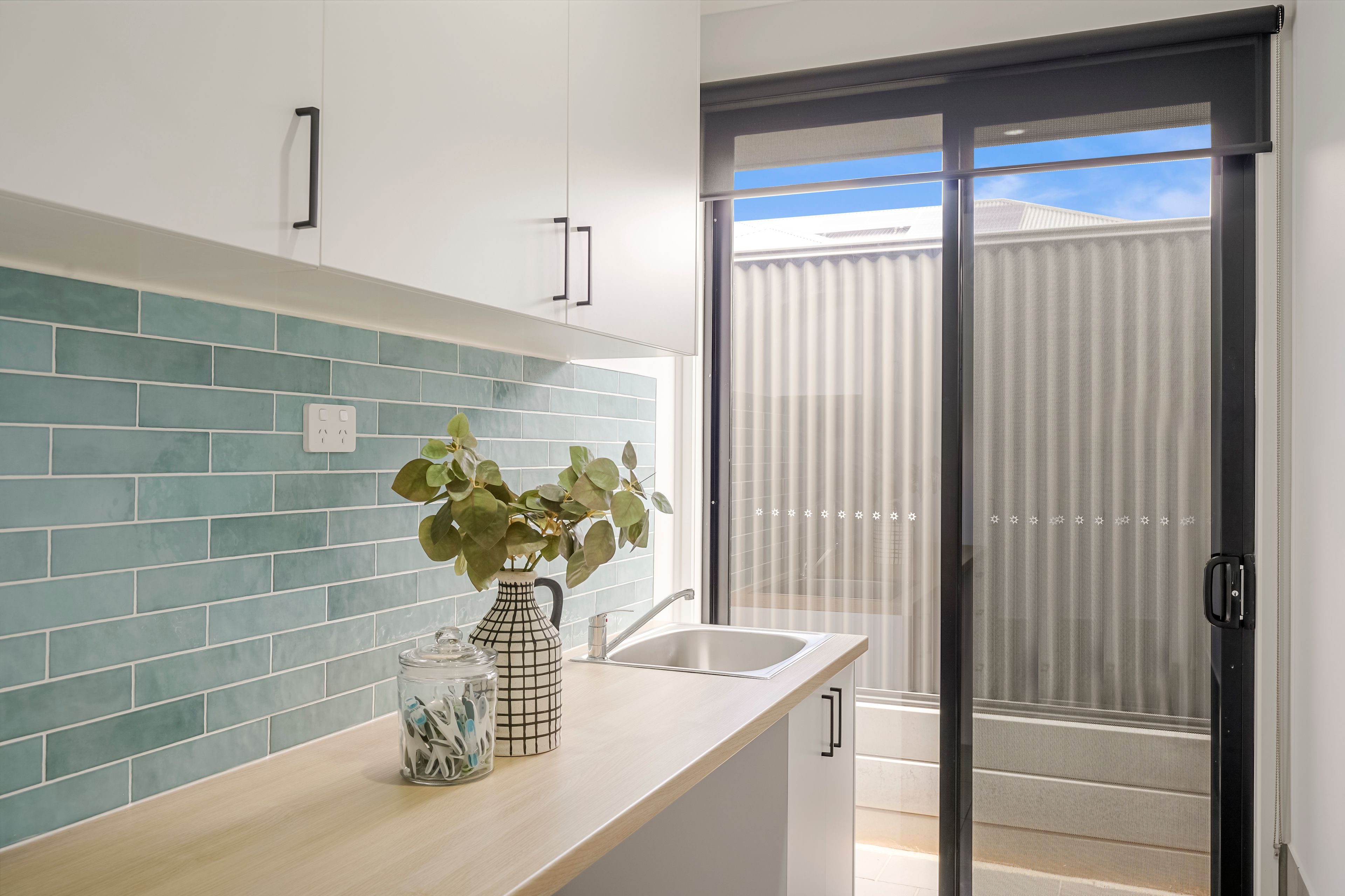 The laundry is equipped with built-in cabinetry, adding to the home's thoughtful design. Outside, the undercover entertaining area is fully paved, providing the perfect space for hosting gatherings or relaxing in the fresh air. The backyard is low-maintenance, with irrigated lawn at the rear, ensuring easy upkeep.