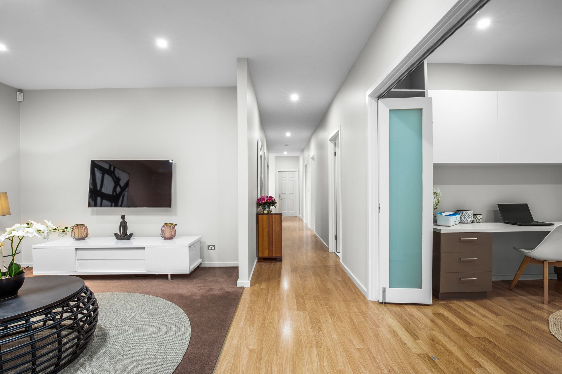 The layout is flexible, perfect for the modern family, with one bedroom ready for use as an office. The main bedroom enjoys a walk-in robe and ensuite while a central bathroom features a bath and twin sinks. When it's time to relax, you can gather with friends on the covered alfresco, enjoy family time in the living room or retreat to the lounge for quiet escape.
