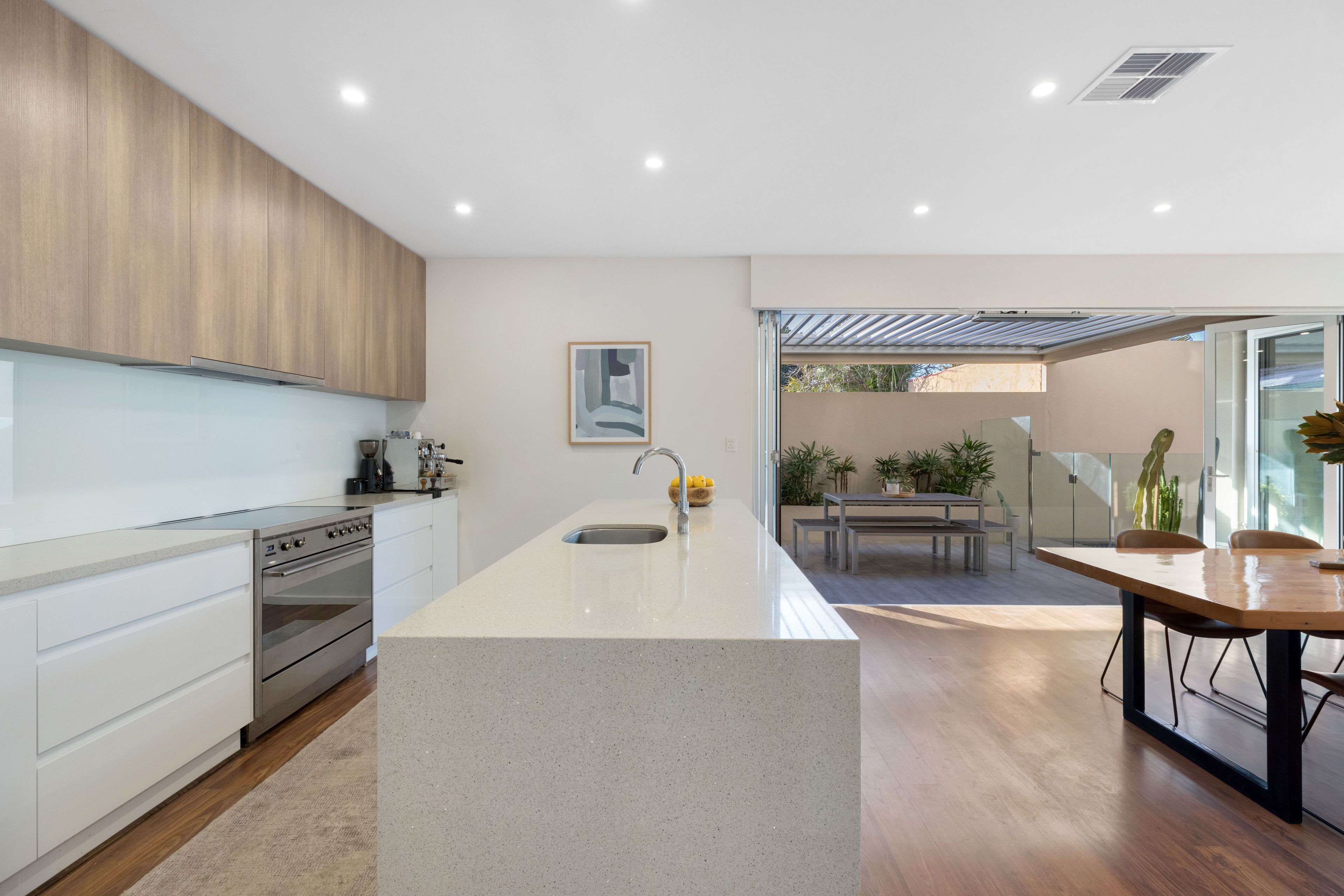 Upon entry, you are greeted by a light-filled, formal lounge room that creates the perfect space to entertain family and friends. From here, you can move through to the stunning open-plan living, dining and kitchen area that flows seamlessly out to the covered entertainment vergola with a built-in kitchen for summer BBQs and a sparkling pool. The master chef of the home will enjoy the stylish kitchen with quality stainless steel appliances, a walk-in pantry and a breakfast bar for casual meals.