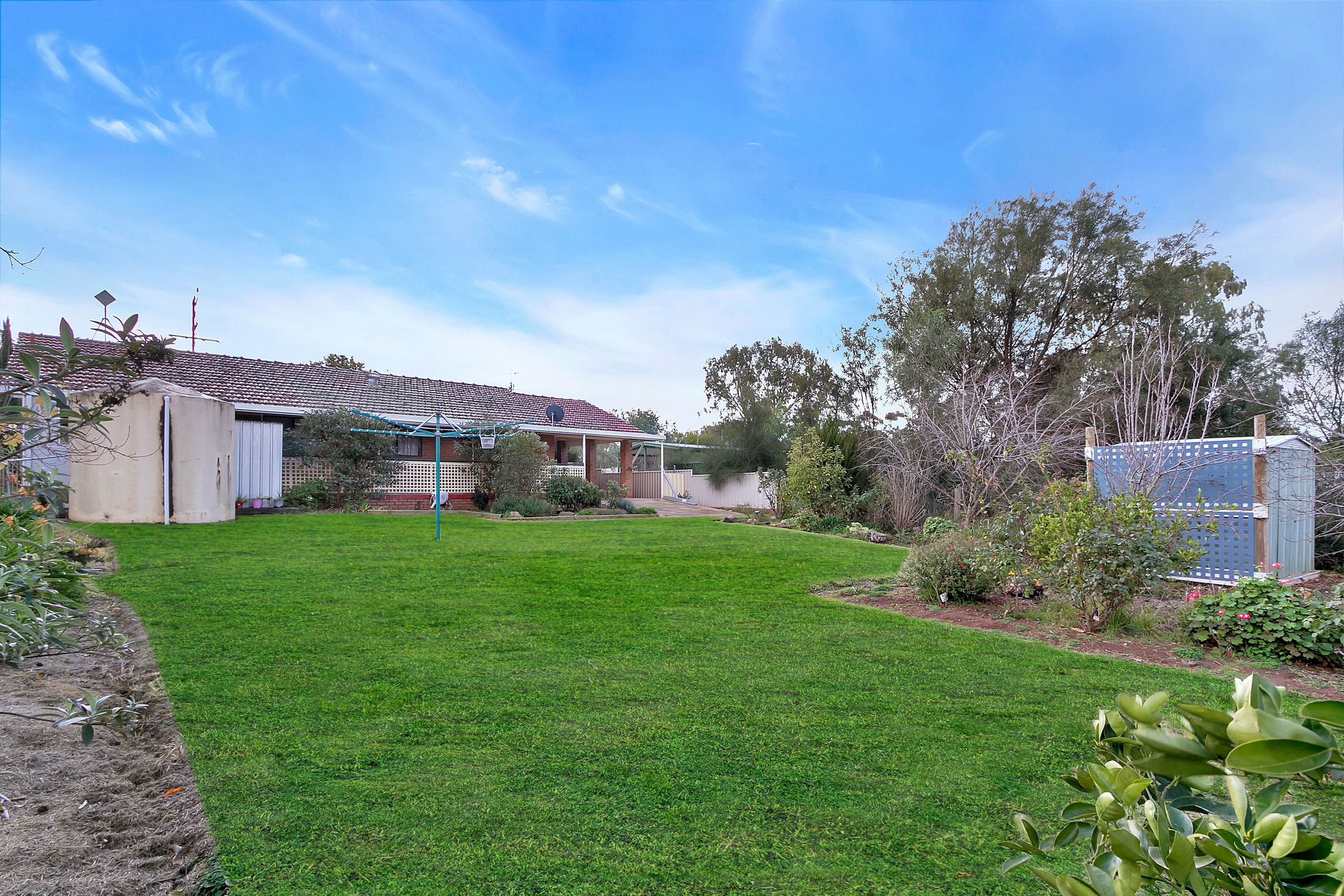 Features: - Three good sized bedrooms - Bedroom 1 & 2 with built in robes - Spacious front formal living room - Timber kitchen with dining room adjacent - Family Bathroom with sep toilet - Laundry with external access - Split system heating & cooling - Extensive verandah for outdoor entertaining - Carport with drive through access - Large backyard with gardens - 5m x 2.7m shed with lean to - Garden shed - Rainwater tank - 897 sqm allotment