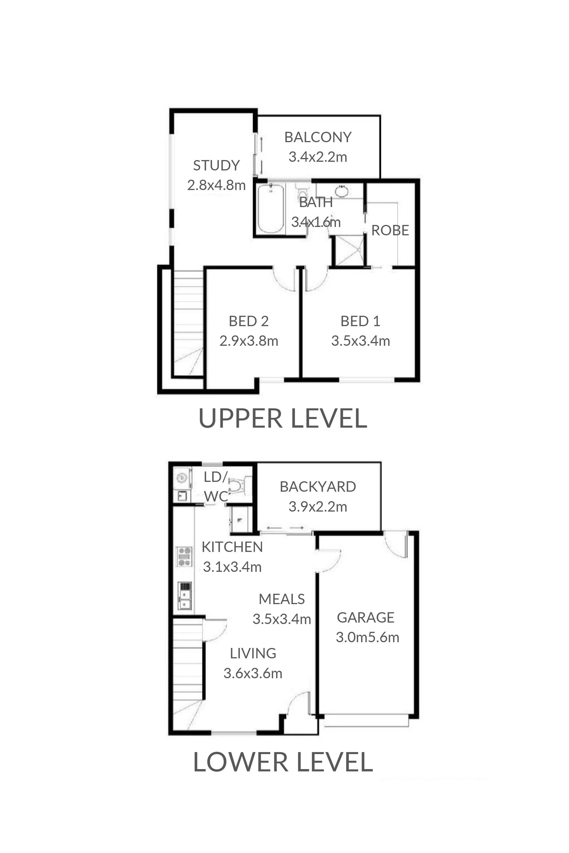 Key features: • Expansive open-plan kitchen/meals/living area with elegant white cabinetry, ample bench space, and a chic tiled backsplash • Separate upstairs study/home office for added versatility • Two spacious bedrooms with carpets and large windows, master with walk in robe • Full bath upstairs with a relaxing bathtub • Laundry room and additional toilet on the main level