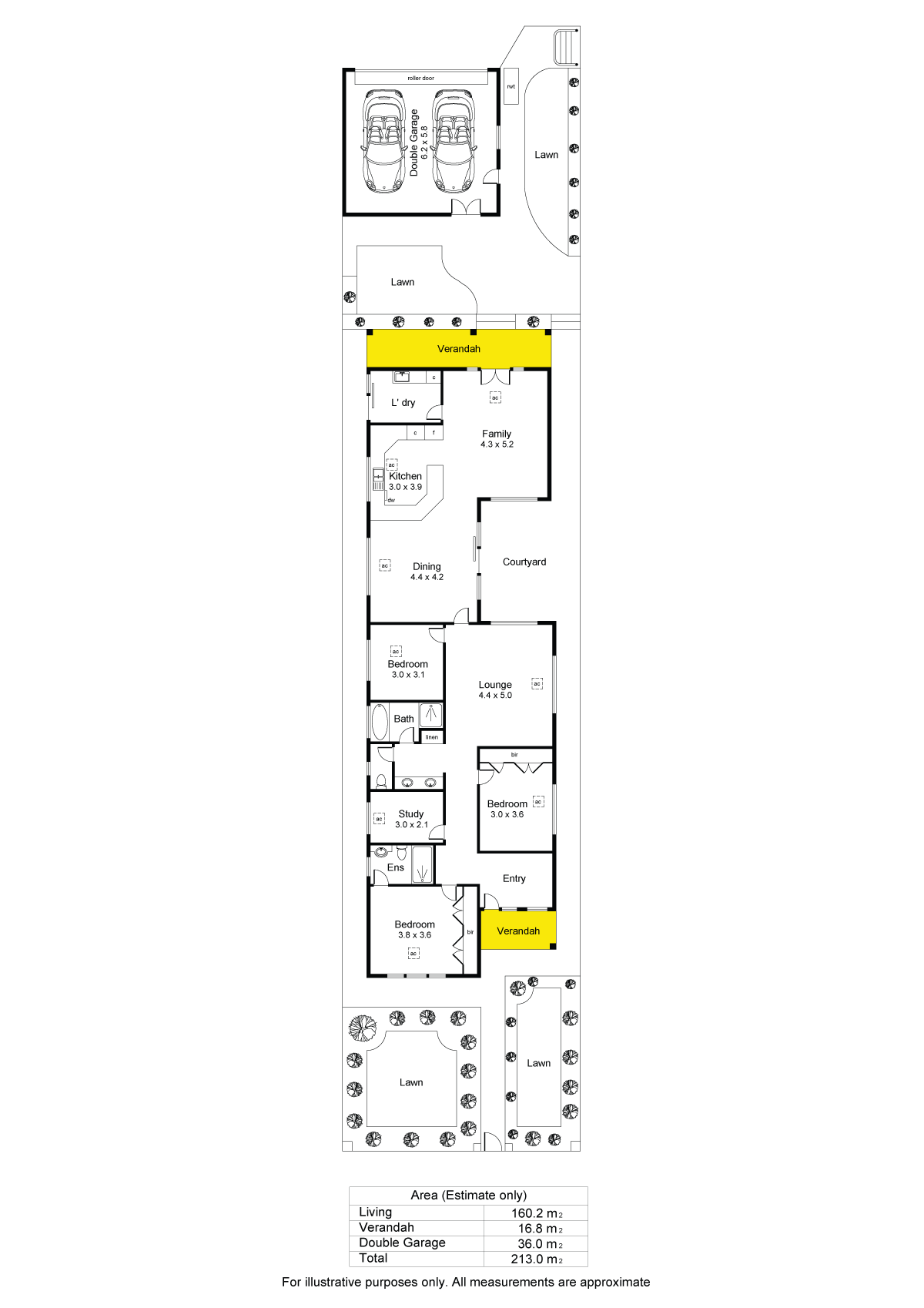 Built in 2003 this exceptionally well constructed modern day version of the old styled Villa offers 3 good sized bedrooms plus a study, an ensuite with built in wardrobes for bedrooms 1 and 2. It also offers a practical formal lounge and an enormous open plan kitchen/ dining/ living area with plantation shutters to the French doors opening out to an al-fresco courtyard/ pergola area.