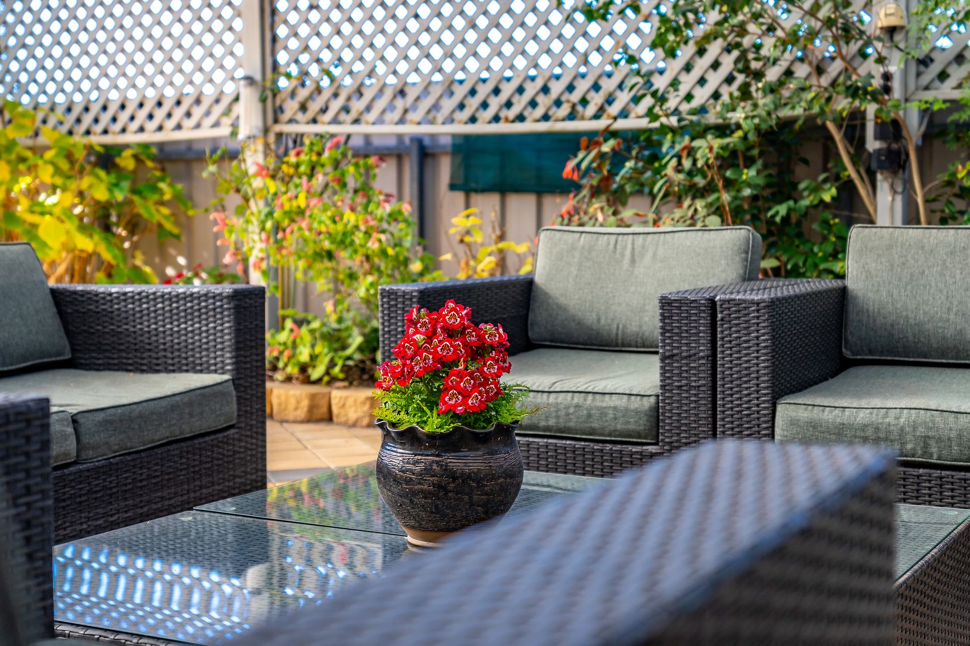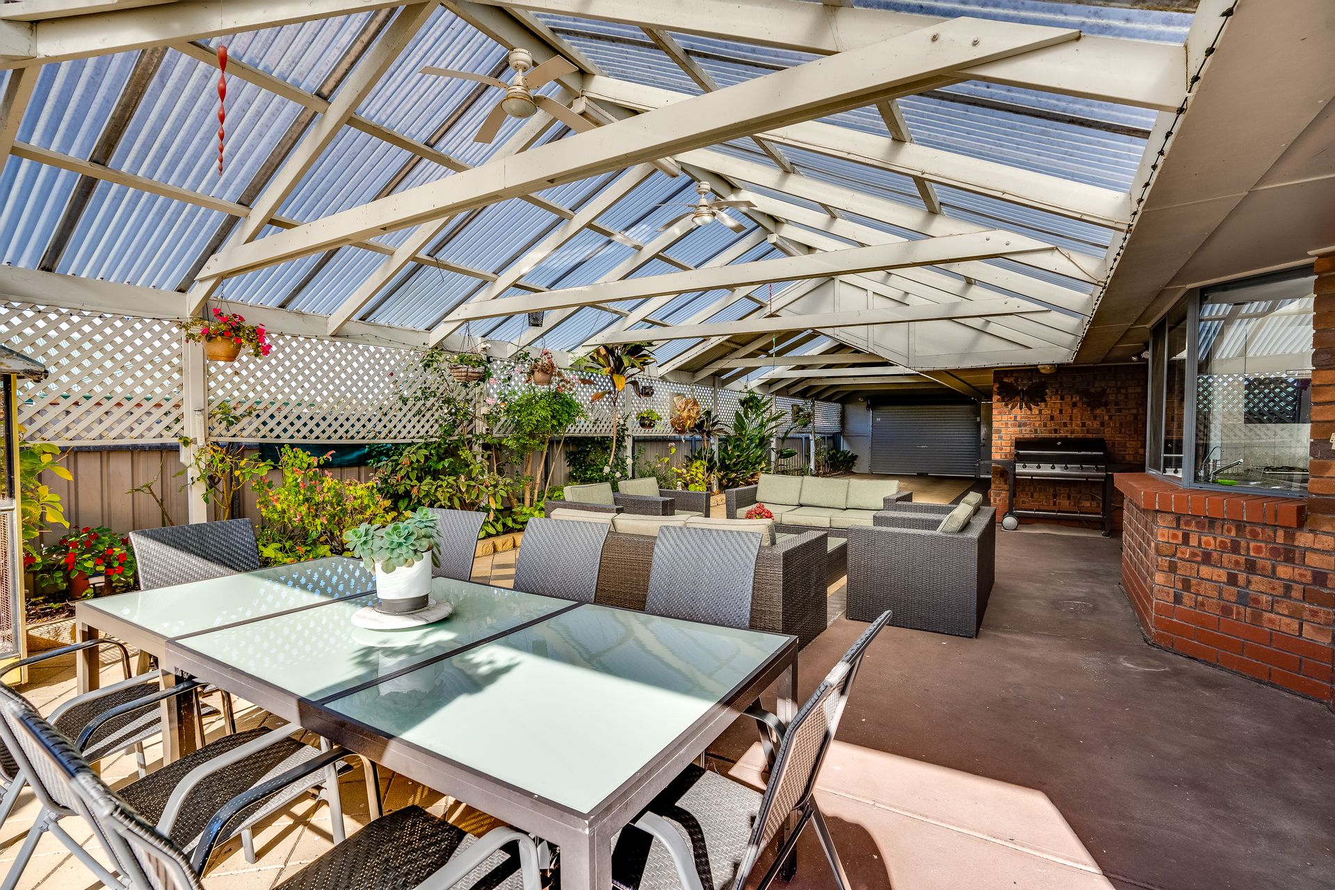 Gorgeous rear yard, private, secure and filled with lovely gardens and just enough lawn to enjoy + a Rain Water Tank to cater to the gardens.