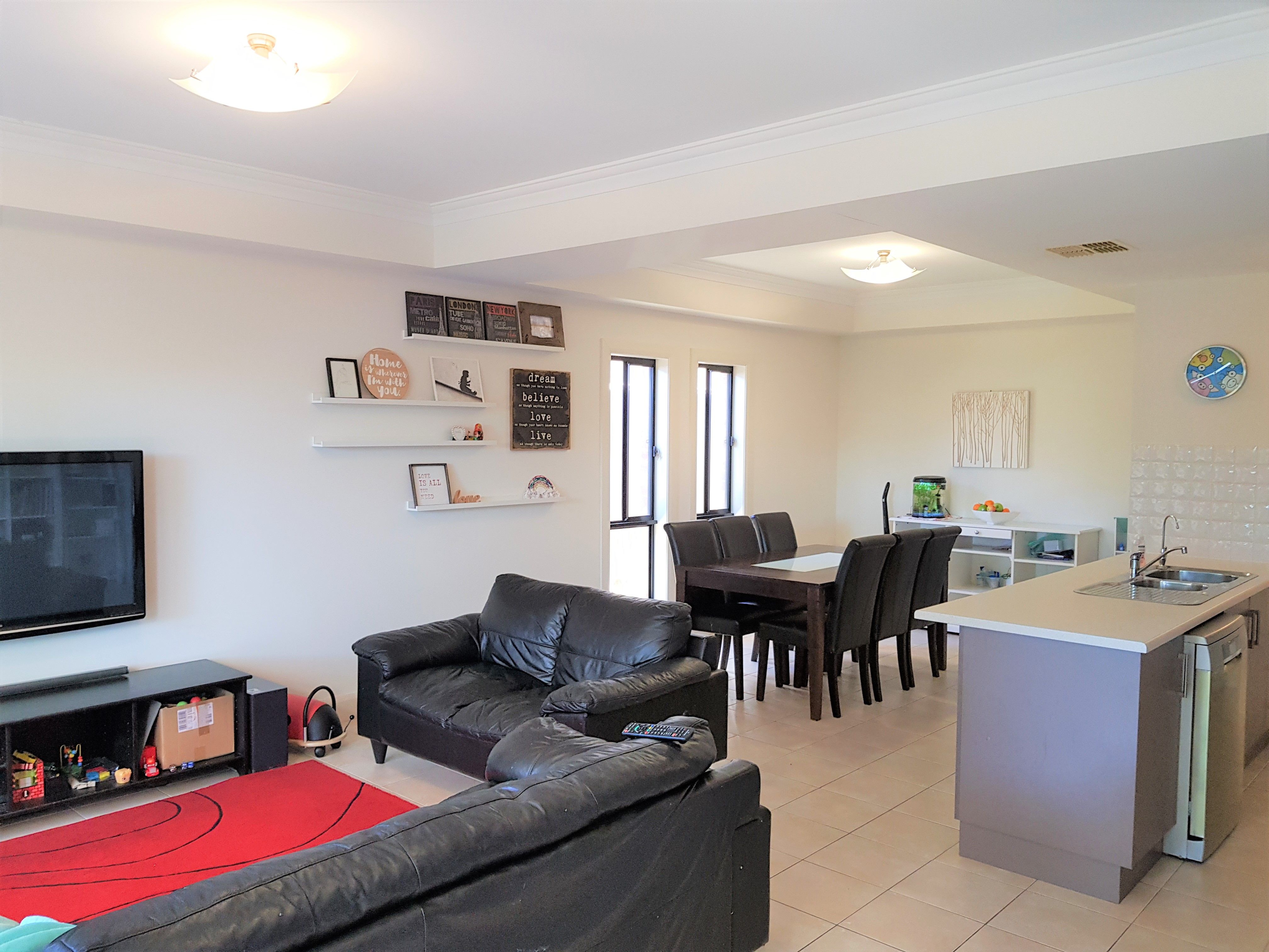 This family home features a free flowing open plan layout which incorporates the spacious living and dining area as well as a fabulous kitchen. Fitted with plenty of cupboards and overheads the kitchen is well equipped with ample bench space, breakfast bar, double sink and dishwasher. Stylish stainless steel appliances include a gas cooktop with rangehood & oven.