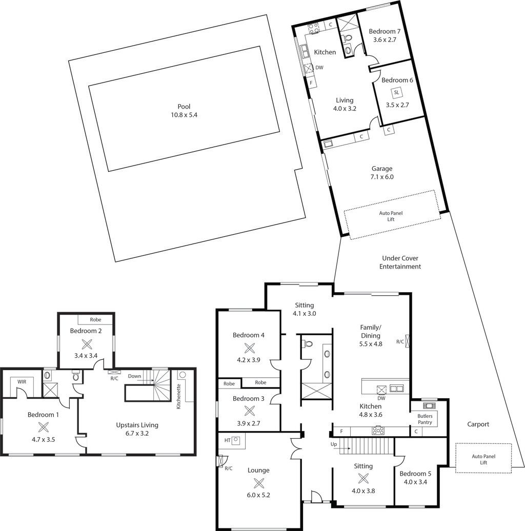 Main Residence •5 double sized bedrooms (1 with walk in robe, 3 with built in robes). •Elegant formal lounge which is conveniently positioned near the front entrance. •Impressive and sizeable kitchen which all the aspiring Chef's in the family would be delighted with. Boasting thick Essastone benches, Miele' 900mm stainless steel oven, dishwasher and induction cooktop, plenty of cupboard storage and bench space, marble imitation splashback and Butler's kitchen. •Integrating with the kitchen is the open plan casual meals / family living area. •Lavishly appointed main bathroom which is equipped with floor to ceiling tiles. •The 2nd bathroom is positioned upstairs central to the bedrooms. •Teenagers retreat (upstairs). •Upstairs kitchenette. •Secure lockup carporting for up to 4 cars. •Undercover entertaining area. •Sparkling In ground concrete pool with glass pool fence. The pool has provisions for gas heating. Tiled and pool lights. •Aggregate concrete footpaths, pool surrounds and driveway under the carport.