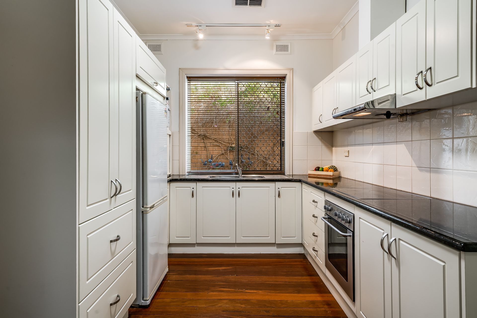 Meanwhile, the updated kitchen is an absolute joy to cook in whether making nightly meals for the family or hosting friends for vino-inspired dinners, featuring lots of bench top space, elegant cabinetry and cupboards, stainless steel oven and sleek electric cook top, and all a comfortable conversation away from the dining brightened with skylights.