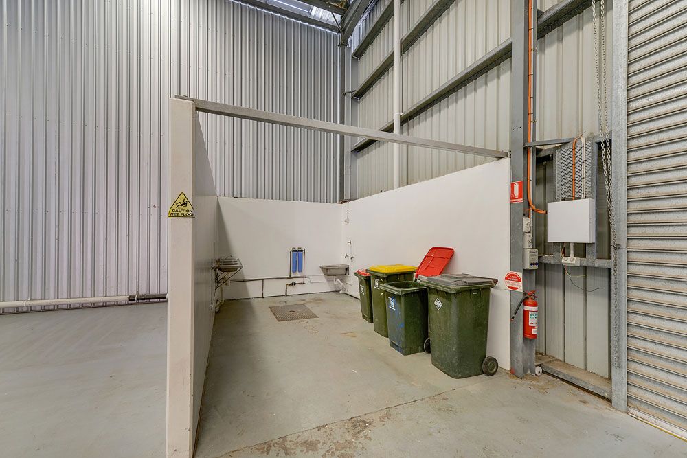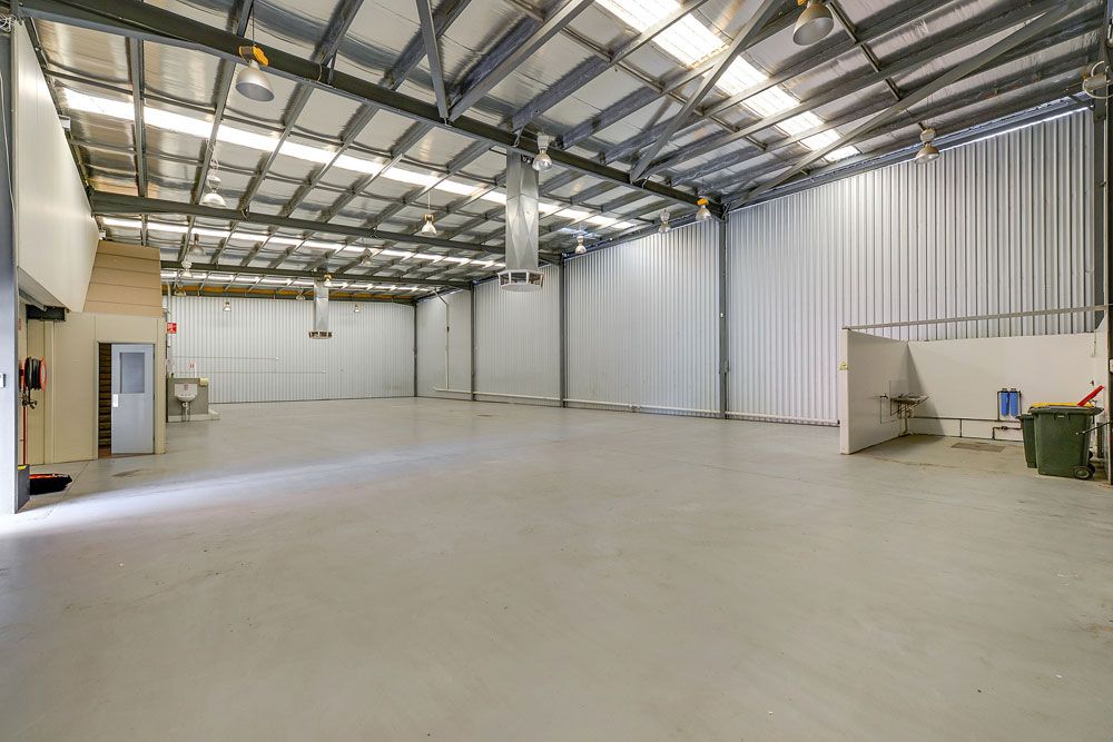 - 698 square metres* - Warehouse area of 578 square metres* - Air-conditioned - Ample on site car parking - Wash bay - Roller door clearance of 5 metres* - Amenities include male & female toilets, showers & Change room - Suitable for a variety of uses such as gym, food production, manufacturing, storage (subject to consent)