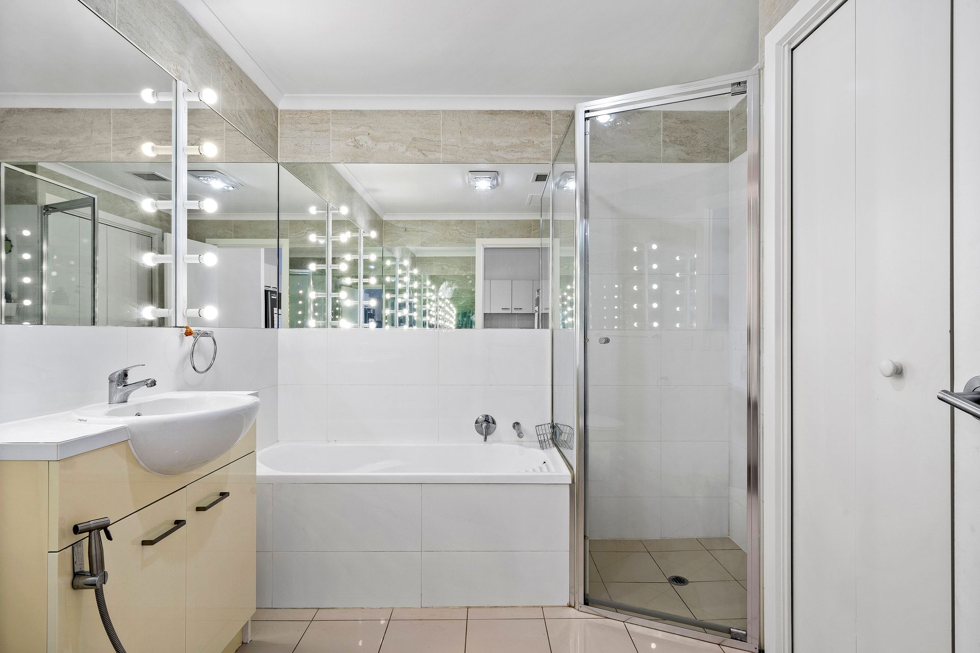 * Bright main bathroom with separate bath and shower
