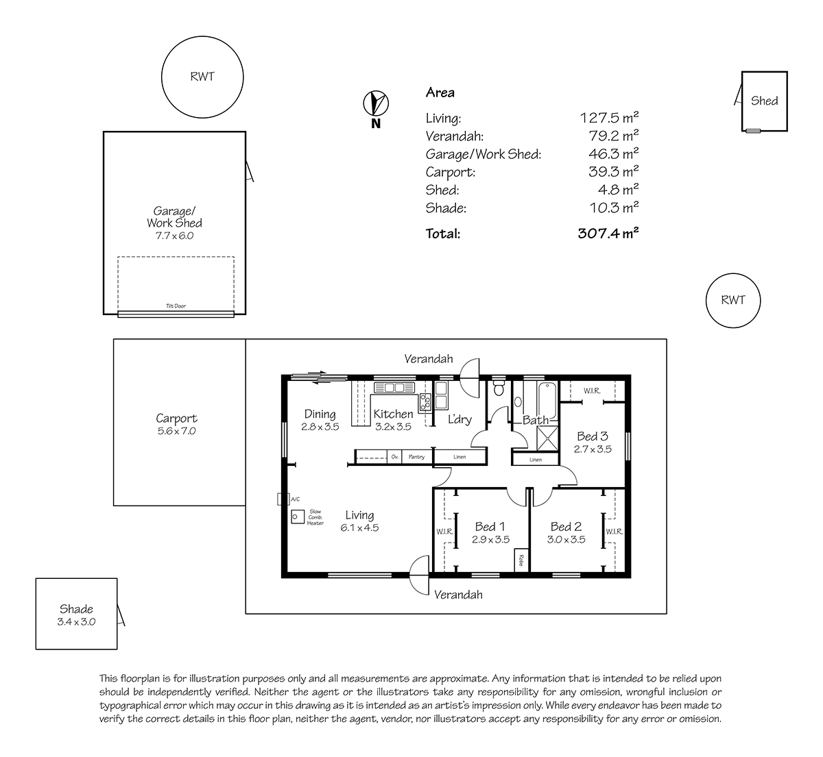What the house offers: * 1978 built home offering 127m2 of living space. * Three good sized bedrooms all accompanied with walk-in robes. * Large kitchen with ample benchtop space and storage. * Dining/lounge L-shape configuration with slow combustion and a/c unit. * Veranda spanning around the entire house. * 1.5Kw solar system. * Double carport leading to 6m x 7.7m shed.