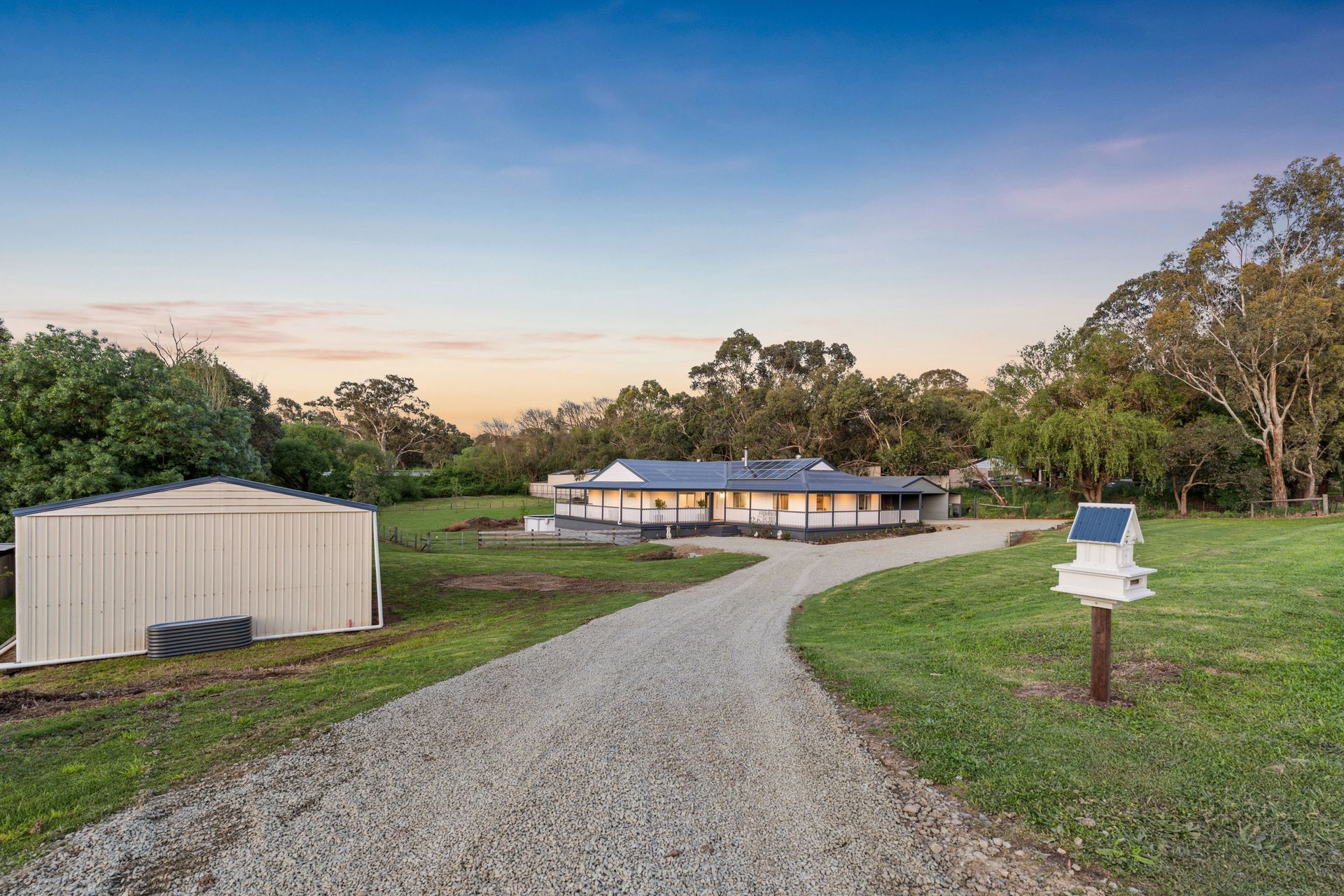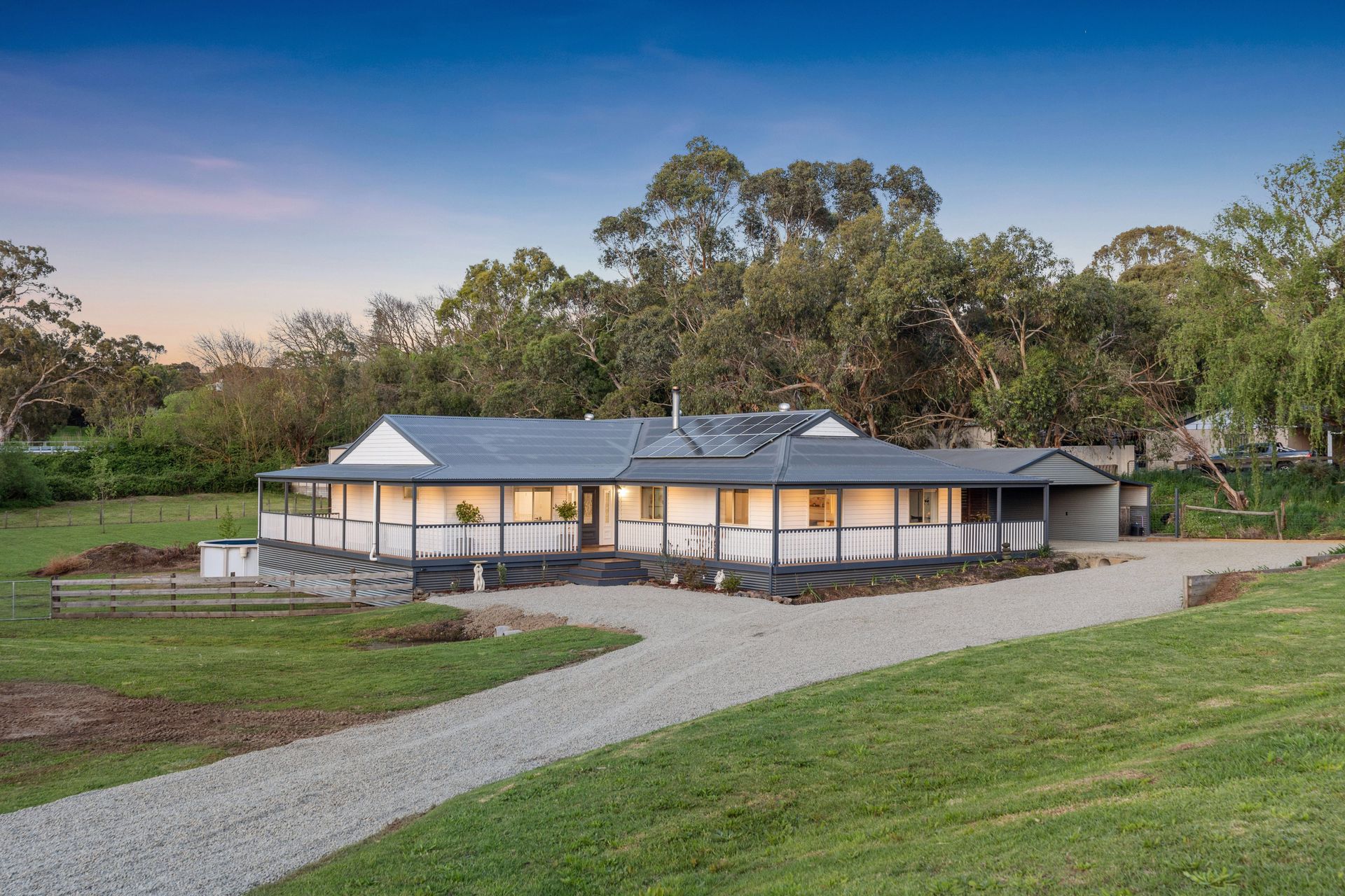 Features You'll Love: • Four bedrooms plus study/fifth bedroom • Large master suite with two Velux skylights • Modern ensuite with floor-to-ceiling tiles and rainfall showerhead • Extra large walk-in robe • Tray ceiling entry • Downlights throughout • Entertainer's kitchen with 900mm oven and dishwasher • Built-in robes & ceiling fans in bedrooms 2/3/4 • 2m deck wrapping the entire house • Salt water chlorinated pool • Powered shed • 3 Phase power • Impressive 13 kW solar system • 135,000L rainwater storage