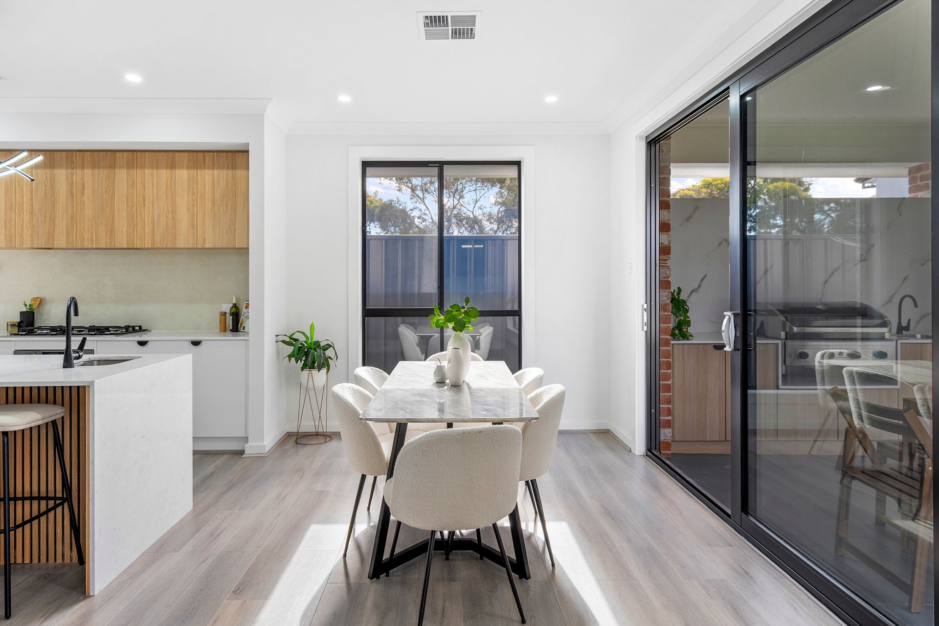 • Excellent street presence and curb appeal. • Immediate livability upon entry thanks to the warm floating flooring, downlights and zone controlled ducted reverse cycle air conditioning throughout. • Formal living room located at the front of the home upon entry and could be used as a study/home office if desired. • An executive master bedroom suite complete with a sizeable walk through robe and luxurious ensuite complete with large shower with alcove, vanity with stone benchtop and floor to ceiling tiles. Toilet included. • Bedrooms 2, 3 and 4 are all complete with floor to ceiling built in robes. • Main bathroom complete with freestanding egg shaped bathtub, shower with alcove and floor to ceiling tiles. Powder room located outside with stone benchtop and separate toilet located adjacent. • An expansive and light filled open plan living, dining and kitchen space is located at the rear of the home and flows effortlessly to the outdoor entertaining area creating a sense of indoor / outdoor living that can be enjoyed with loved ones all year round. • Meals can be prepared with ease thanks to the convenience of having the spacious chefs kitchen with ample storage and butlers pantry adjacent. The kitchen is complete with gas stove top, oven, tiled splash back making cleaning a breeze and a central stone island with basin and microwave alcove. In the butlers pantry you will find ample storage, dual basins, tiled splash back and dishwasher making it the perfect place to hide the unwanted mess when entertaining your guests at the numerous dinner parties and family events all year round. • Spacious laundry room with stone bench tops, tiled splashback and ample storage options as well as providing external access. • Linen cupboards for added storage. • A fantastic undercover entertaining area awaits outside looking over the lush backyard perfect for children and pets to play and make core childhood memories. The space is complete with a built in barbeque, tiled splash back and vanity for when the weather is too good to be true and dining outside becomes a must! • Secure gated access down the side of the property. • Double garage with automatic door and internal access to the central hallway. • NBN fibre to the premises avialability. • Nearby places of worship include Revival City Church on Milne Road and Gurdwara Sahib on Famechon Crescent, Modbury North.