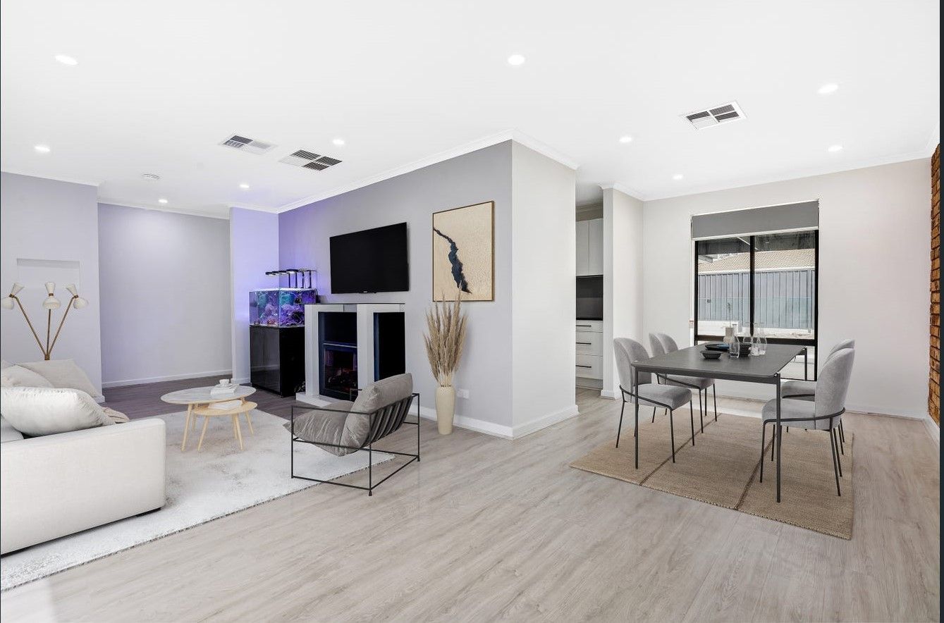 - 3 bedrooms ( 2 with robes) - Two living areas - Modern throughout - Floating floors in living areas - Dishwasher - Ducted reverse cycle air con - Electric (wood look) fireplace - Undercover outdoor entertaining - Shed - Swimming pool (salt) - Room for extra cars or boat/caravan. PLEASE NOTE: