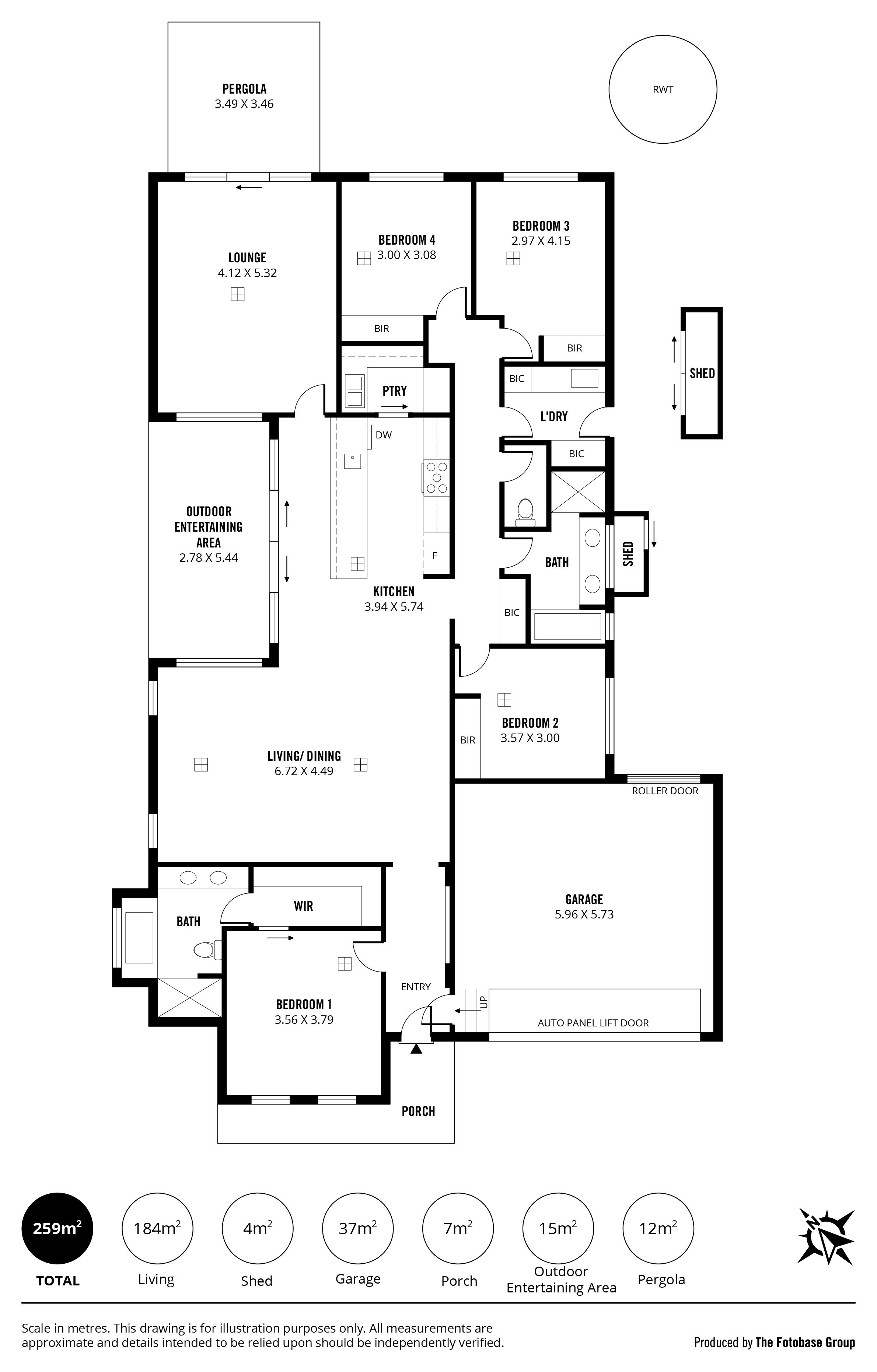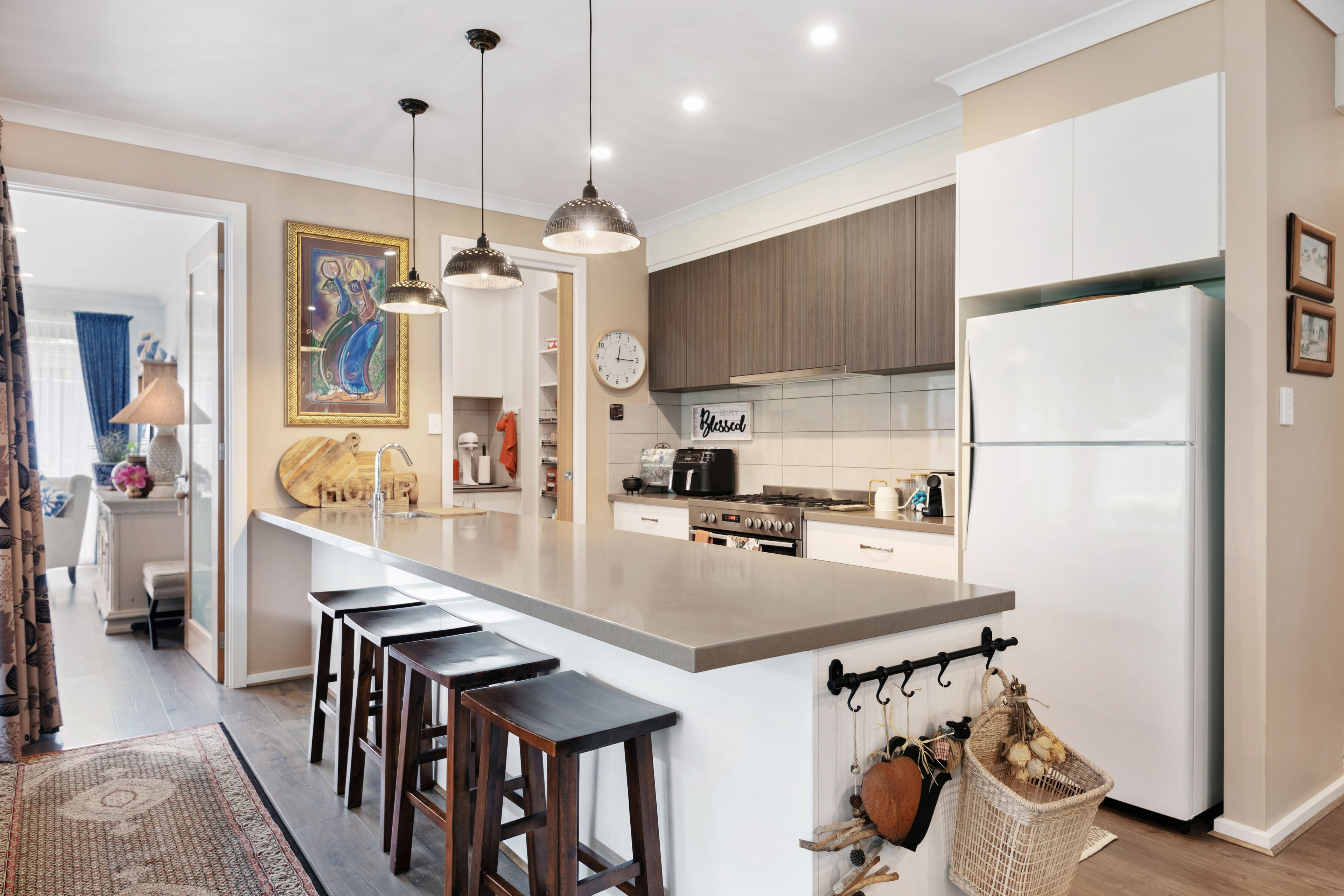 • 1200mm front door and wide entrance. • 9ft ceilings. • Ducted reverse cycle air conditioning. • Combined living and dining room. • Second living or family room. • High clearance double garage with an auto panel lift door and mezzanine floor. • Decked outdoor entertaining area with zip track blinds. • Additional pergola. • Quality kitchen with Caesarstone benchtops and a breakfast bar. • Butlers pantry with a double sink. • 900mm oven and range hood. • Dishwasher and a 5x burner gas cooktop. • Main bedroom with a large walk-in wardrobe. • En-suite with dual vanity, floor to ceiling tiles and a bathtub. • Spacious bedrooms with built-in wardrobes and block-out and shade blinds. • Main bathroom with dual vanity, shower niche, floor to ceiling tiles and a bathtub. • Separate second toilet. • Laundry with plenty of storage, built-in shelves and a large benchtop. • Linen storage in the hallway. • LED downlights. • 5000L rainwater storage. • Low maintenance front and rear yard. • 2 x garden sheds.