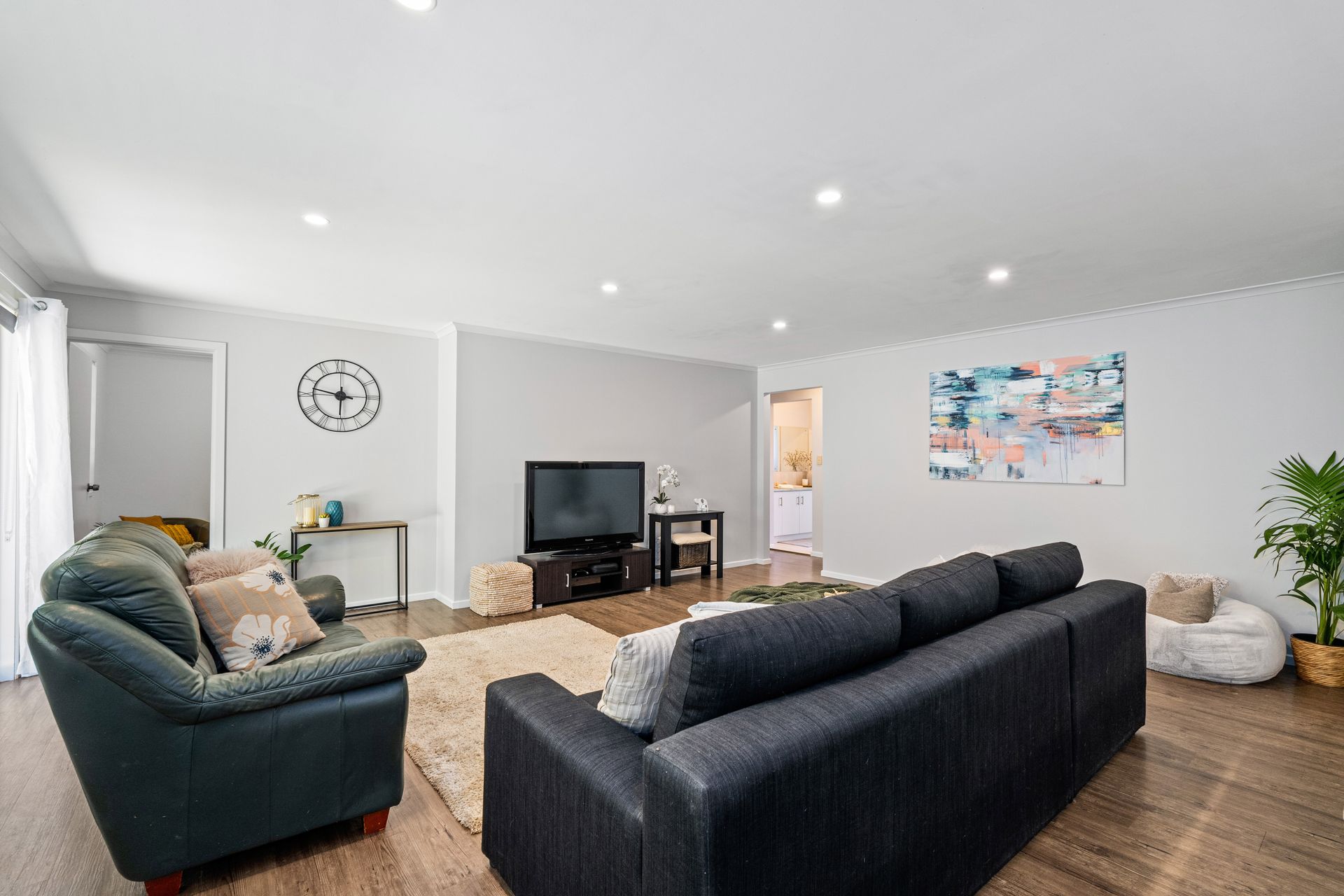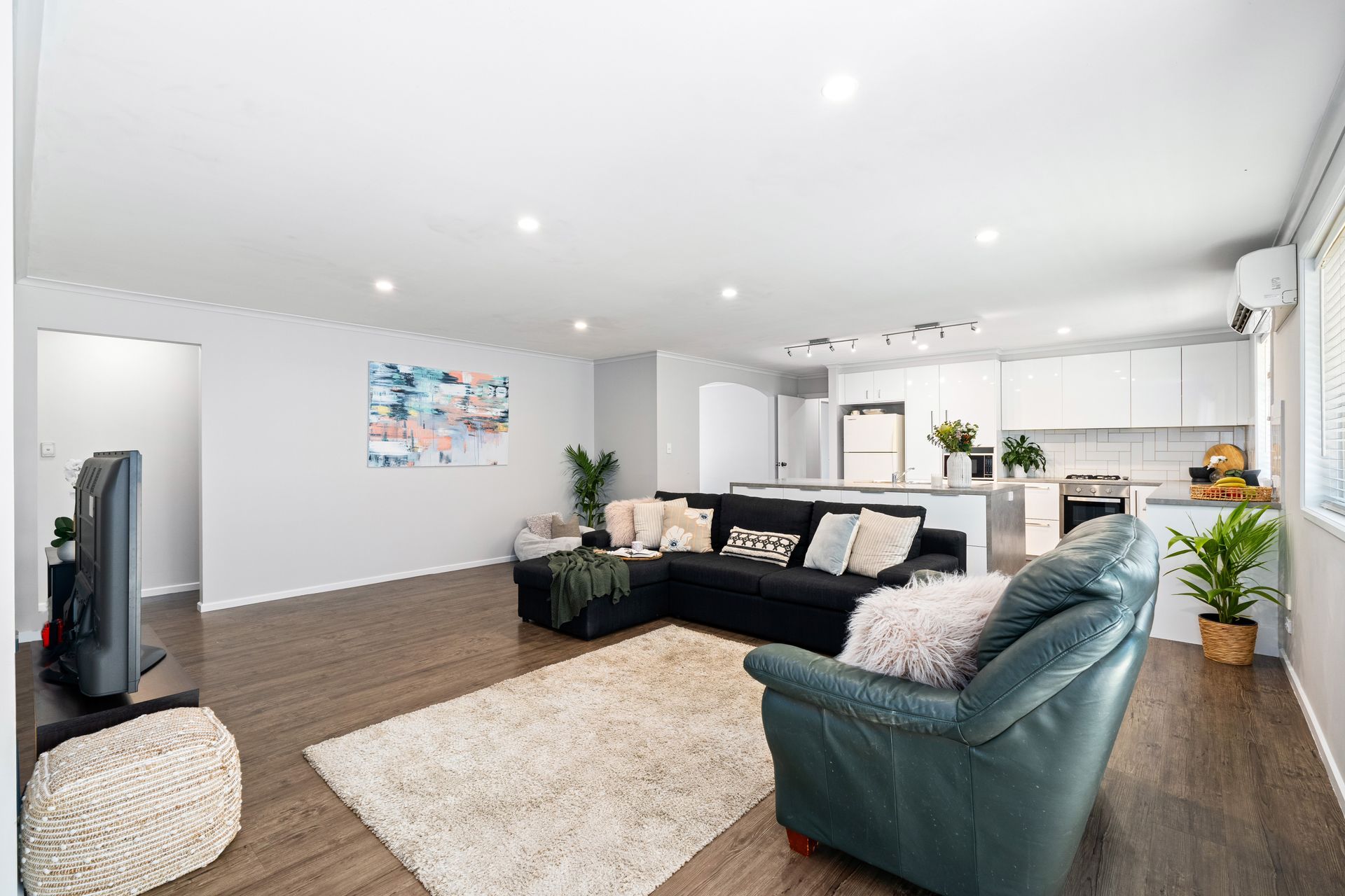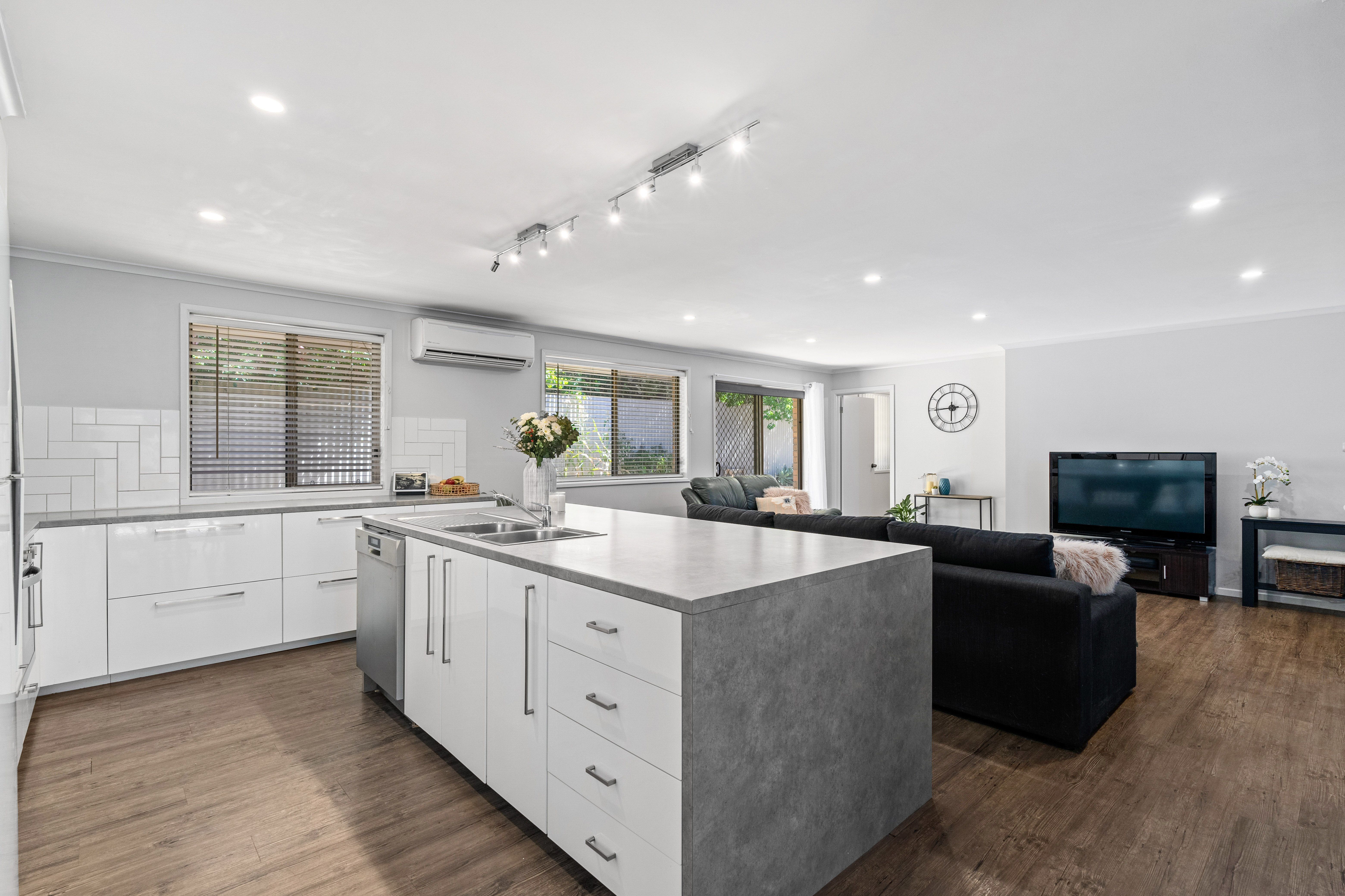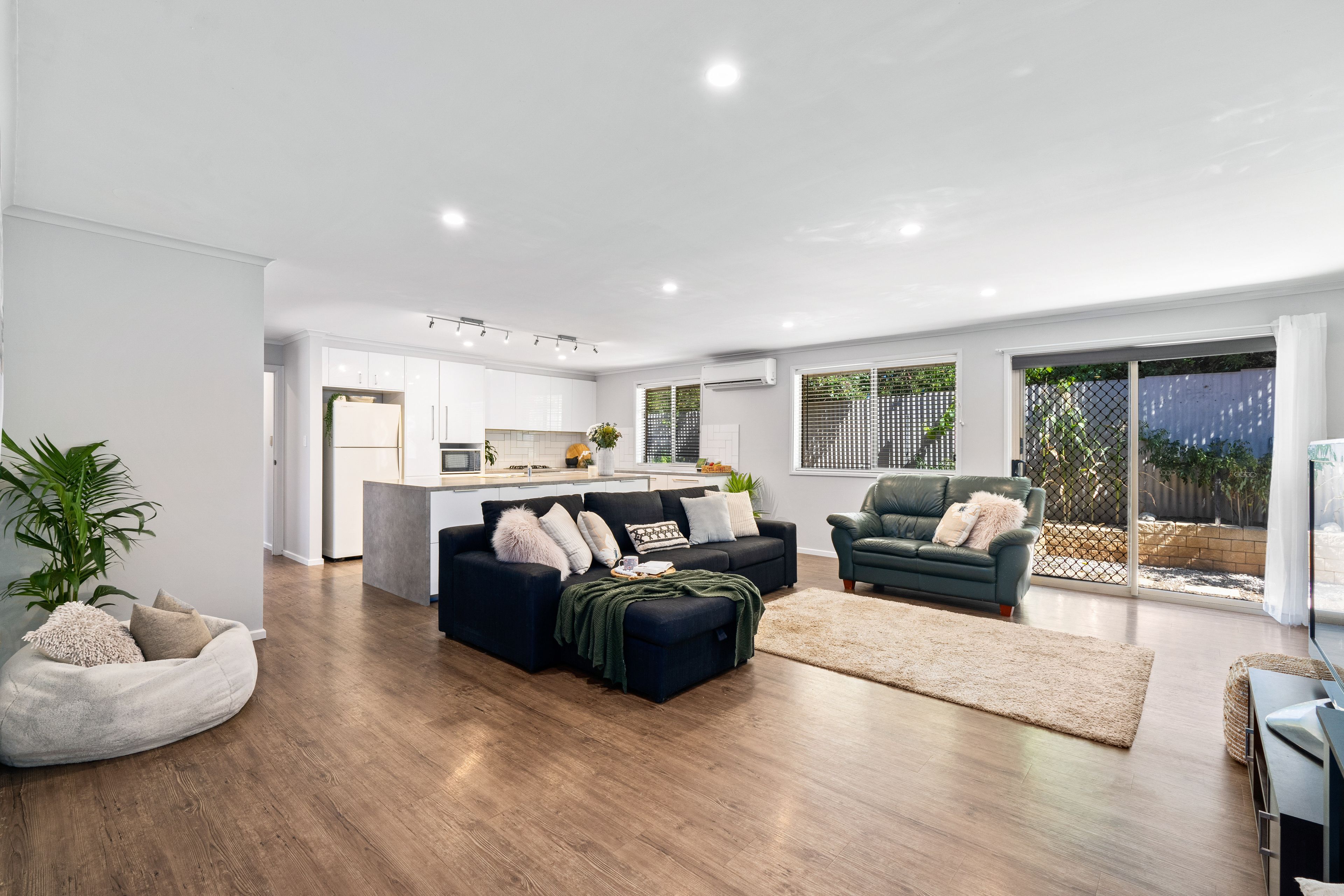 Entering through the wide hallway, you are welcomed by a light-filled second living area and spacious master bedroom separated from the main living area, then seamlessly flowing through to the extensive, open-plan kitchen and family area with separate dining perfect for entertaining. You also have an added bonus of an extra room off the living area, ideal for a study, 4th bedroom or extra storage options.