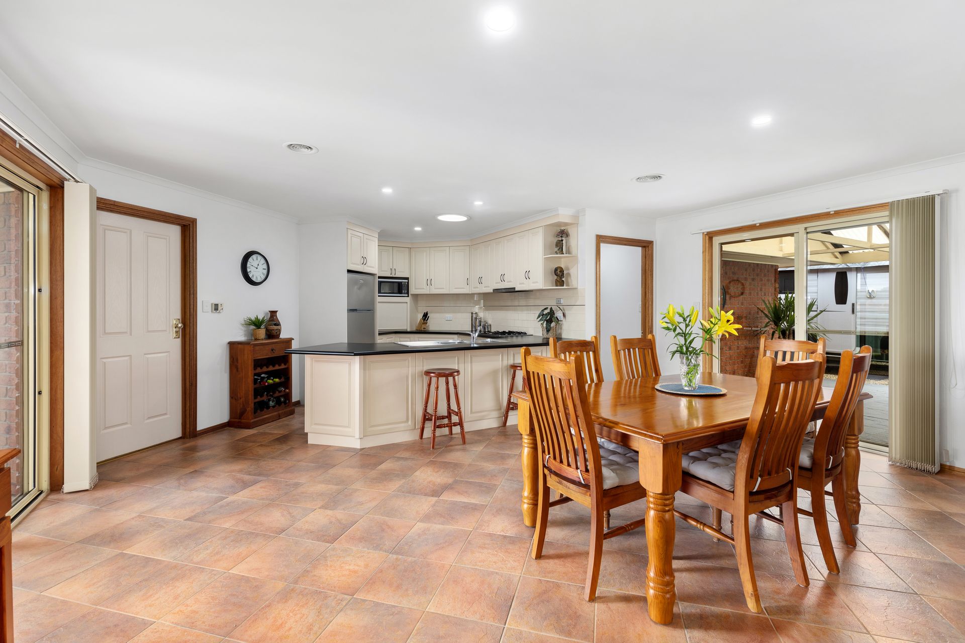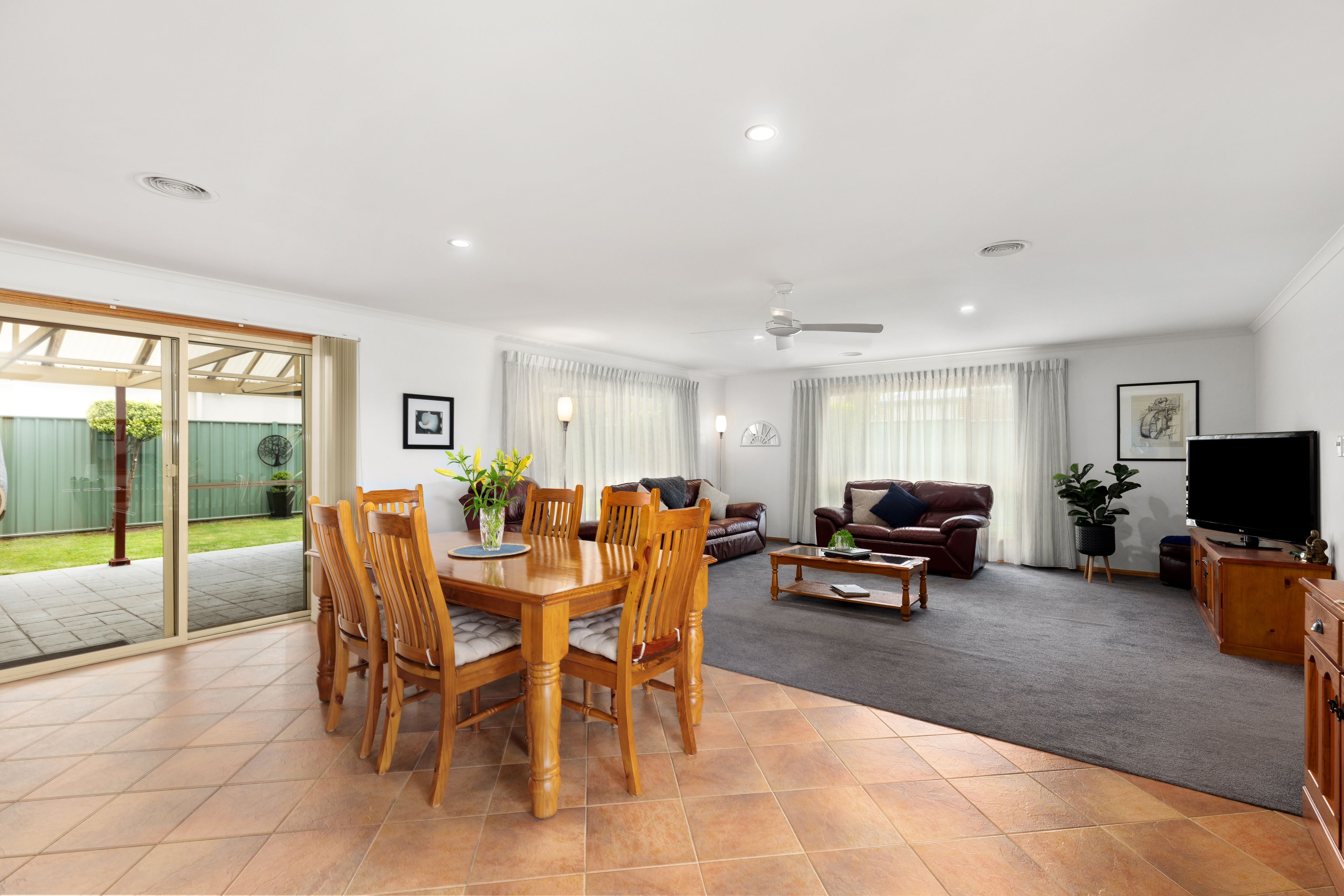 Continuing down the hallway is the open plan living, dining and kitchen area. This open plan space is centrally located and is perfect for entertaining guests or for those with families. The space is comforted by ducted heating and cooling for year round heating and cooling along with ceiling fans throughout.