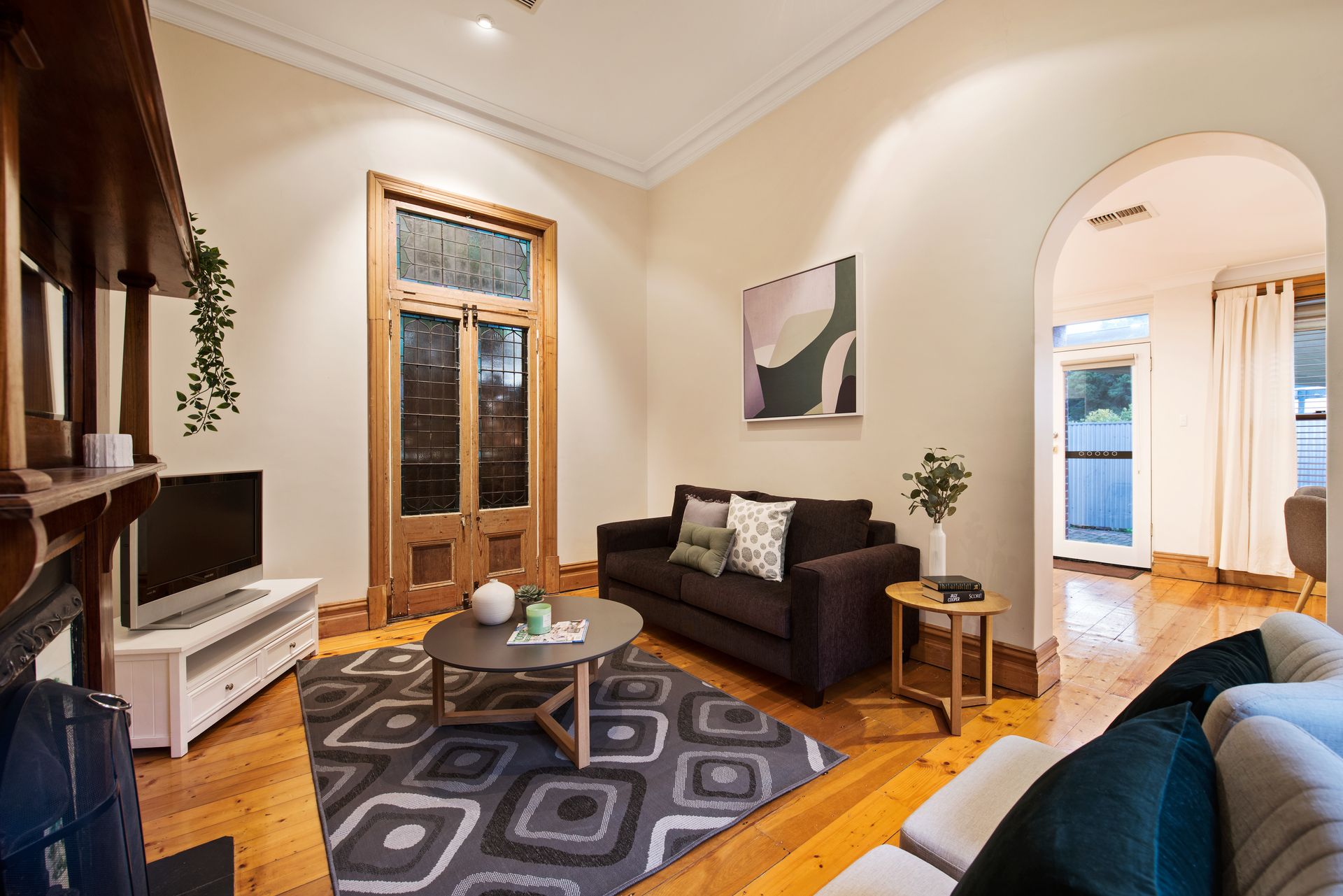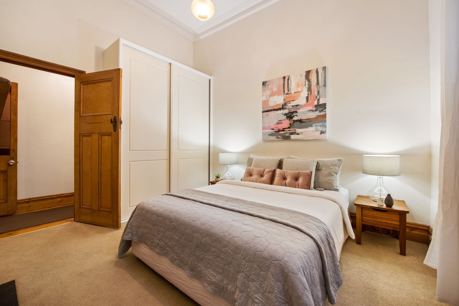 The extended cottage footprint also provides a sun-drenched modern kitchen with stainless-steel appliances and adjacent meals, overlooking a mellow spread of brick paving at the rear. Park or party beneath the shade sail, with auto access via Leicester Street.