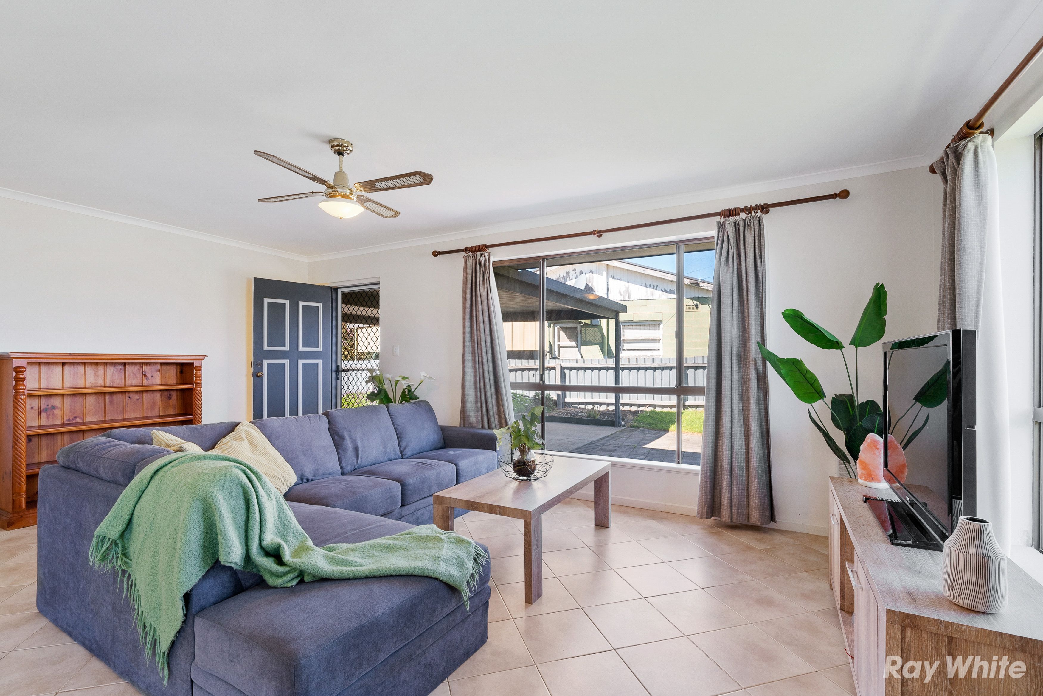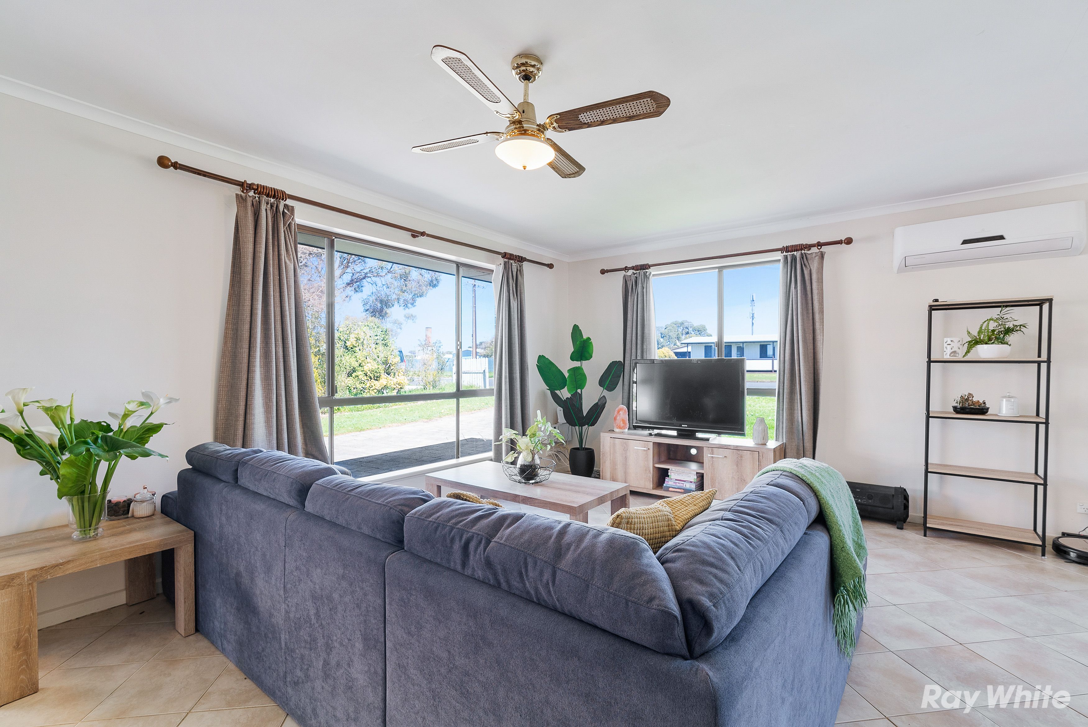 Dining alongside the neat and tidy Kitchen with electric oven and breakfast bar. Passage to the family bathroom with bath, shower & vanity. Separate WC & Separate Laundry with door to the side / rear yard.