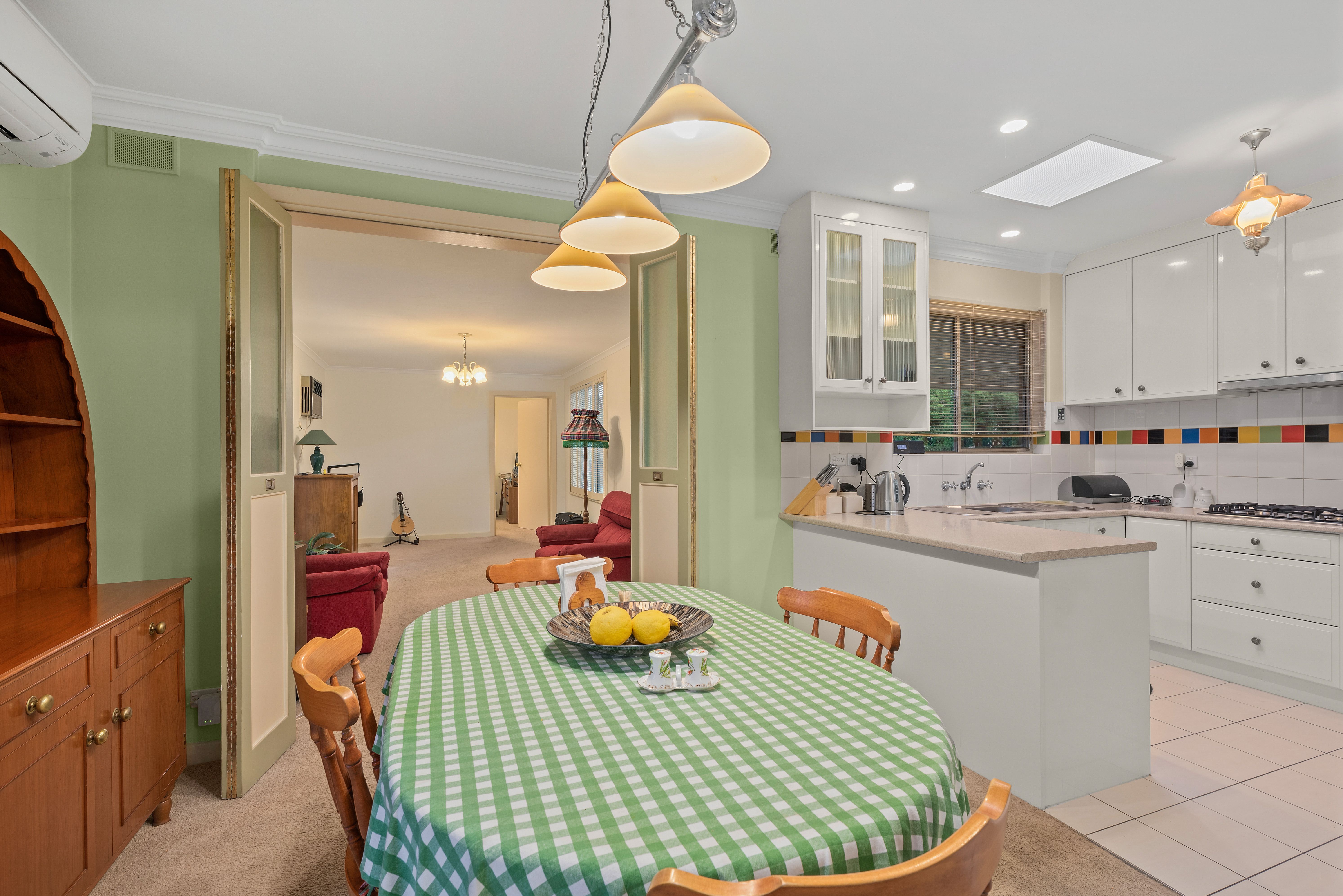 The main living area is kept warm with gas heating and is located at the front of the home flowing through to the dining area and updated kitchen. The kitchen has gas cooktop and electric oven and is light and bright with plenty of storage. A second split system is located in the dining area for year round comfort.