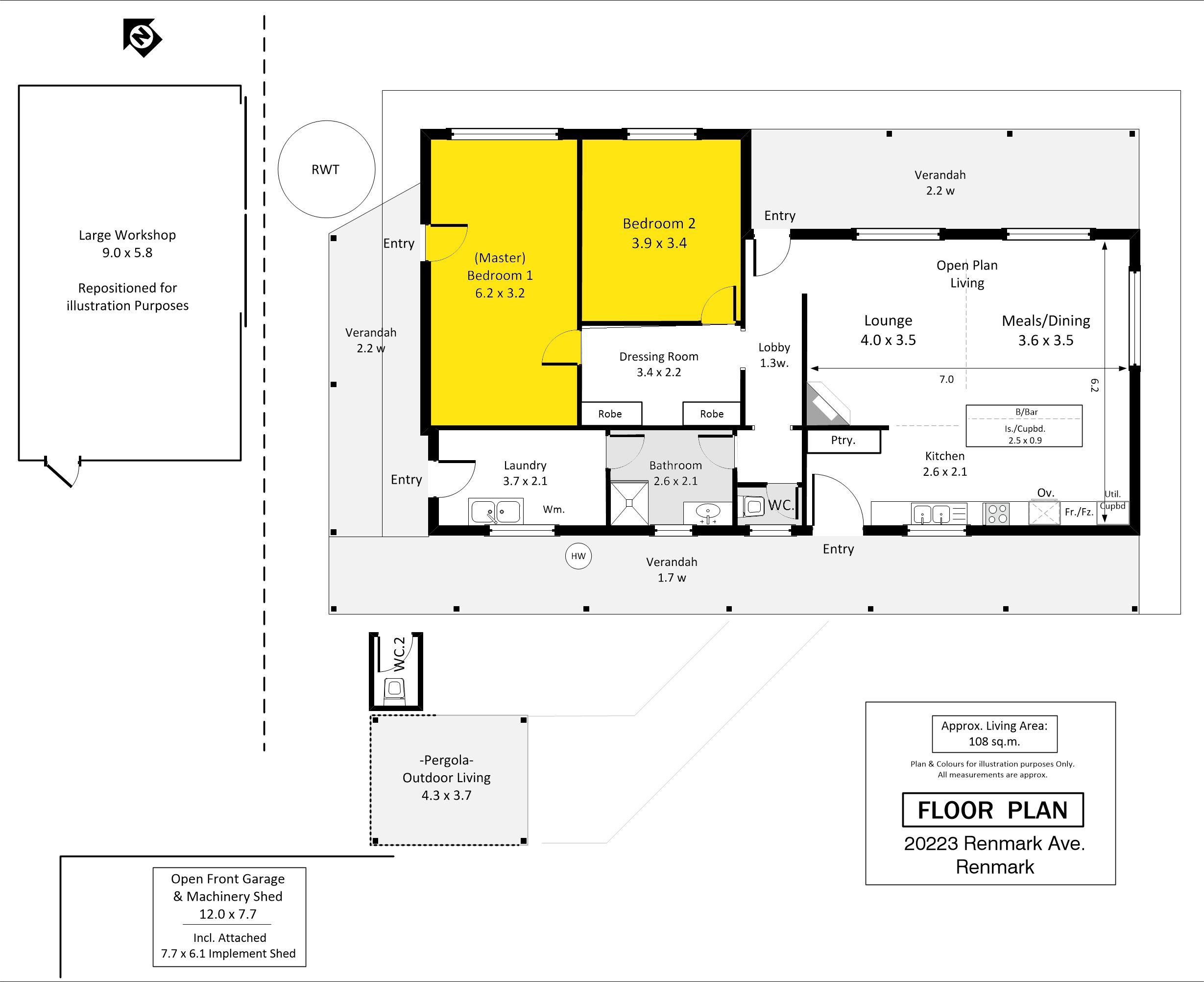 • Two generous bedrooms, with Bedroom 2 offering external access. • Stylish new kitchen featuring ample cupboard space, gas cooking, a wall oven, and an island bench overlooking the open-plan dining and living area. • Spacious and light-filled living area, perfect for comfortable everyday living. • Outdoor entertaining area with a ceiling fan, ideal for summer gatherings. • Stunning views over the expansive lawns and vineyards. • Expansive 9m x 5.8m workshop comprising of 3 bays. • 3KW Solar System for year-round savings. • Open front garage/machinery shed. • Set back 200m from the road for privacy and tranquillity. • Set on approx 10 acres. • A fantastic opportunity to complete renovations and add your own touch.