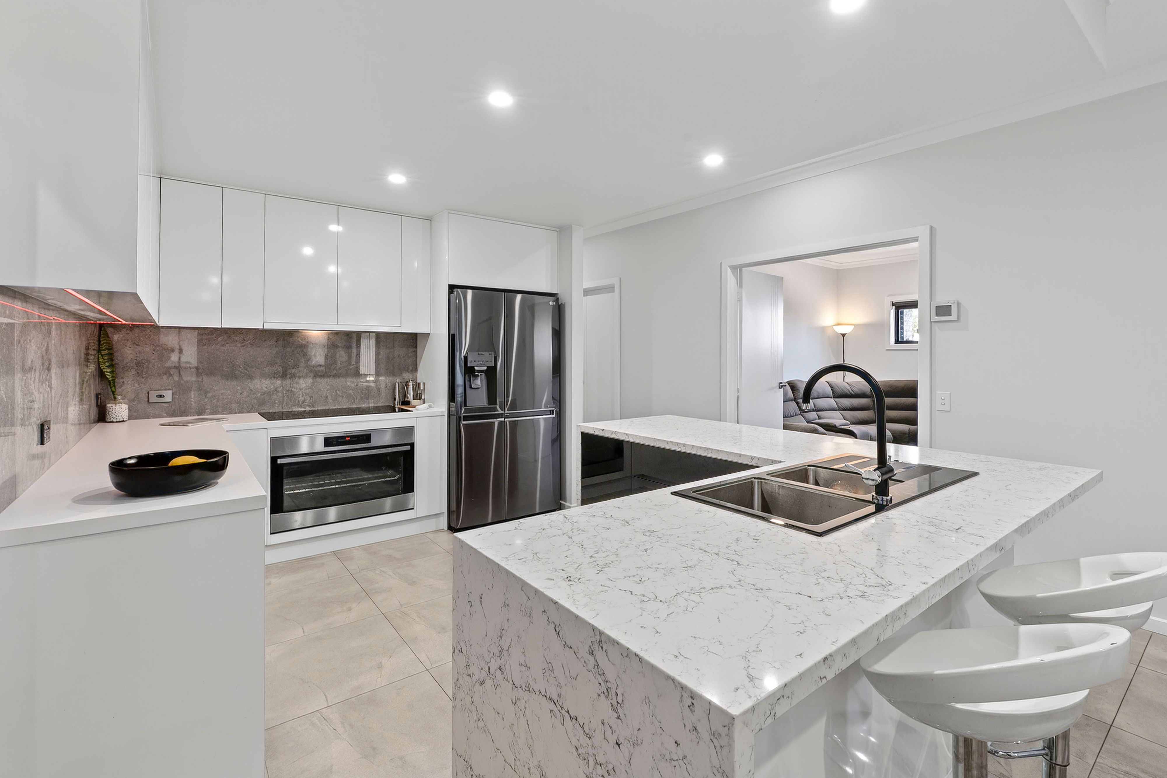 The kitchen is beautifully appointed with sleek stone waterfall benchtops, premium electric appliances, and an induction cooktop set the scene for effortless entertaining and everyday cooking. Comfort is ensured with ducted reverse-cycle air conditioning throughout, plus a cosy slow-combustion heater for winter warmth.