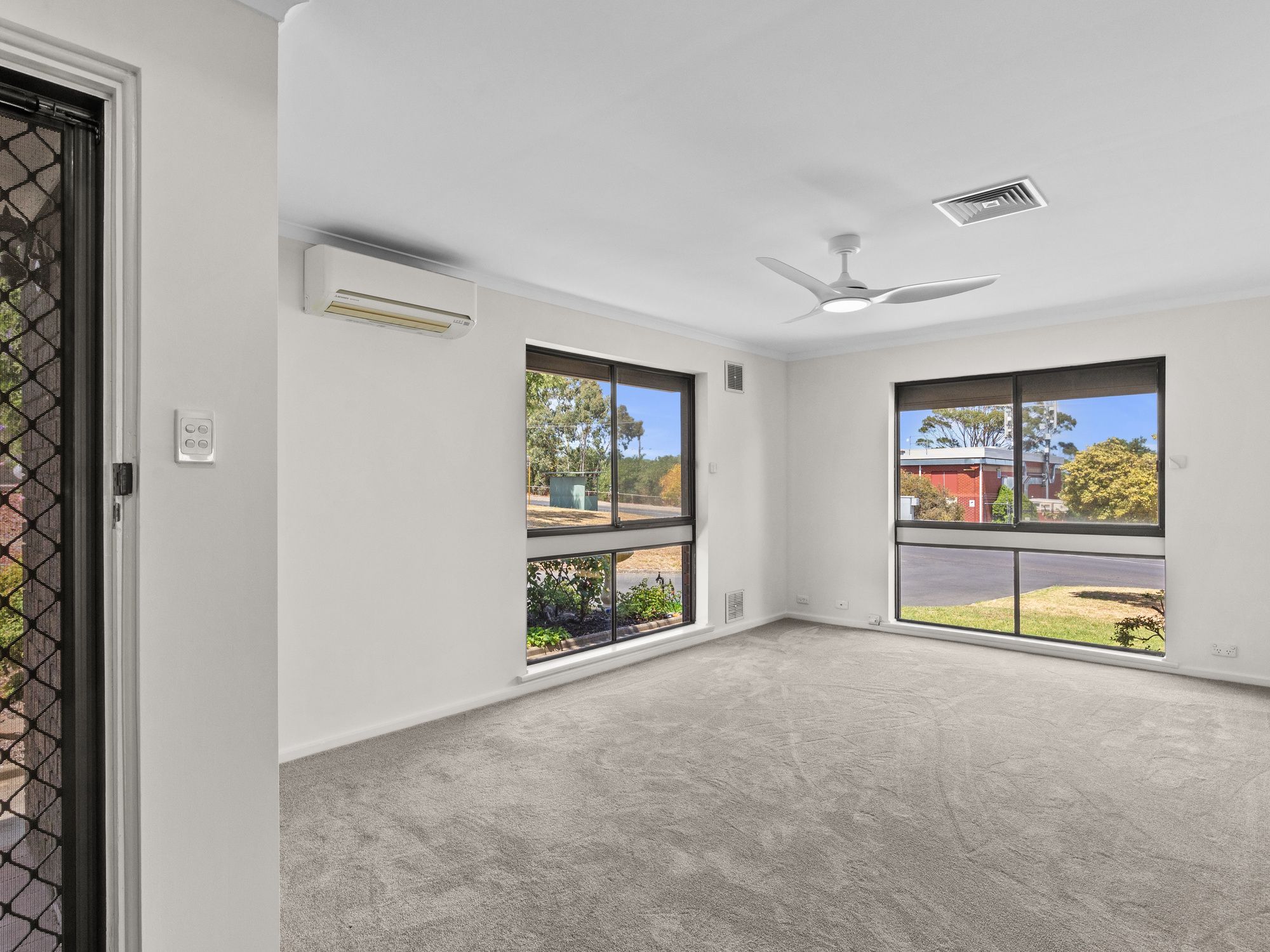 The home includes two generously sized bedrooms and a versatile third room that can serve as a second living space, a home office or whatever suits your needs. The central bathroom and separate laundry provide practical convenience, while the recent addition of ceiling fans and a split system air-conditioner ensure comfort in every season.