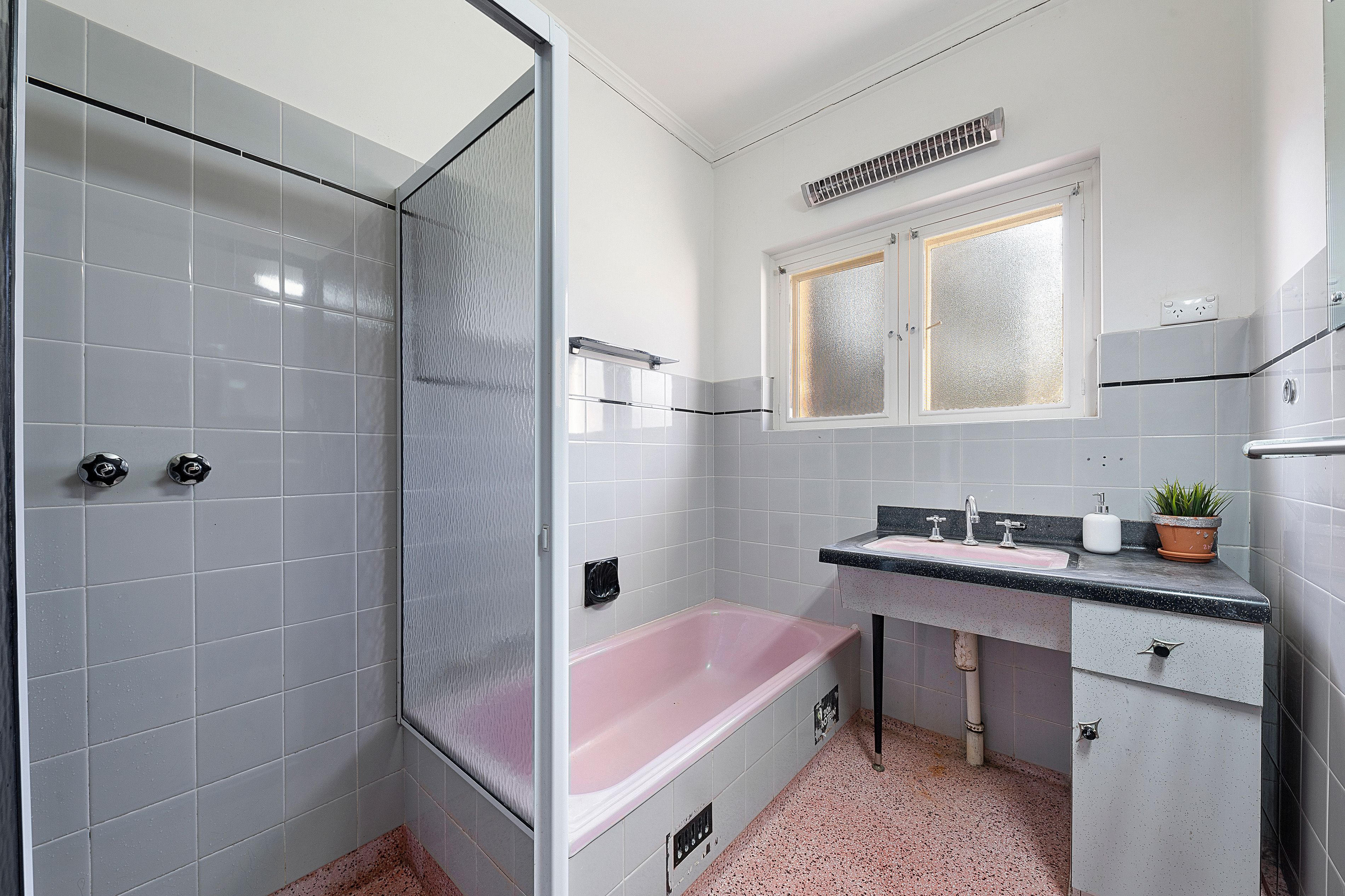 Stylish original art deco bathroom provides separate bath and shower, a wide vanity and terrazzo floor. A traditional laundry with double sink and separate toilet complete the wet areas.