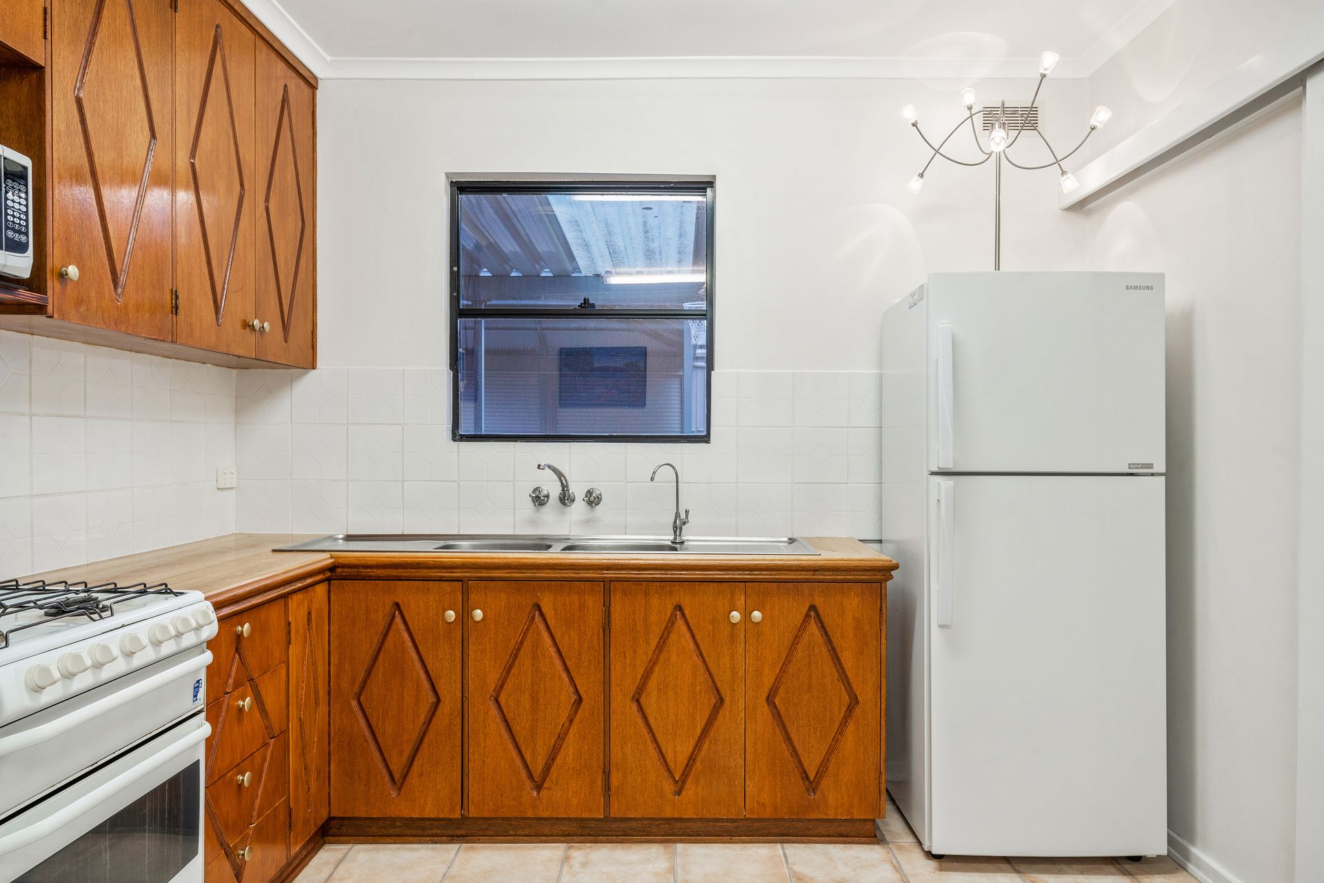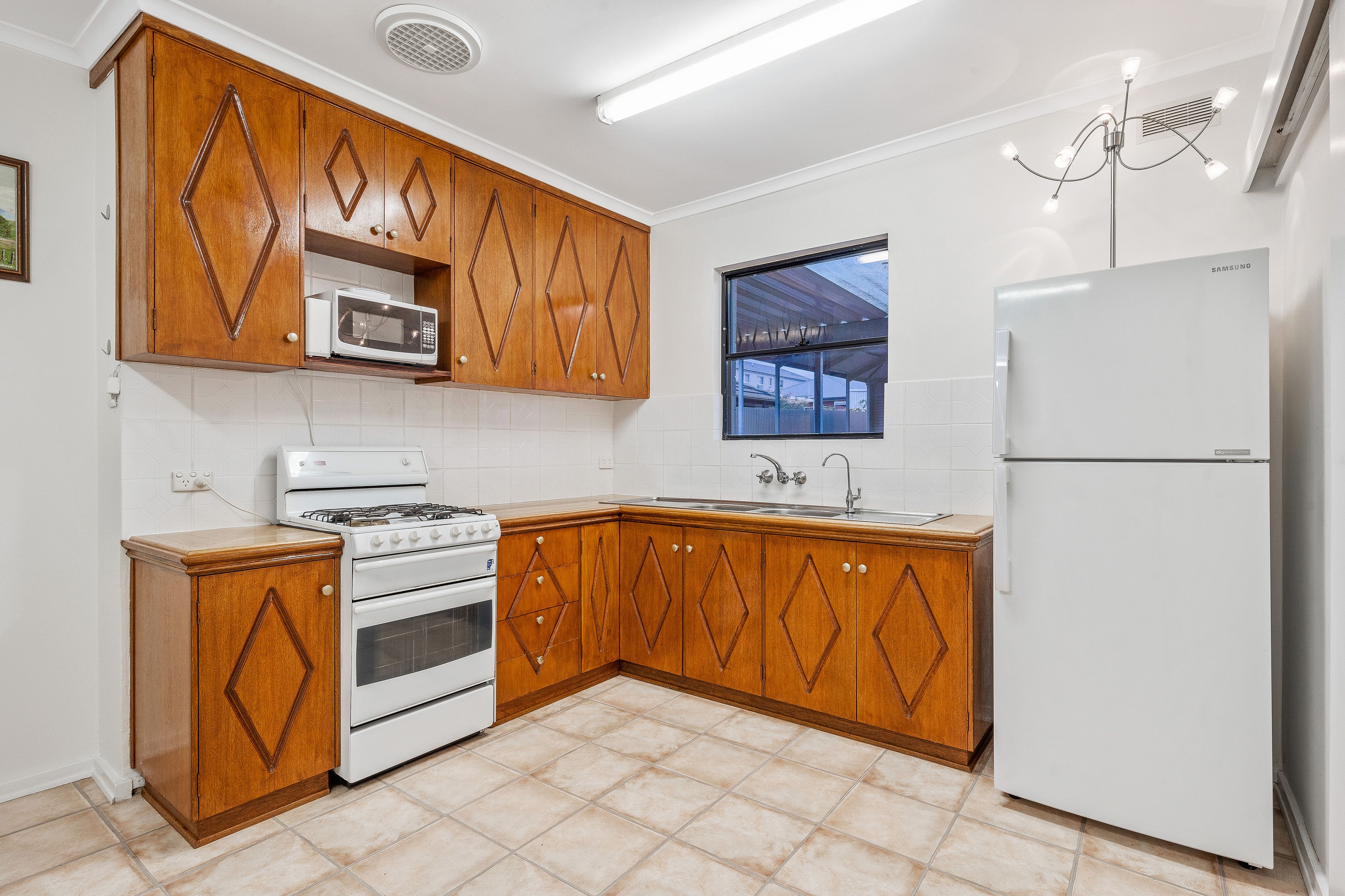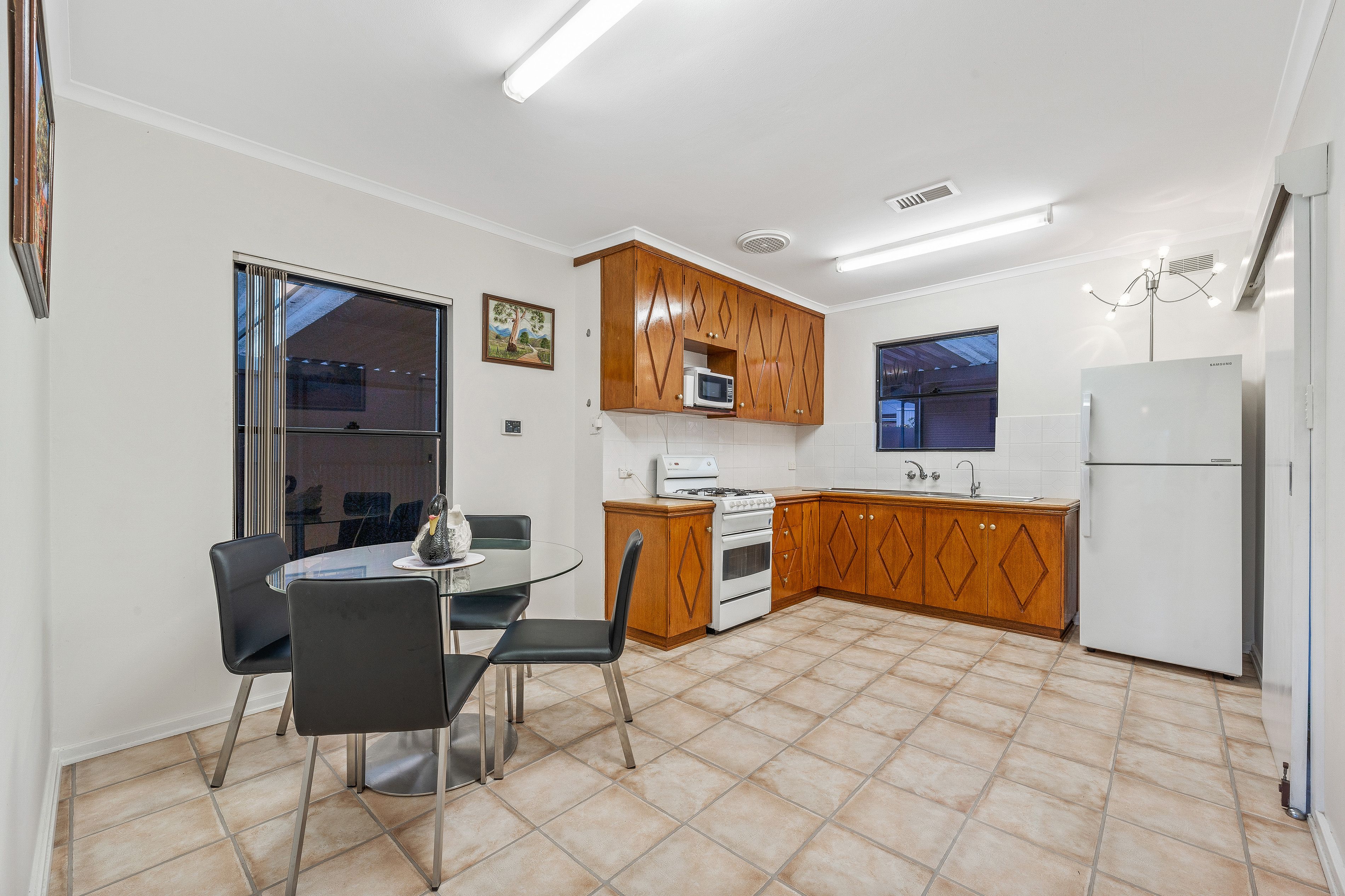 Relax around the kitchen table in this traditional social layout. The kitchen features solid timber cabinetry, freestanding gas stove, wide double sink with filtered water and ample overhead cupboards.