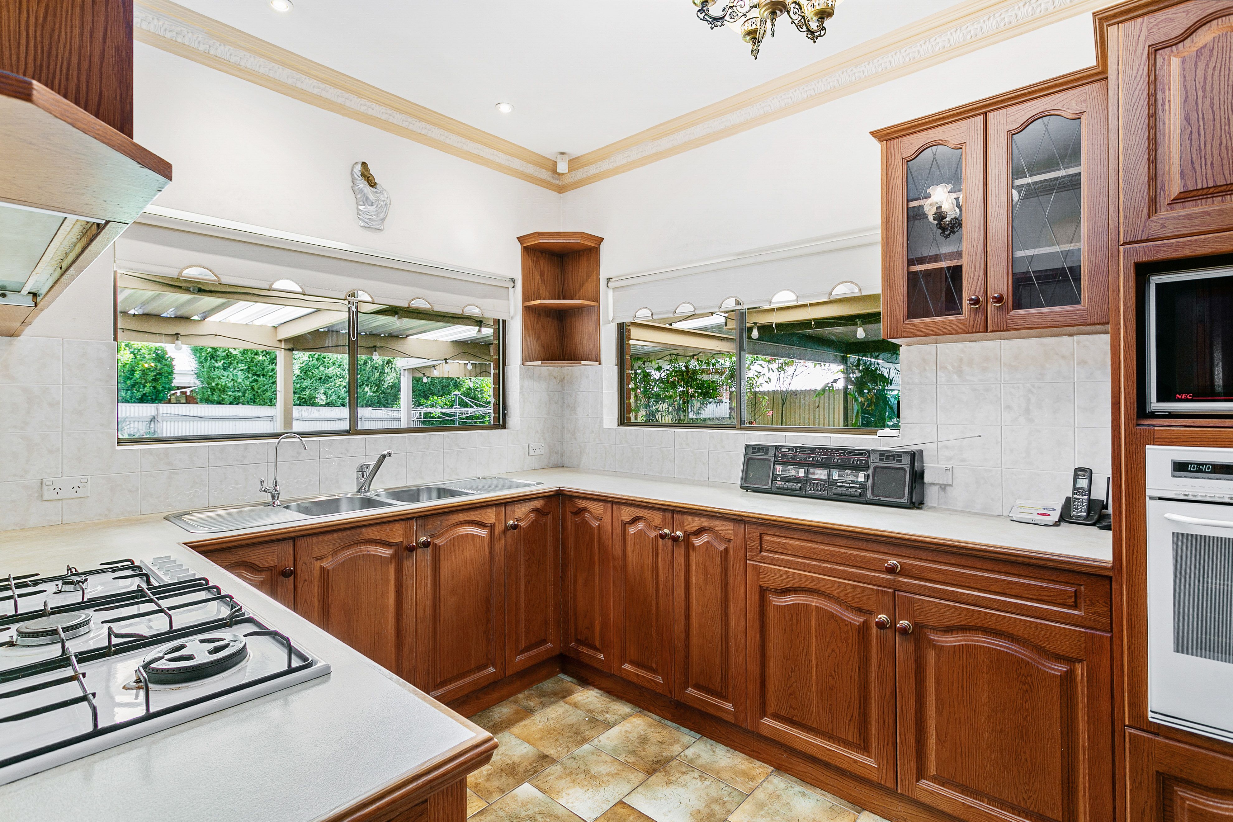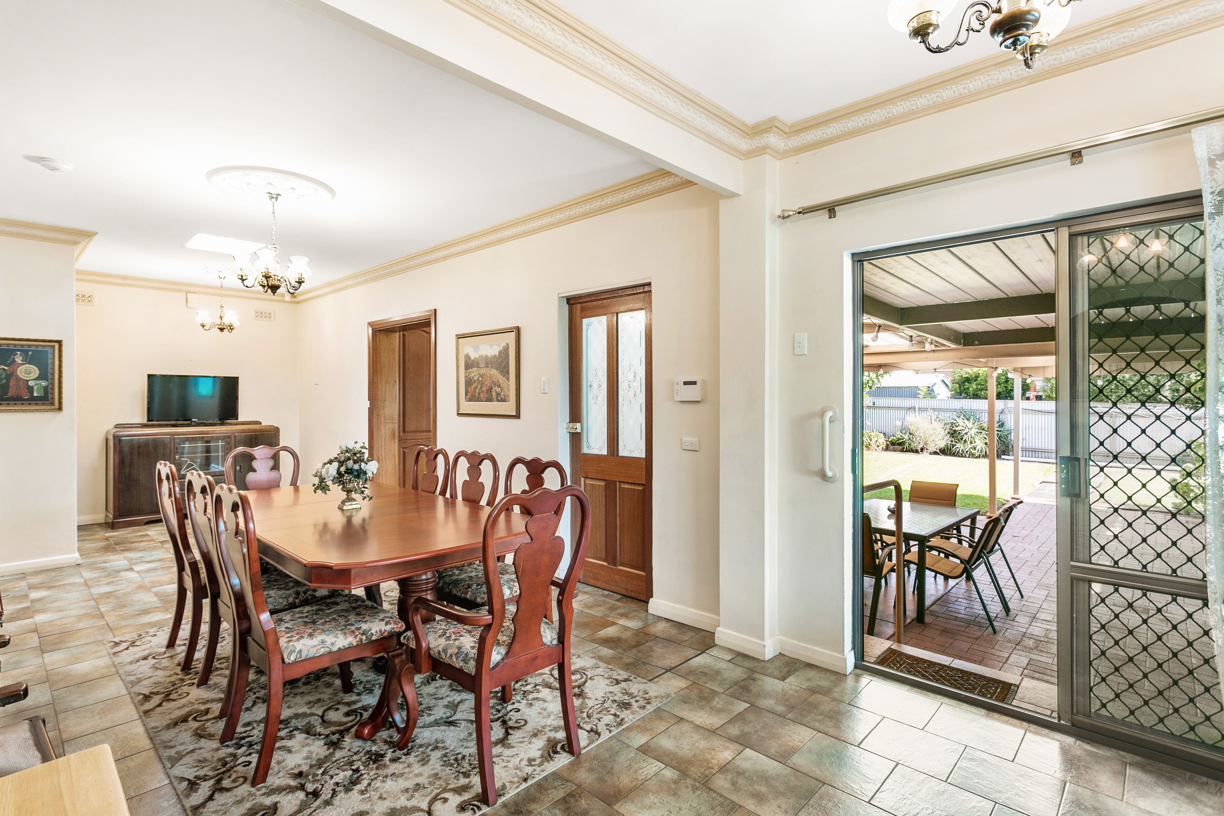 - Centrally located formal living room with an inbuilt gas heater. - Large dining room off the kitchen, that could also accommodate a second lounge / TV area. - Family kitchen equipped with Tasmanian oak cabinets, plenty of storage, gas cooktop, oven and puratap. - Master bedroom positioned at the front of the home. - Bedroom 2 also positioned at the front of the home bathed in natural light. - Bedroom 3 positioned off the hallway. - Main bathroom includes a spa bath, shower, vanity and toilet. - Second bathroom includes a shower, vanity and toilet. - Spacious laundry room with direct rear access. - Expansive undercover patio area, ideal for large scale family gatherings. - Detached rumpus / store room. - Security alarm system. - Ceiling fans to all bedrooms. - Undercover parking for two vehicles. - Manicured front and rear yards with mature plants and fruit trees. - Separate tool shed. - Front fence with lock up gates.
