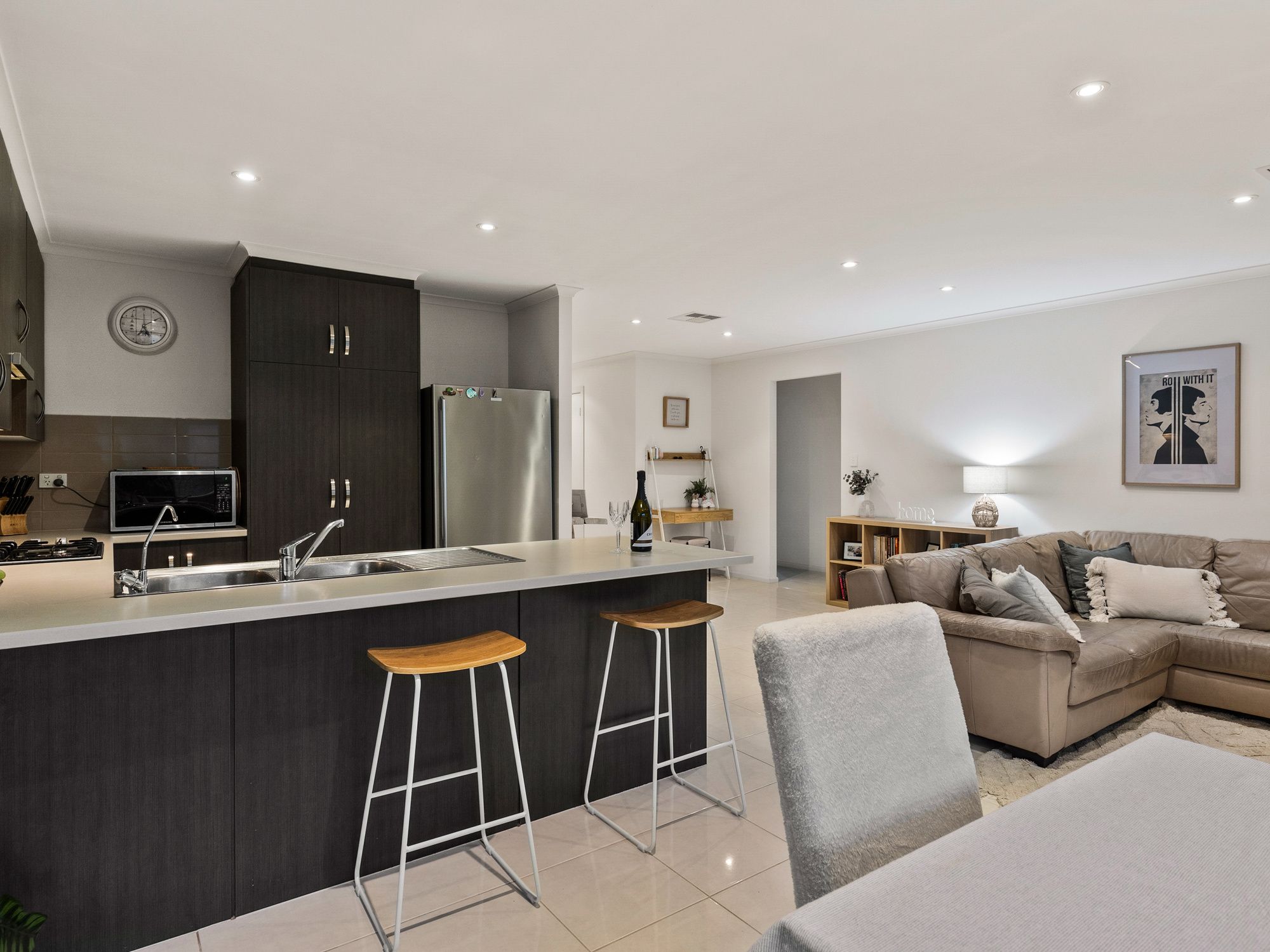 Impeccably presented throughout, the home offers a generous open plan living, dining and kitchen areas, all offering an abundance of natural light. The large modern kitchen is suited for busy family and is also perfect for the master chef. There is plenty of bench and cupboard space and conveniently overlooks the meals and family room so you can cook up a storm whilst you keep an eye on the children.