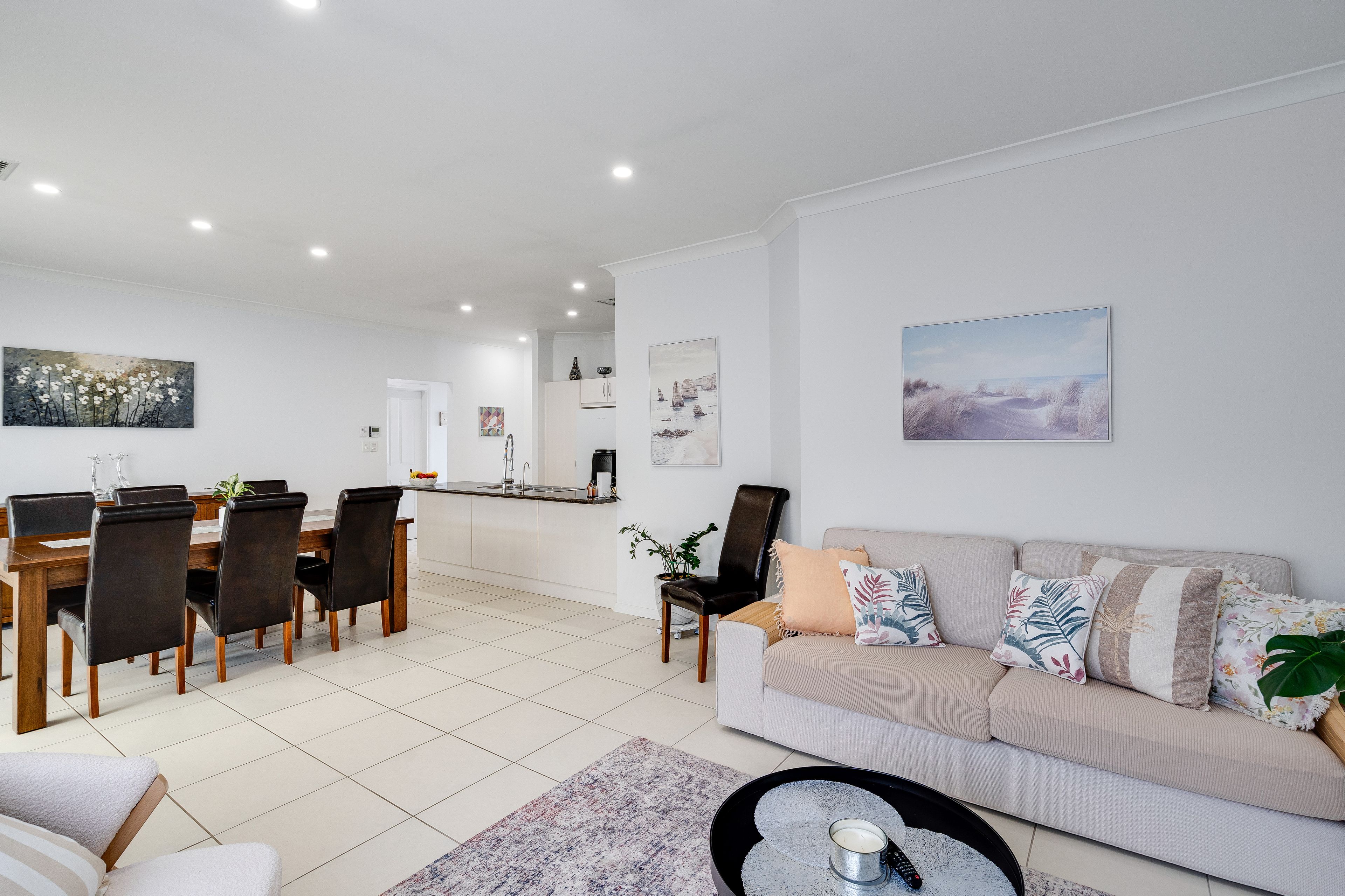 Step inside to discover a light-filled open plan living, dining and kitchen area, designed for both everyday living and effortless entertaining. The modern kitchen is well-appointed with ample storage and bench space, seamlessly connecting to the main living zone.