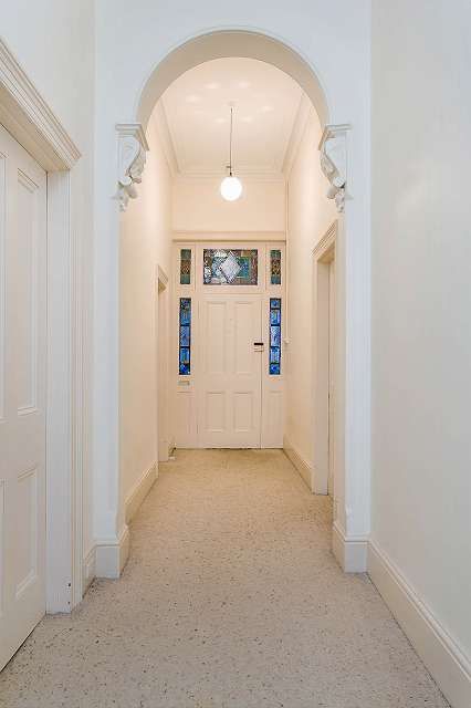 Boasting up to five bedrooms, the main with a walk in robe and en suite, two of the others feature shield front cupboards. A large formal lounge features a marble fire place and high ornate ceilings; there is a separate dining room with French doors leading out to the side veranda and garden. The feature room of this grand residence is the enormous reception room, again featuring a marble fire place and high ornate ceilings and its own entry.