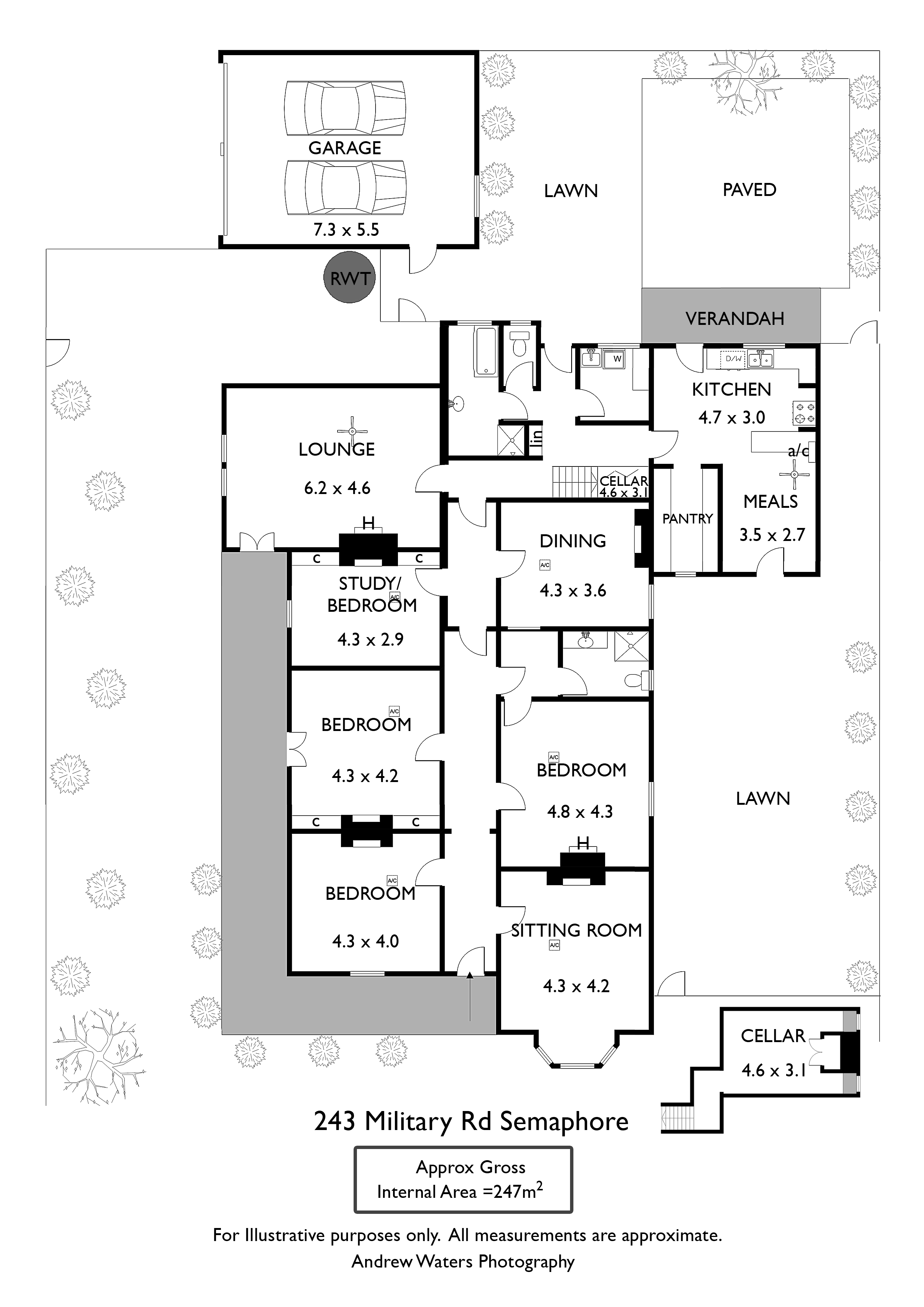 An updated kitchen features a dishwasher, a large butler's pantry an adjacent air conditioned meals area and much more; other features include a large dry cellar with natural light and ventilation, ducted evaporative air conditioning as well as split system units, gas heating, Baltic pine floor boards and double garaging with a remote controlled roller door. Situated within walking distance to the Semaphore Foreshore, cosmopolitan Semaphore Road, Schools and transport this home will suit the Family looking to bring back the elegance of this Grand Bluestone.