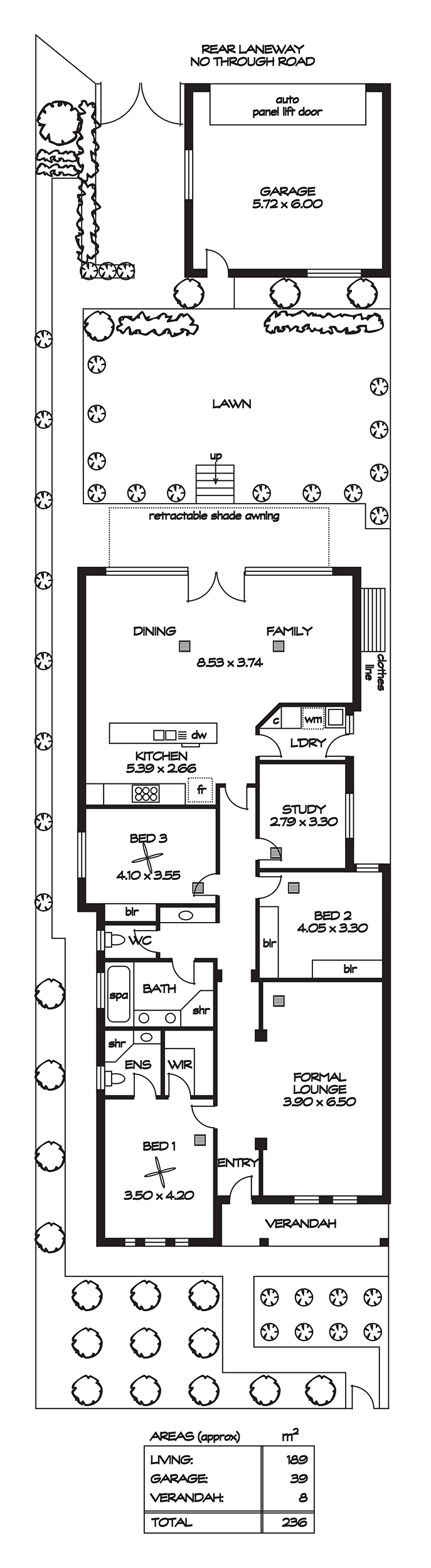 Step outdoors and relax alfresco style on a wide terrace overlooking an established lawn and garden through to a double garage and secure additional parking spot, all accessed via the rear laneway. A retractable shade awning overhead will provide protection from the elements.