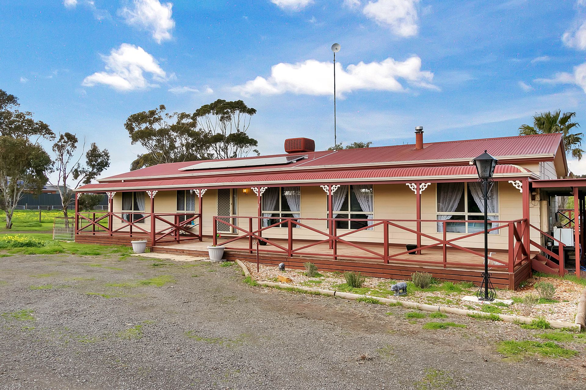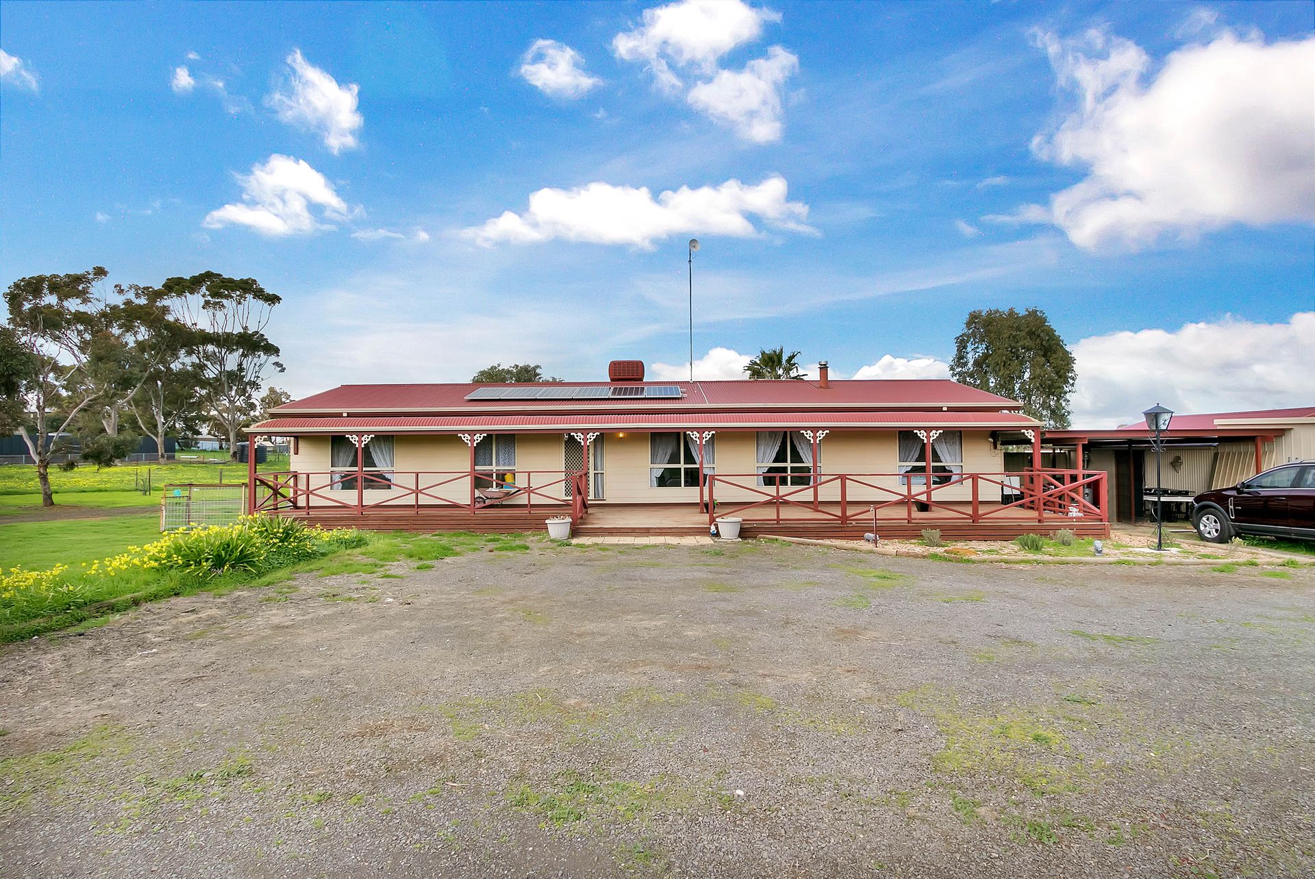 - Decked front verandah - 3 good sized bedrooms - Master with walk in robe & ensuite - Family bathroom with sep toilet - Front formal lounge room - Fantastic kitchen with breakky bar - Open plan family/meals area - Outdoor decked entertaining area - Rumpus room outside with bar - Double garage with roller door - Carport verandah - Solar panel system - 6m x 4m shed - 6m x 3m shed - 8830sqm allotment