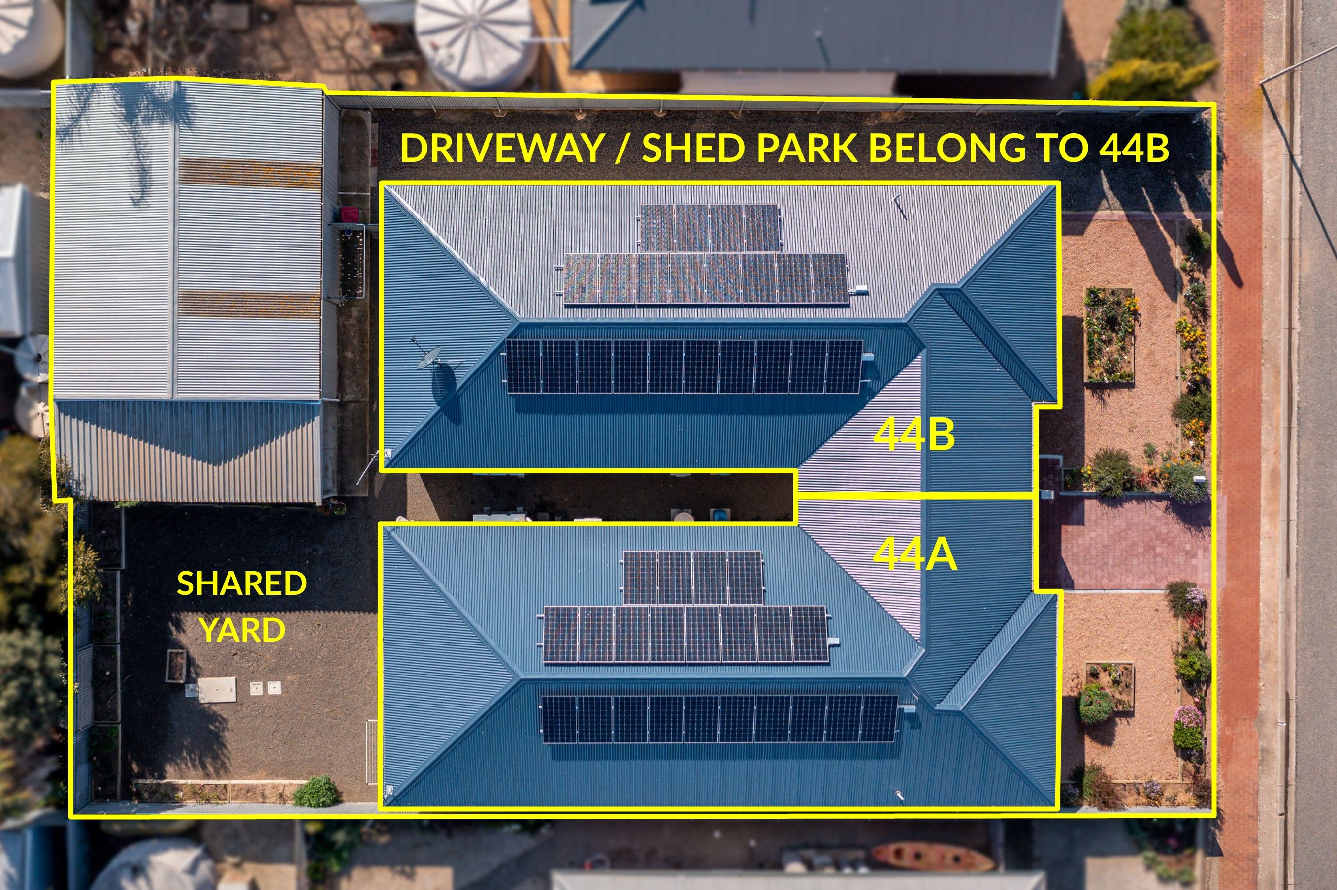 The house has a spacious open plan living, dining & kitchen with induction cooktop, breakfast bar and butler's pantry with a dishwasher, extra sink and additional storage. Heating and cooling is sorted with a split system in the open plan living area and ceiling fans in the bedrooms. The house has its own electric hot water service, water softener, modular rainwater tank & 6kW 22 panel solar system! There is a low maintenance yard that is a shared space and responsibilty with the house next door and a garden out the front. There is a undercover entertaining area lean-to off the shed which is also shared.