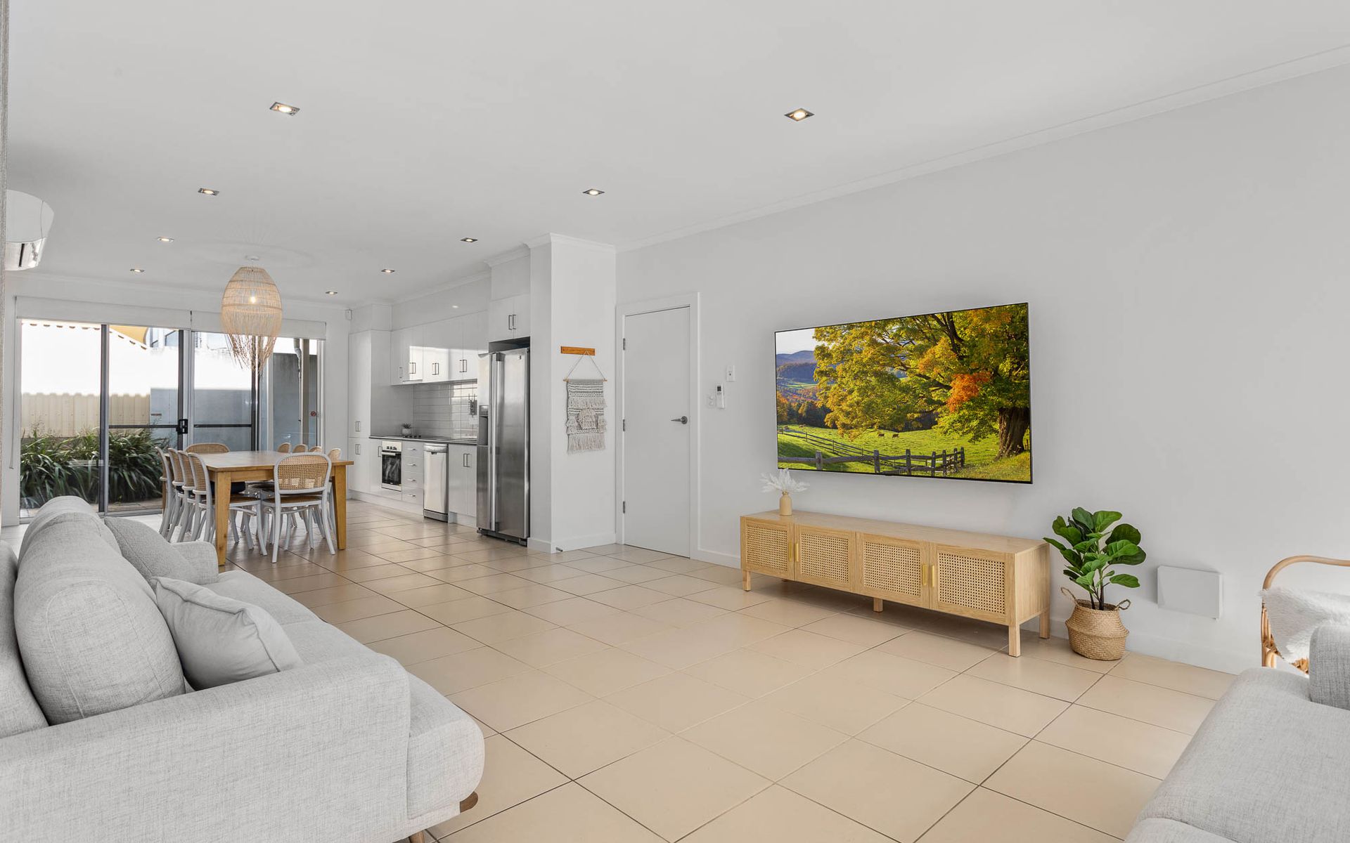 Downstairs: Spacious open plan living area, perfect for entertaining both indoors and outdoors. The practical kitchen allows for an abundance of storage space with an electric oven, stovetop, dishwasher and excellent storage options.