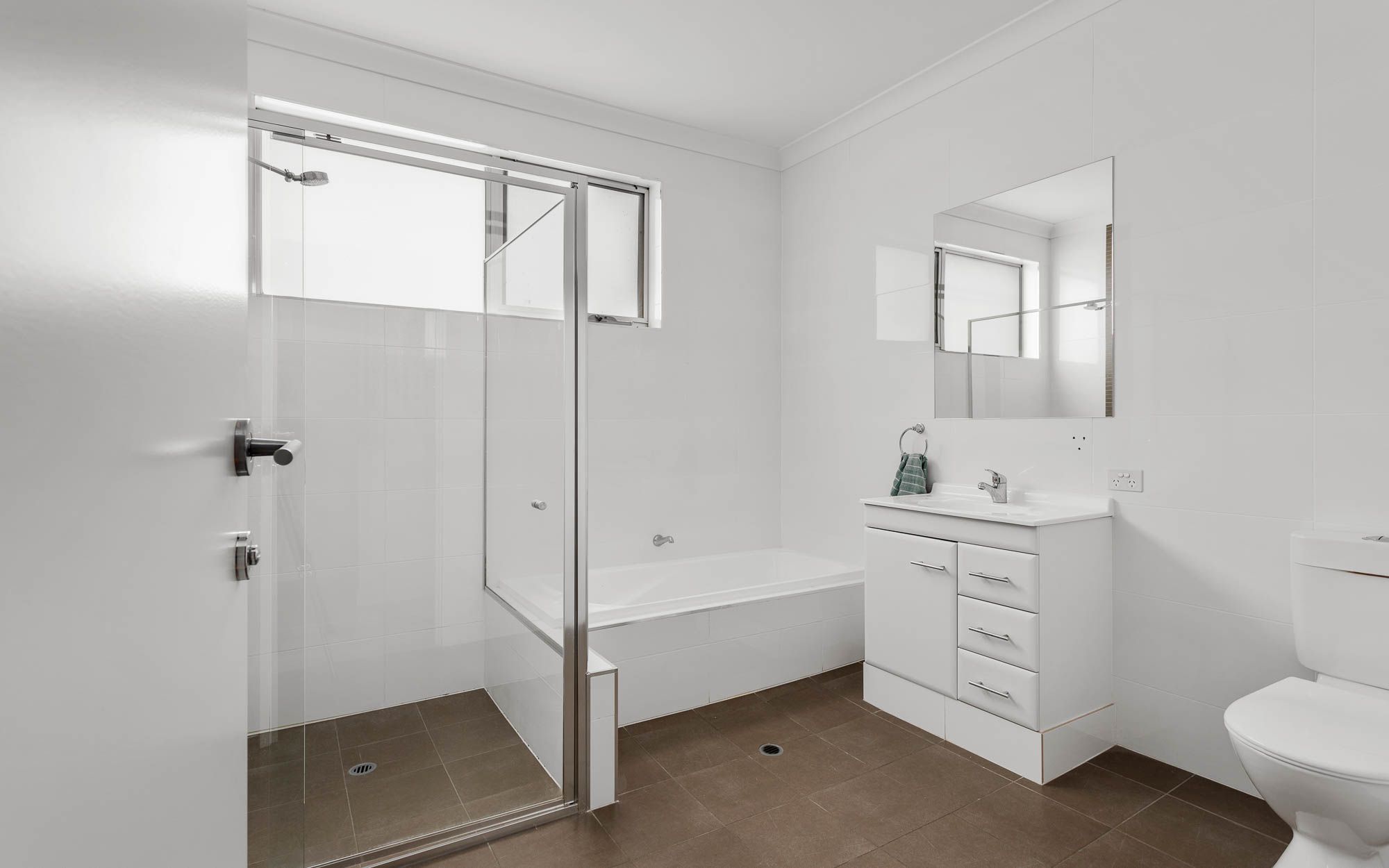 The three bedrooms are located upstairs and share an adjoining bathroom with separate bath, full width shower and fully tiled walls for extra convenience.