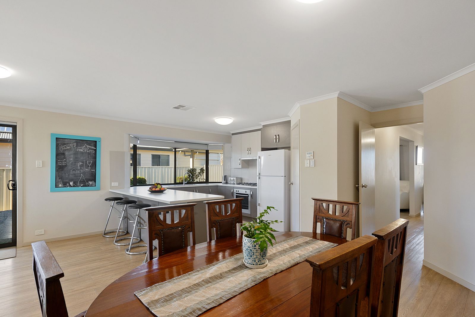This 2014 Fairmont built home has a fantastic floorplan to accommodate the whole family and more. Central to everything, located in a peaceful street with great neighbors. There are 4 bedrooms; main bedroom has en-suite and walk-in robe, the remaining three are good in size, bedroom 2 with walk-in robe and bedroom 3 with built-in robe, bedroom 4 can be a study. The main bedroom is located at the front of the home and is accessed from the entrance hall, the others are off the rear private passage and are located around the main bathroom and laundry. The main bathroom is a functional 3-way design. The formal lounge is also located also at the front home, to which the hall then leads into the open planned living area with floating floors, comprised of kitchen, meals and family. The kitchen has ample bench space and cupboards, double sink under the window, walk-in pantry, range hood and gas cook top. The home is kept comfortable during all seasons with ducted reverse cycle air-conditioning, hot water is supplied by an instantaneous gas hot water unit. There is approximately 22,000 Litres of rainwater storage. The front garden is established, and enclosed yard is low maintenance with room to give you the opportunity to bring your own flair to this area. The singe carport under main roof has a roller door, and access to the backyard, with further carport giving extra height for the caravan or boats. There is also a 20 x 25 approximate garage currently giving room for a man cave, this property would suit many different people looking to buy, from families to couples, from permanent residence to holiday home. To see whether it will work for you call Sales Agent Seah Williams on 0428 620379 to make a time for a private inspection.