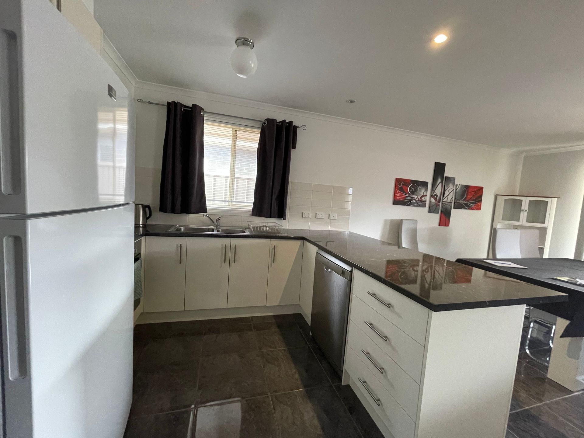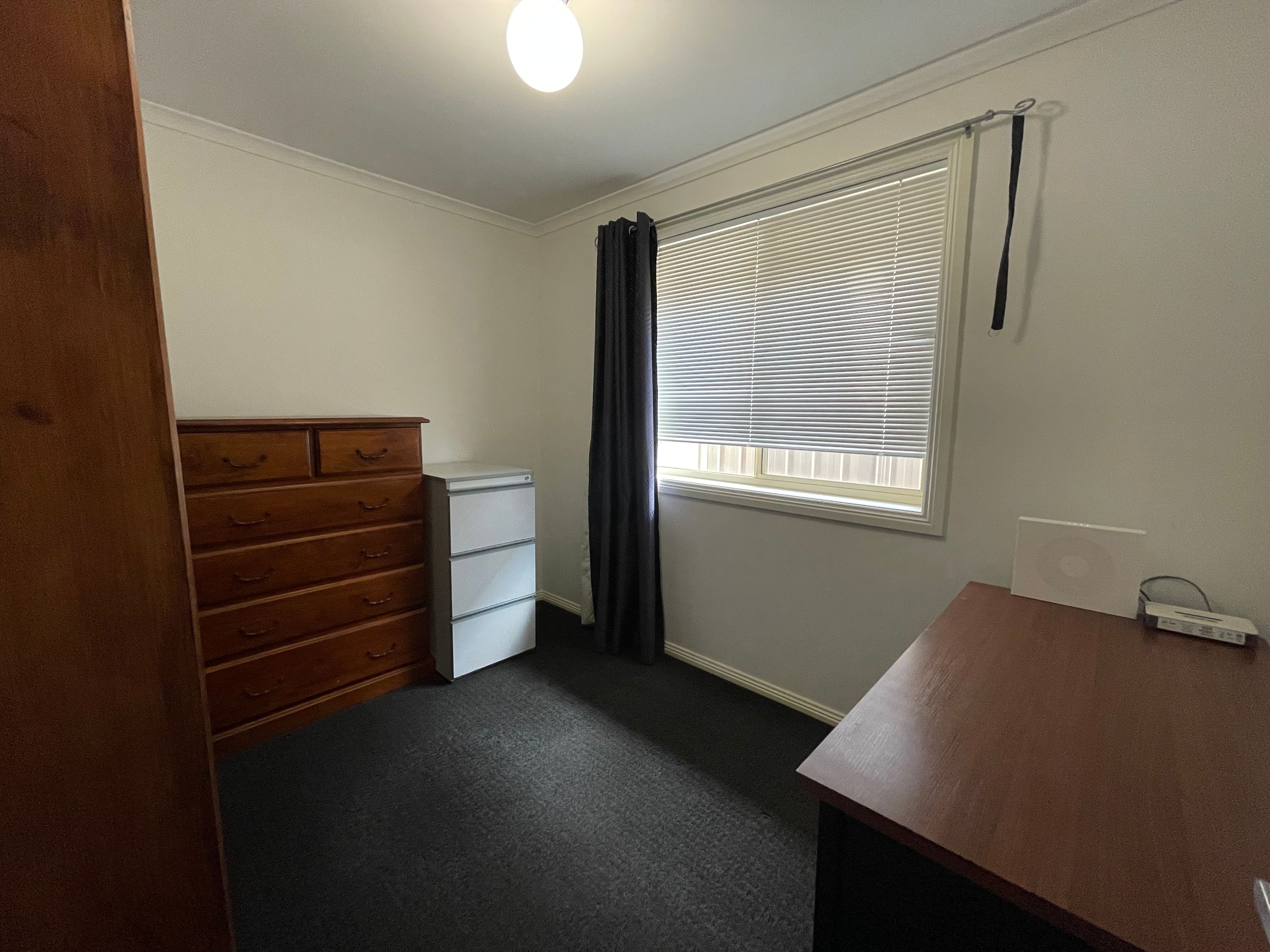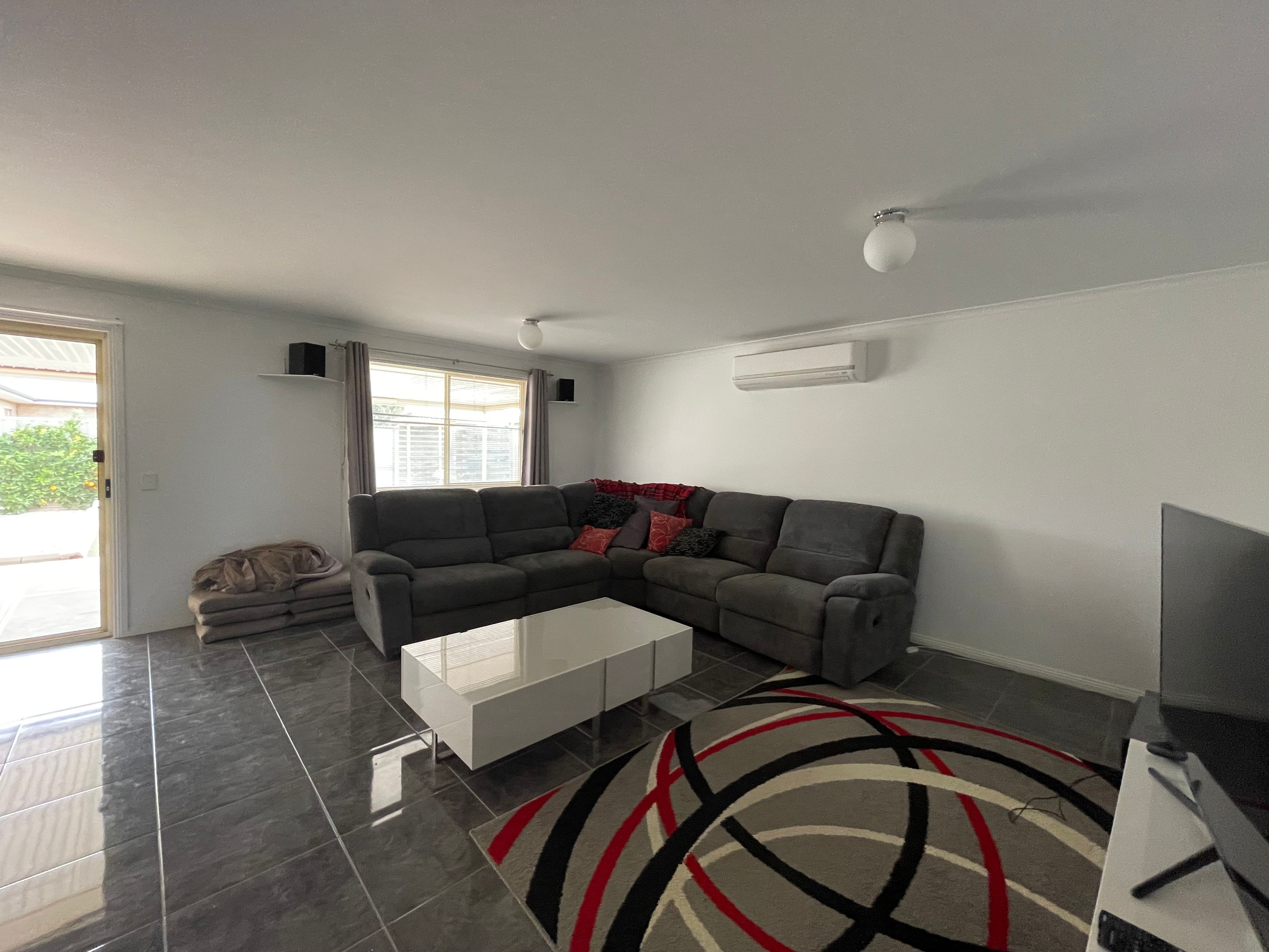 Master bedroom, with built in wardrobes, split system air conditioning, roller shutter and two way ensuite/ bathroom. (tv not included) Second bedroom with built in wardrobes. Study including desk and cupboards. Laundry with plenty of storage and access to two way ensuite/ bathroom. Bathroom with walk in shower and second toilet. Open plan lounge, kitchen and dining all tiled throughout. Kitchen with dishwasher and gas cooking. Lounge with split system air conditioning (speakers not included). Access from garage to house, low maintenance yards, gas hot water, solar on roof, nice undercover area in the backyard, small garden shed, roller shutters to the front of the house.