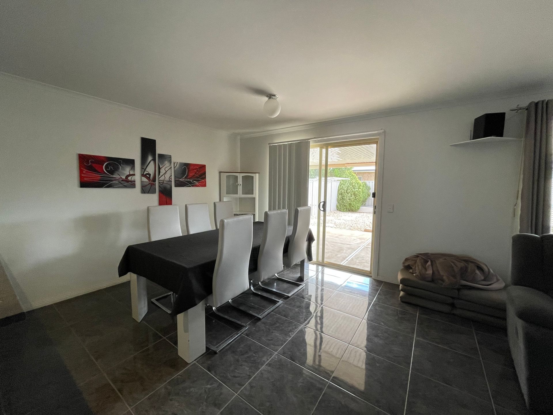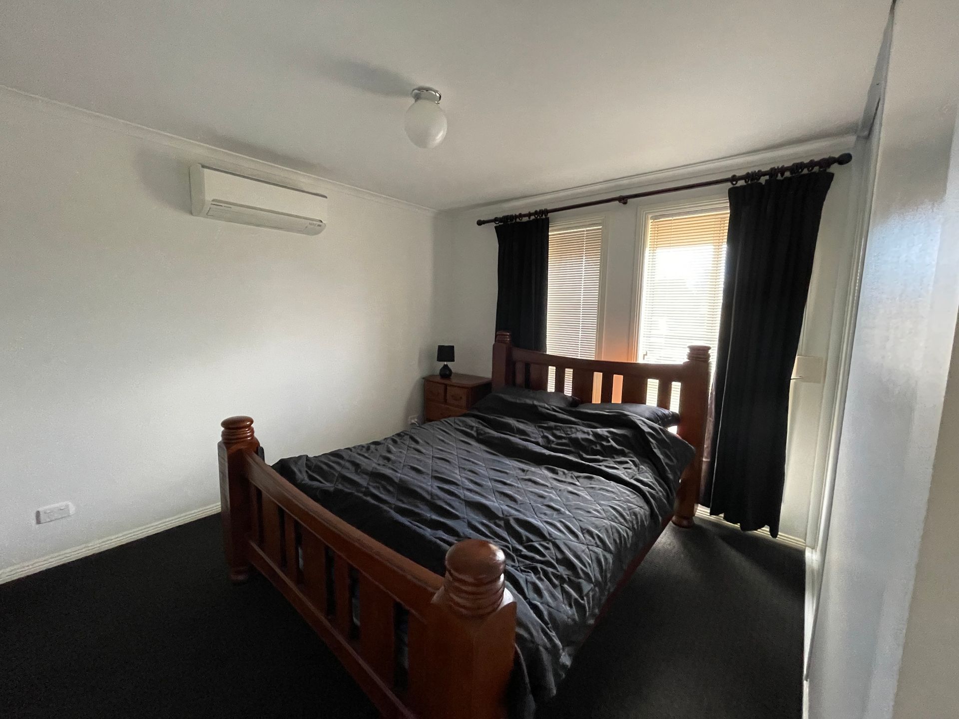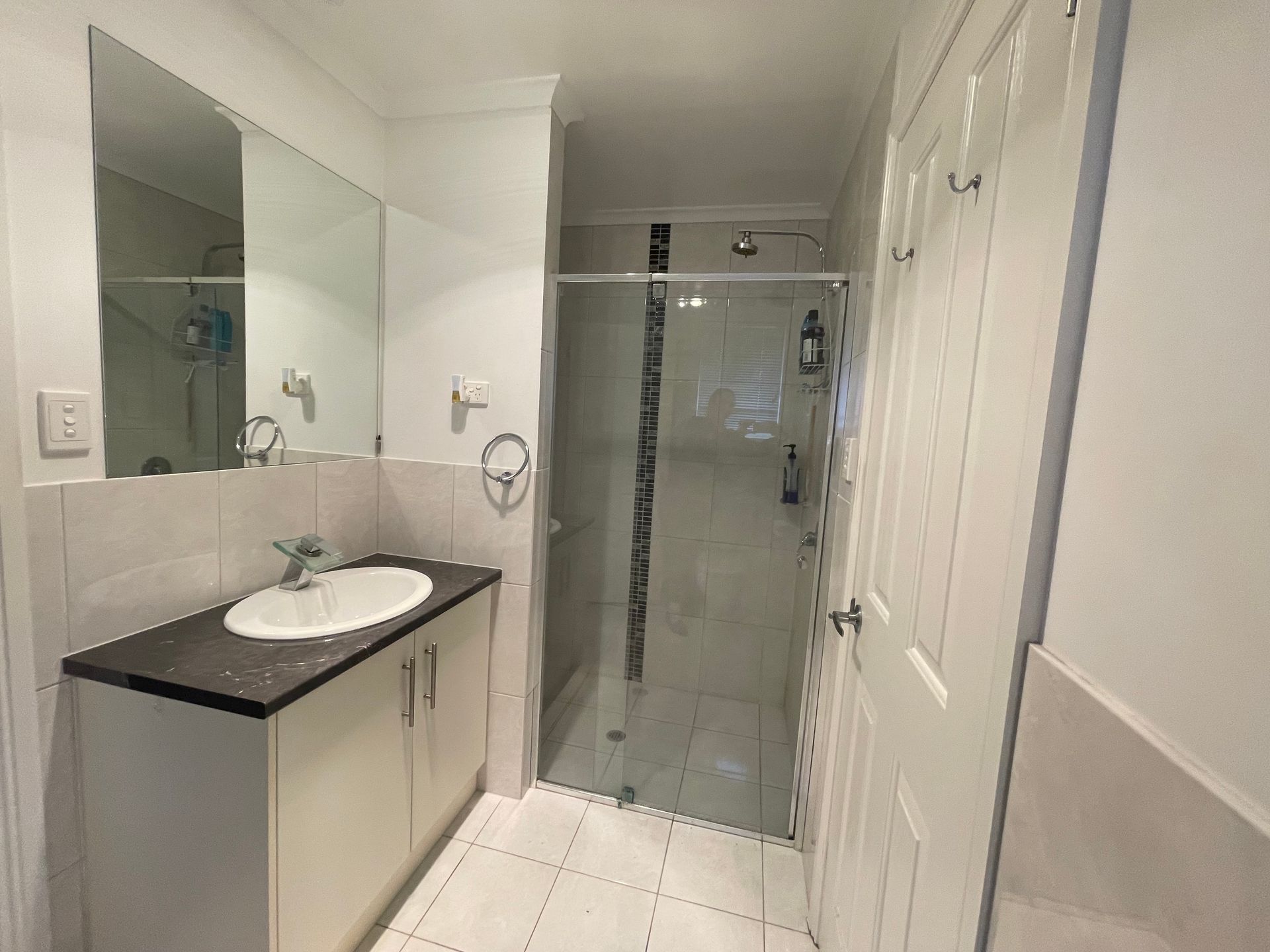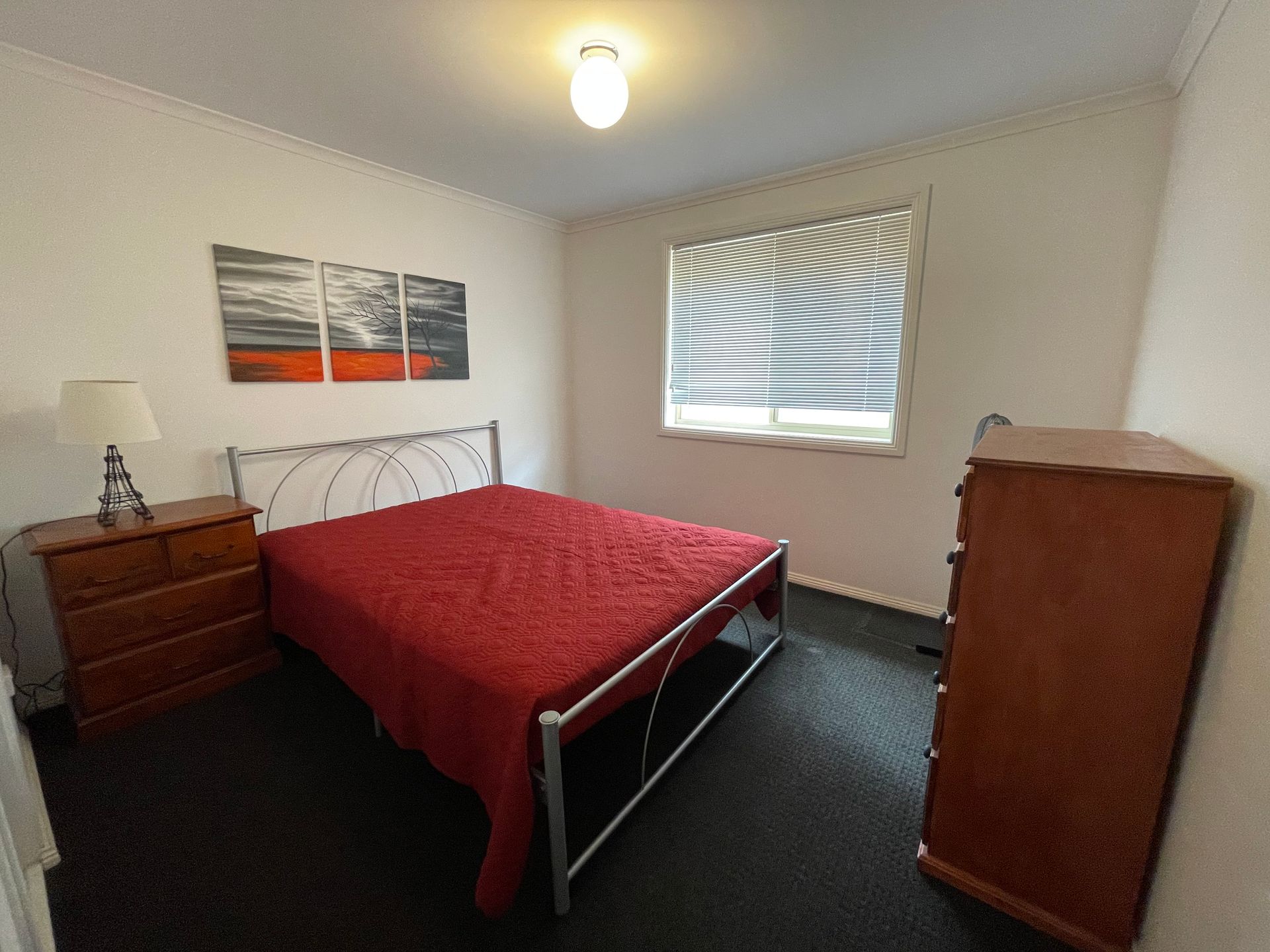 Master bedroom, with built in wardrobes, split system air conditioning, roller shutter and two way ensuite/ bathroom. (tv not included) Second bedroom with built in wardrobes. Study including desk and cupboards. Laundry with plenty of storage and access to two way ensuite/ bathroom. Bathroom with walk in shower and second toilet. Open plan lounge, kitchen and dining all tiled throughout. Kitchen with dishwasher and gas cooking. Lounge with split system air conditioning (speakers not included). Access from garage to house, low maintenance yards, gas hot water, solar on roof, nice undercover area in the backyard, small garden shed, roller shutters to the front of the house.