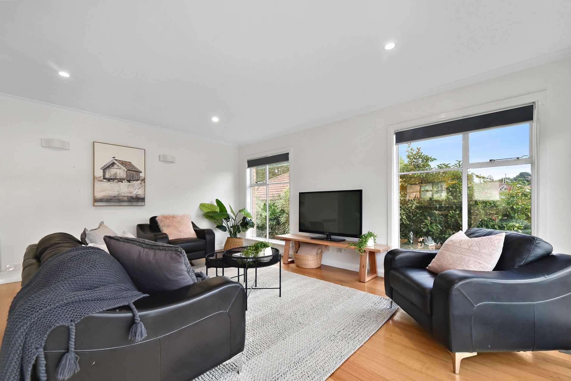 The living room is naturally bright, perfect for spending time with the family and overlooking the private front yard.