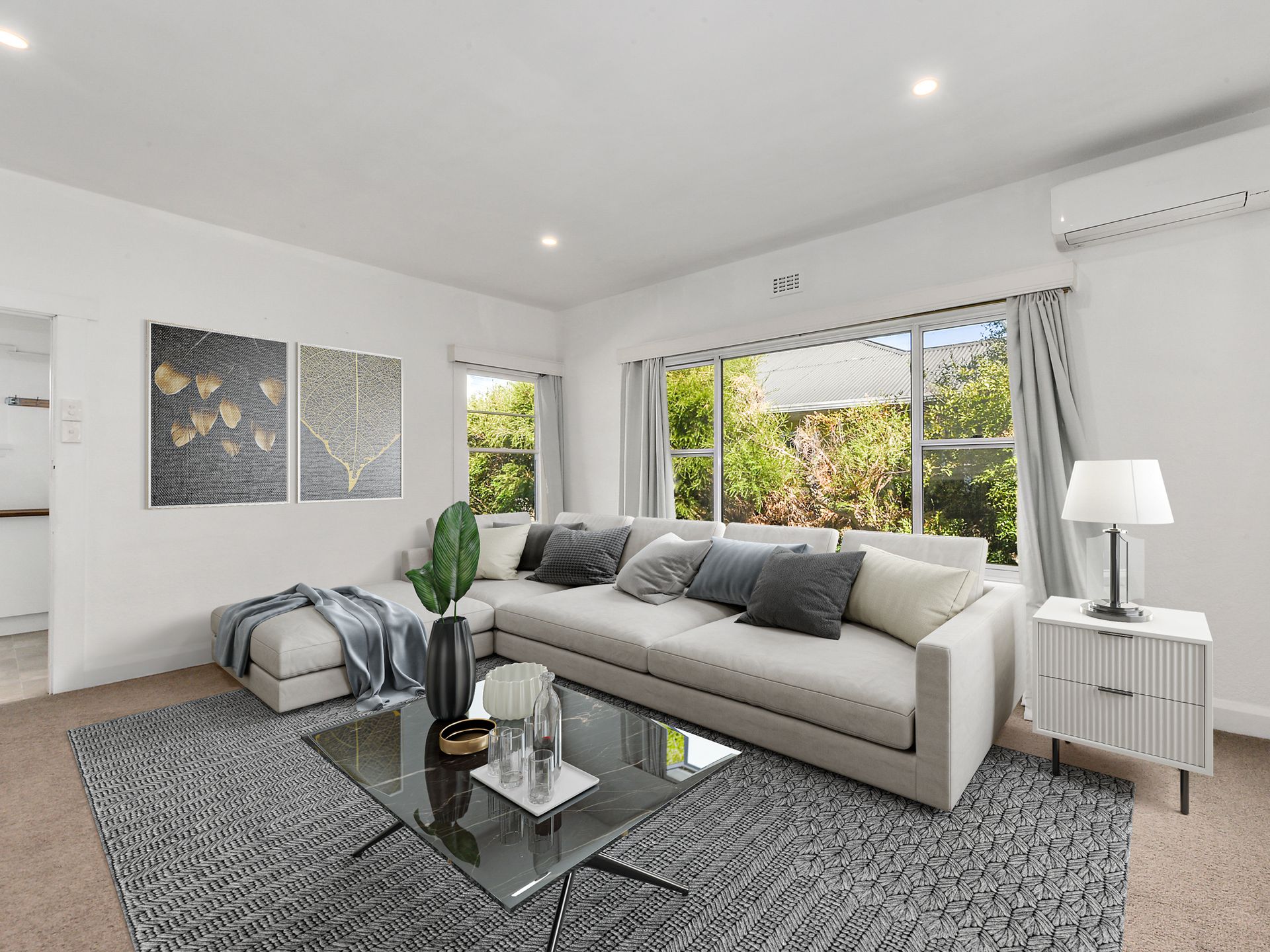 The layout of this home lends itself to being a three bedroom home or depending on your needs you could have a separate large dining room. There is an updated bathroom with a modern bath and a separate shower, the kitchen features modern appliances, has ample storage and links well with the dining area. The home has a wood heater and two heatpumps for all year comfort which is complemented with the underfloor insulation.
