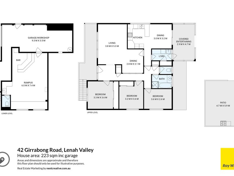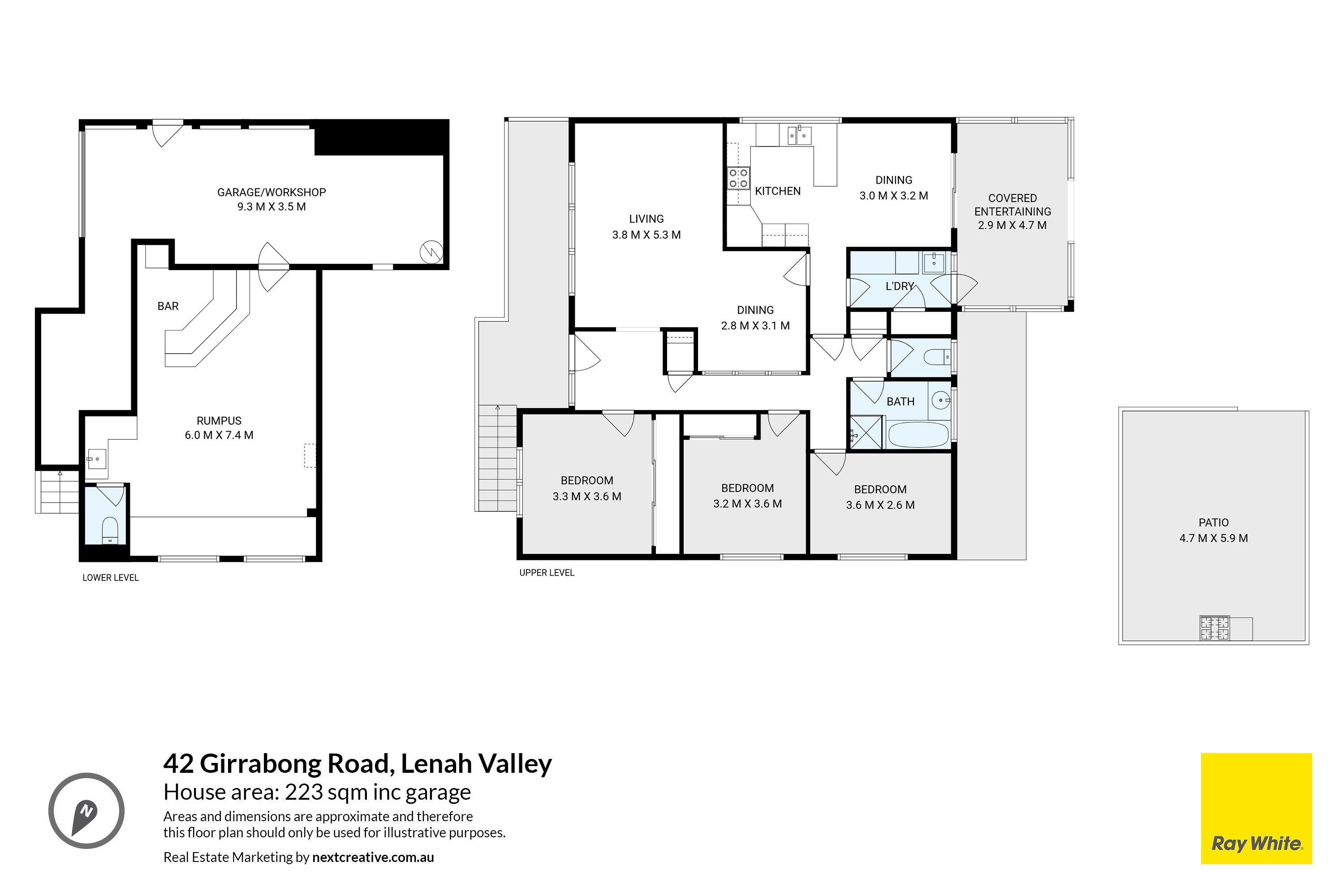 • A sunny position with views toward the River Derwent • Three bedrooms, including two with large built-in robes • Well-positioned skylights bring extra sunlight in upstairs • Positioned opposite the dog park, with a bus stop right outside • Internal garage with new roller door, plus outdoor entertaining area • Downstairs rumpus with built-in bar, kitchenette, and additional toilet