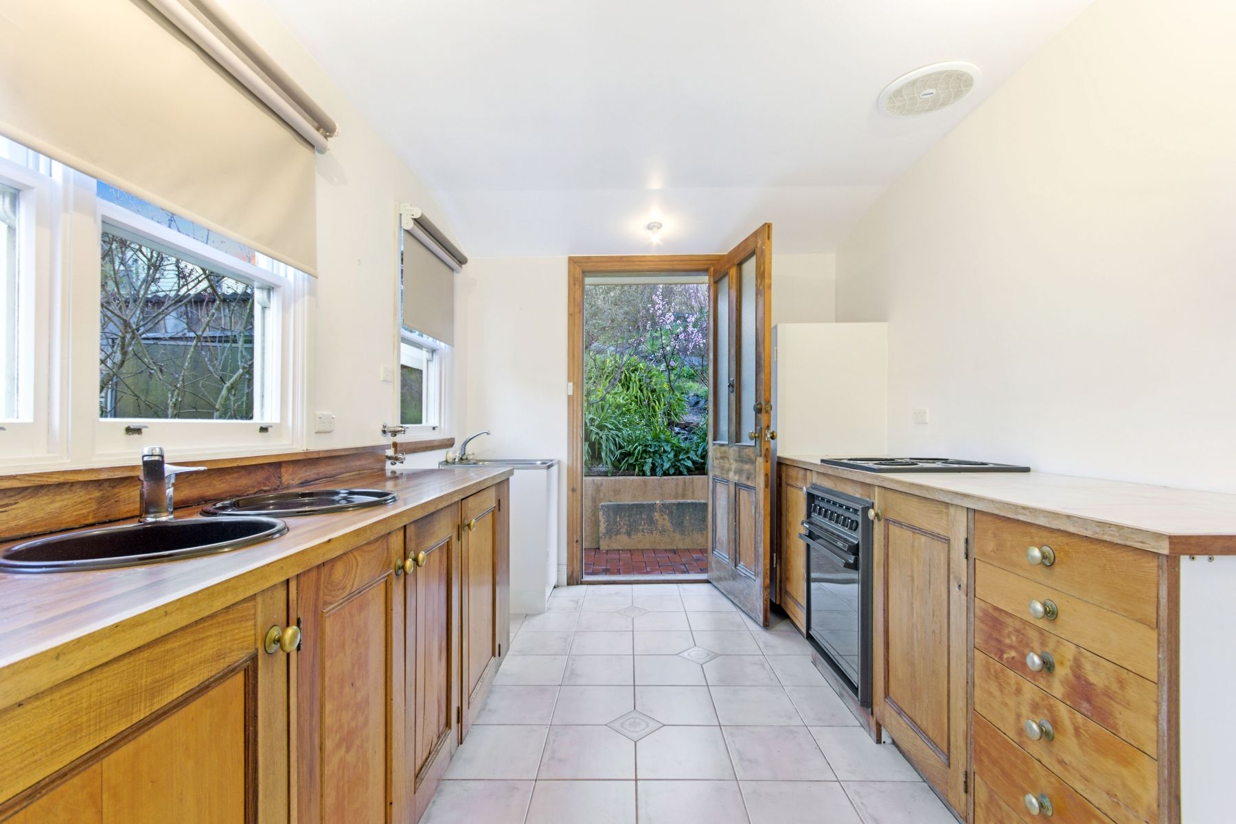 The galley style kitchen has direct access to the backyard and includes an old style combustion stove in the larder room just off the kitchen. The separate dining room has a gorgeous outlook over the back garden with French style windows and receives lovely natural sunlight (depending on your individual layout plans, this could also cater as a second sunroom/sitting room).