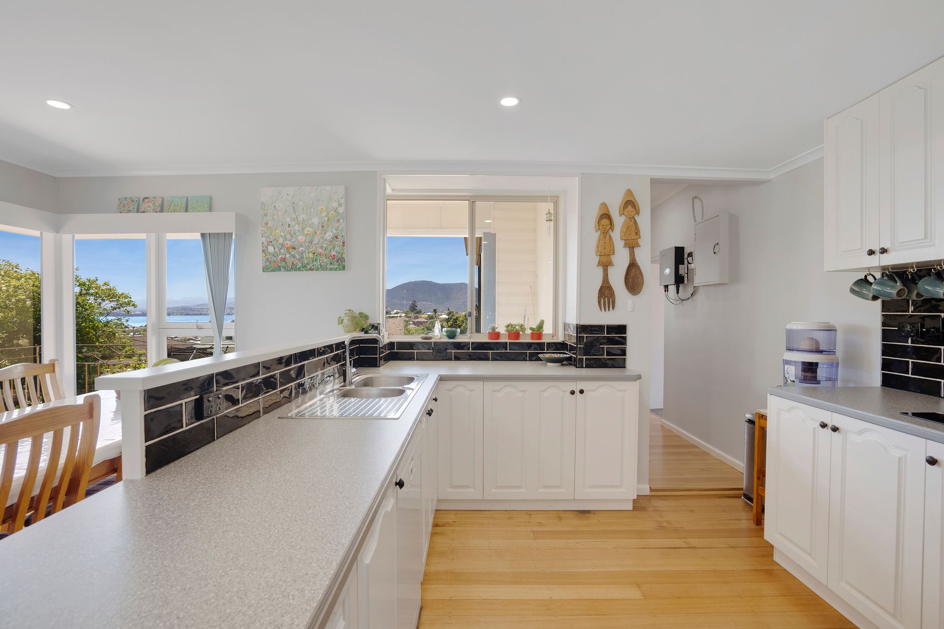Catching an abundance of all day sun and situated on a gently sloping block with level access, the home features incredible water and city views which can be appreciated from the kitchen and large dining space as well as the master bedroom which has a brand new en-suite and walk in robe.