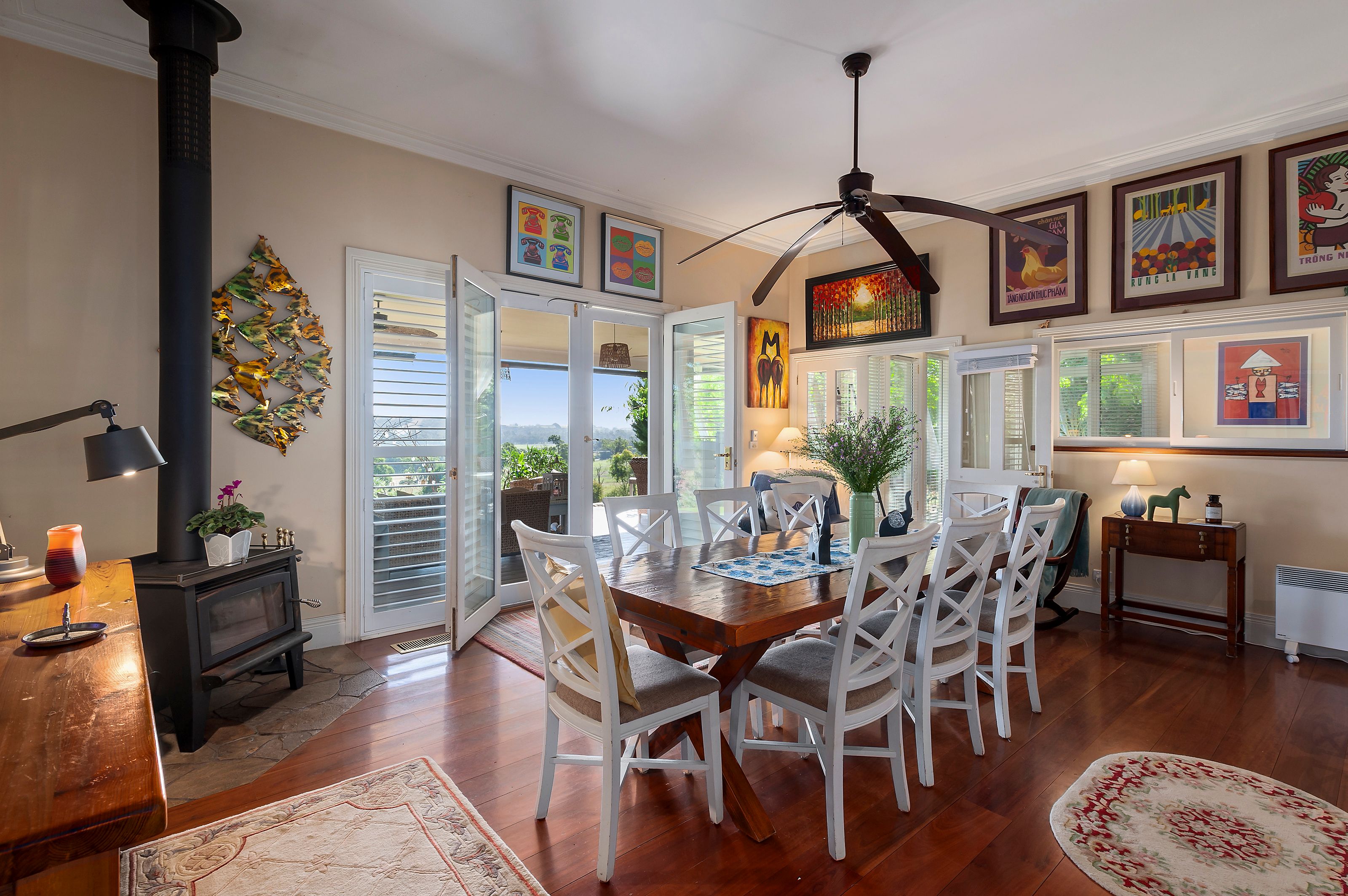 The outdoor facilities consist of an Olympic size horse menage, two dams, shedding and storage, four paddocks, stock shelter(s), chicken run, landscaped gardens, vegetable garden beds, mature deciduous and native trees, post N rail and post N wire fencing all set on an approximately 13 acres.