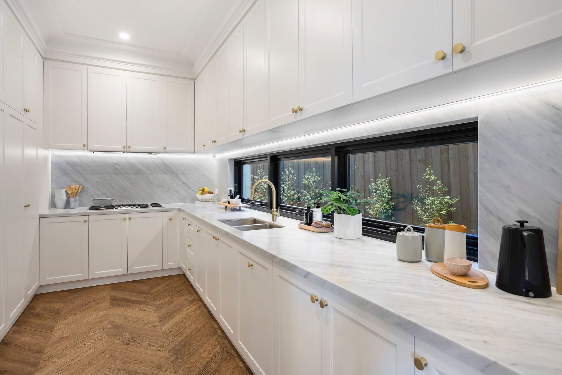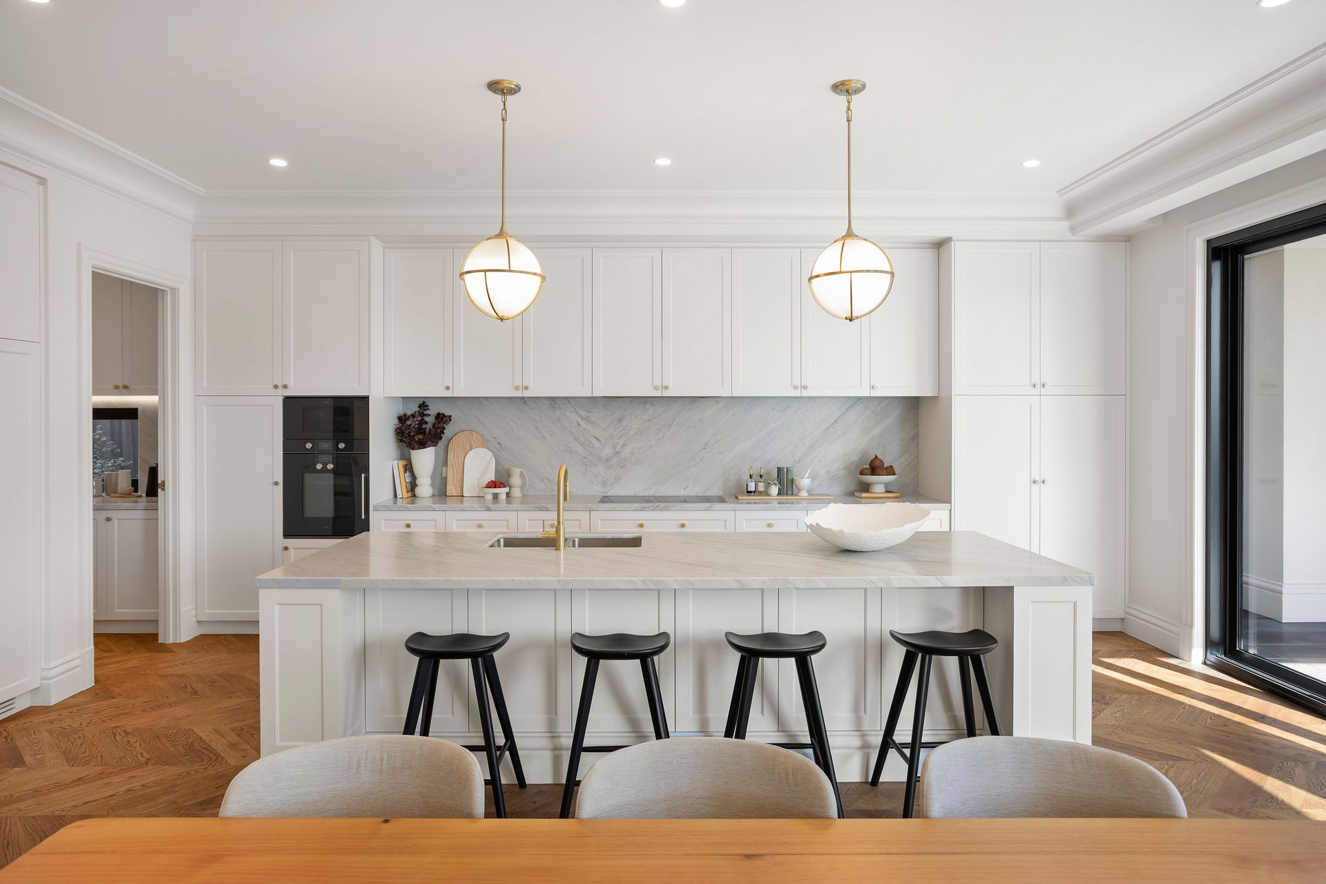 Solid European oak parquetry, expansive ceilings, meticulous wall detailing and swathes of opulent marble are the perfect accompaniment to the stunning lounge with gas log fireplace and vast dining/family room. Select a wine from the dual-zone Vintec wine fridge and create great memories with friends alongside the epicurean Gaggenau master kitchen and huge second kitchen while socialising under the enticing alfresco with outdoor kitchen. Equipped with high-end Gaggenau appliances including pyrolytic oven, microwave, gas and induction cooking, two dishwashers, and built-in Miele Fridge & Freezer, it truly is every chef's dream.