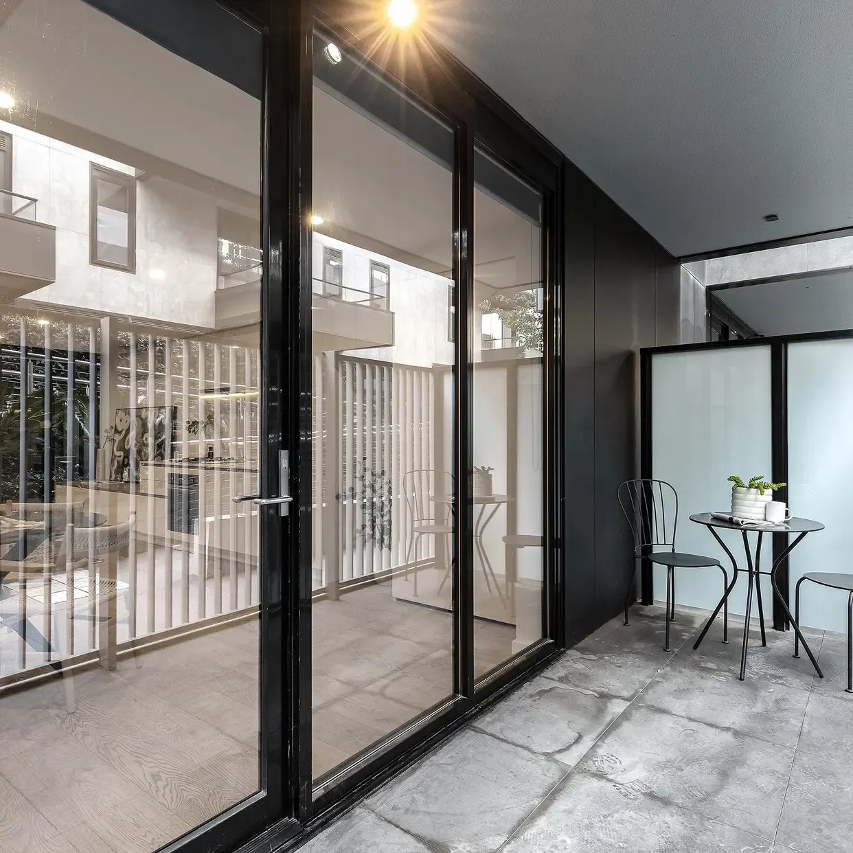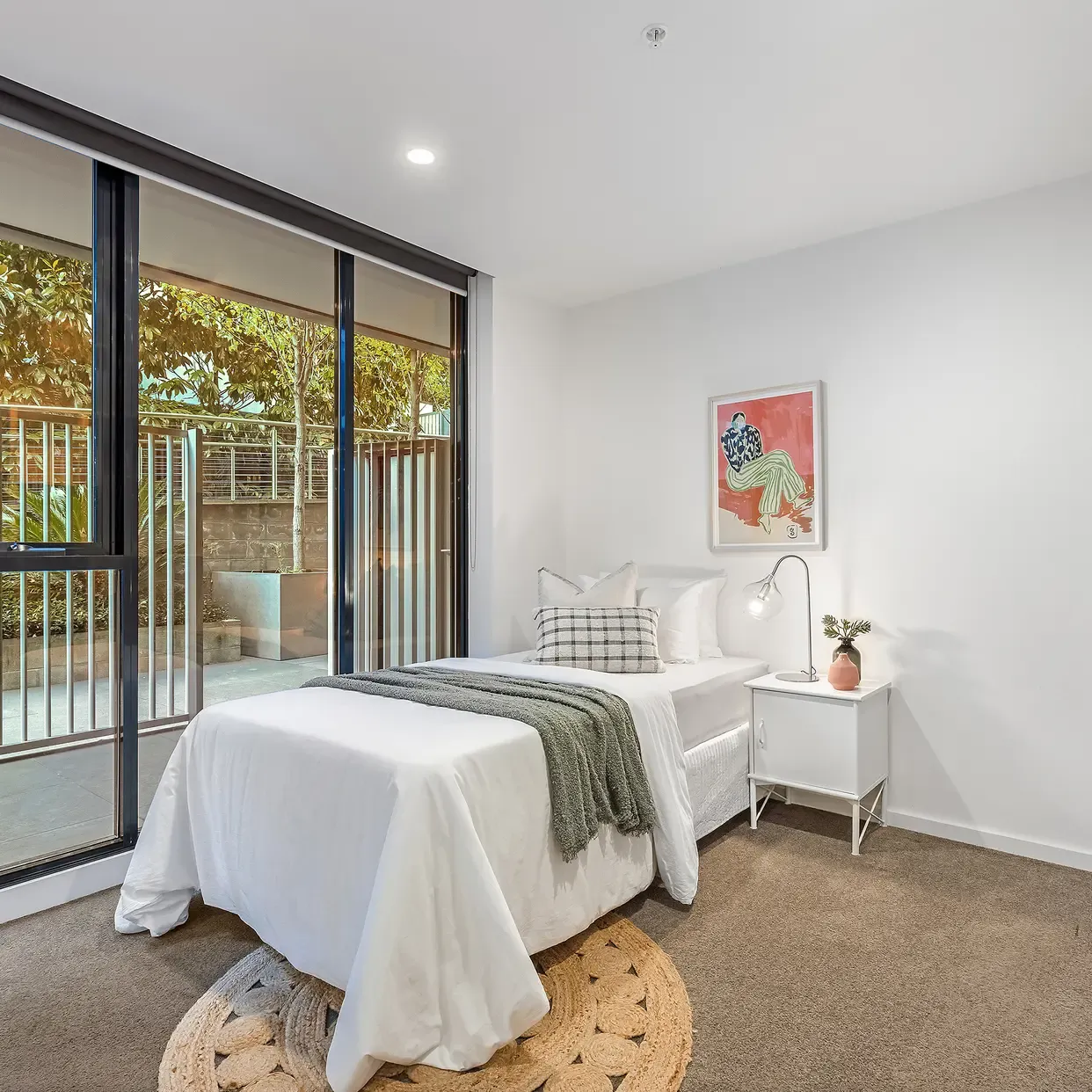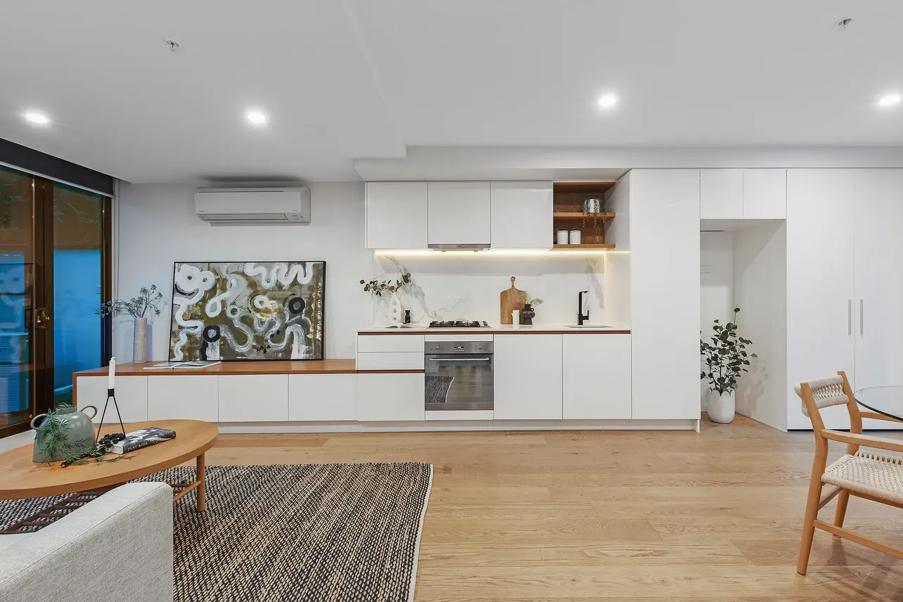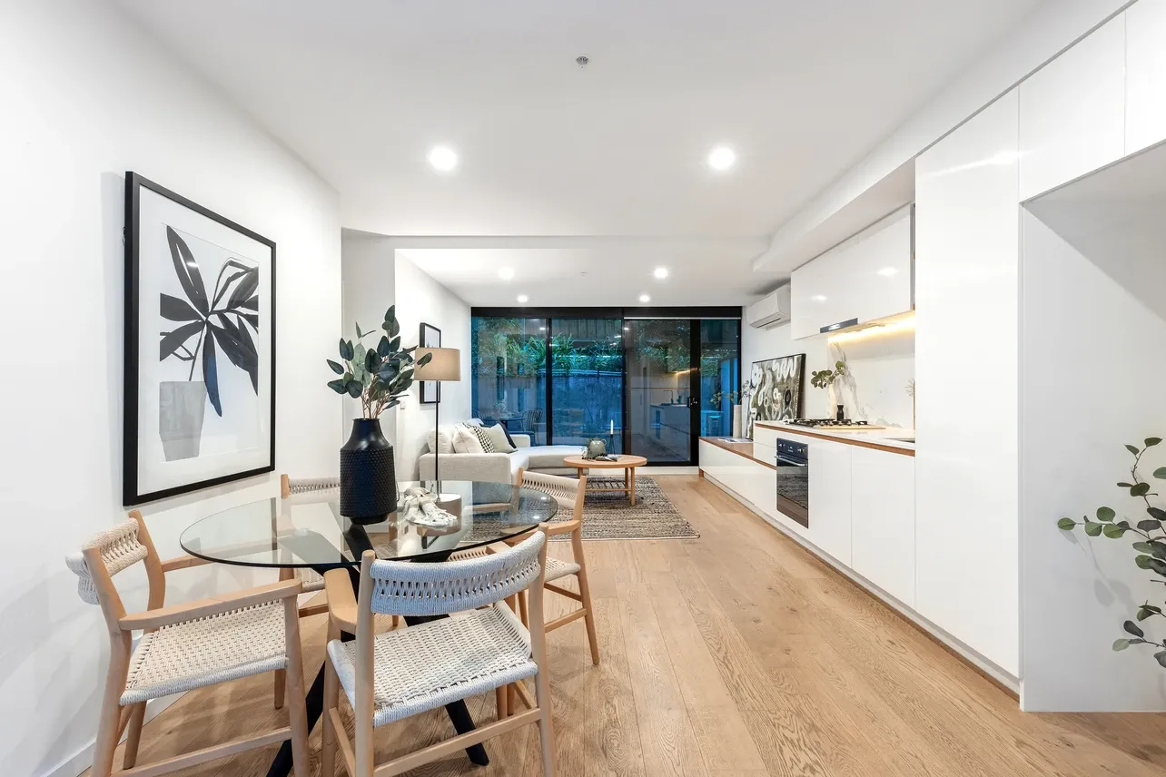 Privately set off leafy Jersey Street with easy ramp access, the apartment welcomes you with a generous entry courtyard leading into a spacious open-plan living and dining area. The modern kitchen is equipped with quality Smeg appliances and stone benchtops, flowing seamlessly to a private rear courtyard-perfect for relaxed outdoor dining and entertaining.