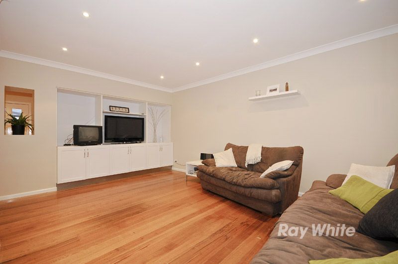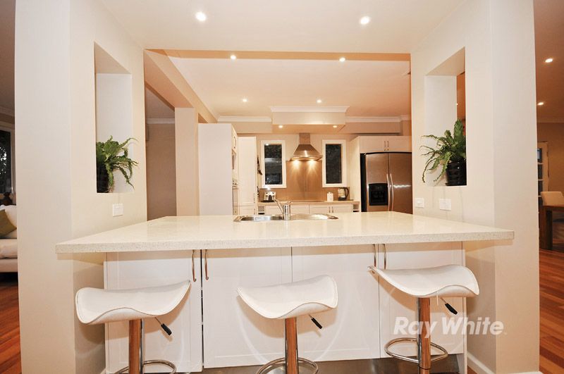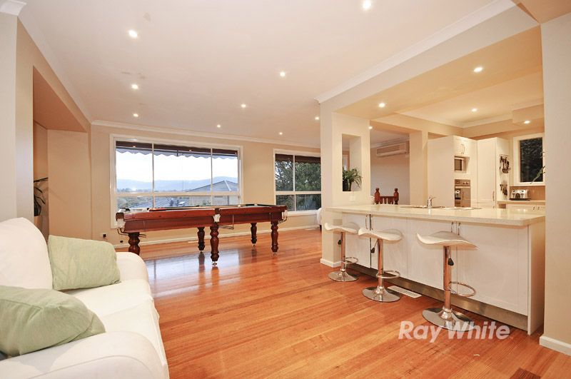 Brilliantly updated throughout, this superb residence on the fringe of Wantirna will certainly leave a lasting impression. Boasting glossy timber floors that glide your attention from one room to the other, you'll discover plenty of wow factor to keep the interest flowing. The centrally positioned gourmet kitchen is fitted with tasteful Caesar bench tops, stainless steel appliances, sleek cabinetry and a view that stretches through both living spaces and out the rear windows to the magical Dandenong Ranges, and you'll love entertaining guests in the open plan dining room. Continue the gleam of the polished boards down the hall where you'll find 3 robed bedrooms and 2 bathrooms that present a somewhat lavish style with streamlined vanities and frame less shower screens. There's also a study at entry-point and many extras, including ducted heating, air conditioning, brand new fitting and fixtures throughout, a double carport and fabulous outdoor entertaining which includes a solar heated swimming pool/spa.