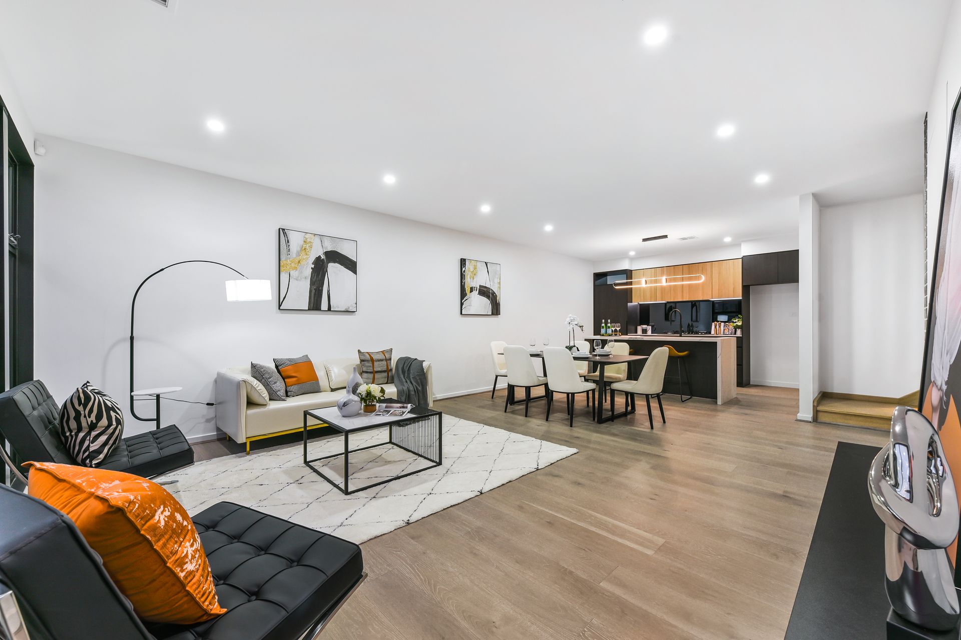 Occupying a sizeable fully-fenced corner block with landscaped surrounds, and a modern timber faade with pitched roof and huge windows, this is a home with standout street appeal. Stepping inside via the secure passcode-protected front door, you'll discover stunning floating timber flooring, an attractive brick feature wall, timber feature staircase and flowing layout.